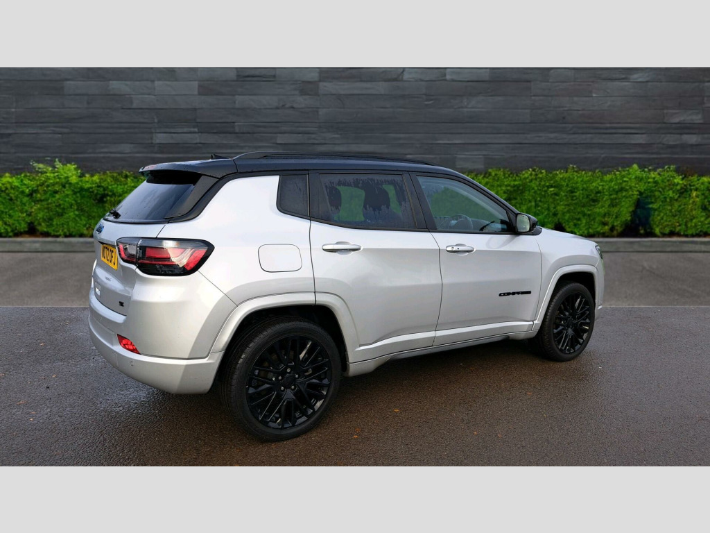 Discover this 2023 Jeep Compass GSE T4 S, a sophisticated plug in hybrid that offers an exceptional blend of efficiency and capability. This Four Wheel Drive model boasts a 1.3 litre petrol plug in hybrid engine, meeting the Euro 6 emission standards. Inside, you'll appreciate the comfort of heated front seats, perfect for those colder mornings. The S trim level ensures a premium experience, complemented by advanced lighting and parking technology.This Jeep Compass is equipped with LED reflector headlamps for clear visibility, and automatic headlamp function for convenience. Navigating tight spaces is made easier with front parking sensors and the ParkView rear back up camera, providing comprehensive awareness around the vehicle. These features collectively enhance the driving experience, setting this Compass apart from other vehicles in its class by offering advanced driver assistance and comfort as standard.. 10.1in Uconnect DAB Touchscreen Infotainment with Navigation, 12V Auxiliary Power Outlet - Second Row, 160MPH Primary Speedometer, 19in Alloy Wheels - Painted Gloss Black, 2nd Row Air Outlet, 4XE Badge - e-Hybrid Badge, Active Lane Management, Active Speed Limiting Device, Adaptive Cruise Control with Stop and Go, Air Vents - Front and Rear, Airbags - Drivers, Airbags - Front Side, Airbags - Front and Rear Side Curtain, Airbags - Passenger, Alarm - Premium, All Speed Traction Control, Anti Lock 4 Wheels Disc Brake - ABS, Armrest - Rear with Cupholders, Aspherical Driver Exterior Mirror, Auto Dimming Rear View Mirror, Automatic Air Conditioning, Automatic Electronic Hold Brake, Autonomous Emergency Braking with Pedestrian and Cyclist Detection, Battery Run Down Protection, Battery Skid Plate, Belly Pan - Underbody Protection, Black Side Roof Rails, Black Window Surrounds, Bluetooth Streaming Audio, Body Coloured Door Handles, Capless Fuel Filler, Cargo Compartment Carpet, Cargo Compartment Cover, Cargo Compartment Lamp, Cargo Compartment Organiser, Cargo Load Floor, Cargo Tie Down Loops, Centre Console with Sliding Armrest, Centre Rear 3-Point Seat Belt, Child Seat Anchor System, Coastdown and Run-in Optimization, Coat Hooks, Compass Badge, Dash Insulation, Deep Tint Privacy Glass, Door Cladding - Gloss Black, Door Mirrors - Gloss Black, Door Mirrors - Power Folding, Door Mirrors with Indicators, Driver Assist Handles, Drivers Manual Height Adjustable Seat, Drowsy Driver Detection System, Dual Note Electric Horns, Dual Tyre Pressure, ECE16 Homologation Label, ERM - Electronic Roll Mitigation, ESC - Electronic Stability Control, EV-PHEV Mode 2 Charging Cable, Electric Power Steering, Electronic Park Brake, Fascias - Gloss Black, Fix and Go Puncture Repair Kit, Fix and Go Puncture Repair Kit Label, Forward Collision Warning Plus Mitigation, Front Fascia - Belly Pan Skid Plate, Front Height-Adjust Seatbelts, Front License Plate Bracket, Front Map Pocket LED Light, Front Parking Sensors, Full Length Centre Console, Gear Knob - Leather Wrapped, Global Telematics Box Module - TBM, Gloss Black Exterior Badging, Gloss Black Exterior Sill Mouldings, Gloss Black Grille with Neutral Grey Rings, Glovebox Light, Glovebox with Damper Door, Head Restraints - Rear x3, Headlamp Off Time Delay, Headlamps - Automatic, Headlights - Levelling System, Headlights - Smartbeam, Heated Front Seats, Heated Rear Window, Heated Steering Wheel, Hill Descent Control, Hill Start Assist, ISA - Intelligent Speed Assist, Illuminated Entry, Infotainment Plus Pack, Instrument Cluster - 10.25in TFT Colour Display, Instrument Panel, Integrated LED Daytime Running Lamps, Interior Door Handle LED Lamp, Internal Rear Grab Handles, Jeep Badge, Jeep Call Assistance Label, LED Front Fog Lamps, LED Reflector Headlamps - High, LED Tail Lamps, Lane Support System, Lower Bodyside Cladding - Black, Manual 6-Way Adjustable Driver Seat, Map-Reading Lamps, Media Centre Electronics Storage, Media Hub, Neutral Grey Exterior Accent, Occupant Detection System, Outside Temperature Display, Overhead Console, Overhead Dome LED Lights, ParkSense Rear Park Assist System, ParkView Rear Back Up Camera, Passenger Airbags Deactivation, Passenger Assist Handles, Passive Entry with Keyless Go, Power 2-Way Driver Lumbar Adjust, Power Liftgate Release, Power Locking Fuel Filler Door, Power Windows - Driver and Passenger Express Up and Down, Pre-Conditioning Auto AC, Rain Brake Support, Rain Sensitive Windscreen Wipers, Rear 60-40 Split Folding, Rear Air-Conditioning and Heater Vents, Rear Door Child Protection Locks, Rear Fascia, Rear Fog Lamps, Rear Seat Belt Reminder, Rear Window Washer-Wiper, Removable Short Mast Antenna, S Badge, Seats - Front Back Map Pockets, Seats - Front Passenger Fold Flat, Selec-Terrain System with Sport Mode, Spare Wheel Storage Insulation, Speakers x6, Steering Column - Electronic Shaft Lock, Steering Column - Tilt and Telescopic, Steering Wheel - Mounted Audio Contro.
