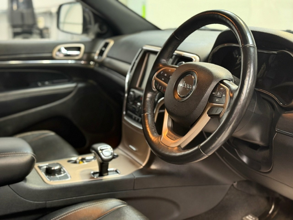 Blue Metallic Paint with Full Black Leather Interior, 20in Alloy Wheels, Front & Rear Radar Type Parking Sensors, Reversing Camera, Power Opening Tailgate, Front & Rear Electric Windows, Rear Privacy Glass, Automatic Headlights, Front & Rear Fog Lights, Automatic Windscreen Wipers, Heated Rear Screen with Intermittent Wiper, Auto Dimming Rear View Mirror, Front Heated & Electrically Adjustable Seats with Driver Memory, Multifunction Heated Paddle Shift Steering Wheel with Tilt & Telescopic Adjustment, Cruise Control, Multifunction Touchscreen Display with Satellite Navigation, Audio System with FM & DAB Radio, USB & Aux Input, Bluetooth Telephone & Media Streaming, 4WD Low Ratio Mode, Hill Descent Mode, Terrain Selection, Centre Armrest with Storage Below, 12V Power Outlet, Front Cup Holders, Rear Folding Armrest, ISOFIX Preparation, 2 x Keys. This JEEP GRAND CHEROKEE 3.0 CRD Limited Plus 5dr Auto is a tidy and well presented example. Conquer any terrain in style with this 2015 Jeep Grand Cherokee 3.0 CRD Limited Plus, boasting a robust 247 hp 3.0L diesel engine and a smooth 8-speed automatic for powerful yet refined performance. Loaded with premium features like a Uconnect touchscreen, leather upholstery, heated seats, and advanced 4x4 capability, this luxurious SUV blends rugged versatility with sophisticated comfort for every adventure. This Jeep comes with a full service history, and upon sale will come with a brand new MOT with any advisories rectified along with a new service. Viewing and test drive is recommended. The Team at Graham Mitchell Automotive are delighted to offer this vehicle to the market with a 3 Month Nationwide Warranty, with options to extend from 12 Months to 3 Years, along with 12 Months Free AA Breakdown Cover. Please note, we operate on a viewing by appointment only basis, as not every vehicle is kept immediately on site. Every vehicle that is offered for sale has a prior multipoint inspection before coming into stock, along with a full HPI Check. Our stock never stays available for long, so secure this vehicle today with a deposit. We accept payment by bank transfer and debit & credit card. To view our entire range of available stock, visit our Website. We are very proud to be a consistent 5* trusted dealer, with our reviews available on Google. We are also proud to be an AA Accredited and Trading Standards approved Dealer. At Graham Mitchell Automotive, we strive for first class customer service and aim to present the best quality stock. Purchase today with peace of mind.