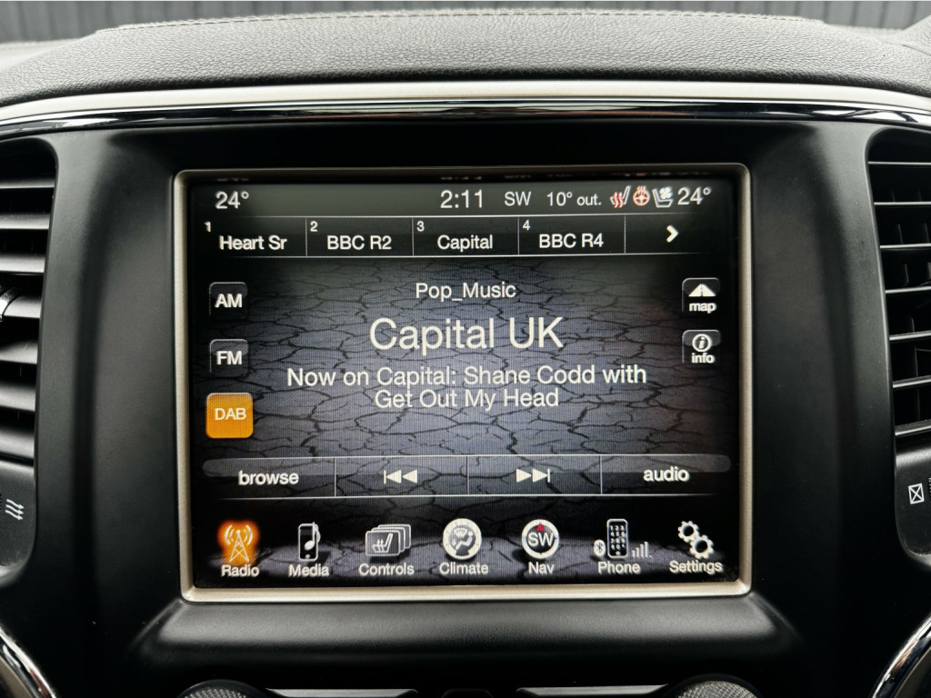 WE ARE DELIGHTED TO PRESENT THIS ABSOLUTELY STUNNING JEEP GRAND CHEROKEE OVERLAND — A ONE-PREVIOUS-OWNER, ULEZ-COMPLIANT EXAMPLE THAT COMBINES LUXURY, PERFORMANCE, AND REFINEMENT. THIS FLAGSHIP MODEL COMES FULLY LOADED WITH EVERY CONCEIVABLE EXTRA, DELIVERING AN EXCEPTIONAL DRIVING EXPERIENCE BOTH ON AND OFF THE ROAD. STEP INSIDE TO DISCOVER A FULL BLACK LEATHER INTERIOR WITH HEATED AND VENTILATED ELECTRIC FRONT SEATS, DRIVER MEMORY FUNCTION, ELECTRIC LUMBAR SUPPORT, AND HEATED REAR SEATS. THE HEATED, ELECTRICALLY ADJUSTABLE STEERING WHEEL AND PANORAMIC ELECTRIC SUNROOF ADD TO THE SENSE OF COMFORT AND OCCASION. TECHNOLOGY IS ABUNDANT, INCLUDING DUAL-ZONE CLIMATE CONTROL, CRUISE CONTROL, SATELLITE NAVIGATION WITH SPEED LIMIT DISPLAY, DAB RADIO, USB CONNECTIVITY, BLUETOOTH AUDIO STREAMING, AND TWO REAR USB PORTS FOR MOBILE CHARGING. SAFETY AND VISIBILITY ARE ENHANCED BY BI-XENON HEADLIGHTS WITH AUTOMATIC HIGH BEAM, A REVERSE CAMERA, AND FRONT AND REAR PARKING SENSORS. DRIVING DYNAMICS ARE EXCEPTIONAL THANKS TO THE 8-SPEED AUTOMATIC GEARBOX WITH PADDLE SHIFT, AIR SUSPENSION WITH ADJUSTABLE RIDE HEIGHT, HILL DESCENT CONTROL, AND THE QUADRA-DRIVE II FOUR-WHEEL DRIVE SYSTEM WITH MODES FOR SNOW, SAND, MUD, AND ROCK. EXTERNALLY, THE VEHICLE FEATURES AN ELECTRIC TAILGATE, DETACHABLE TOW BAR, AND 20-INCH UNMARKED BLACK AND SILVER ALLOY WHEELS FITTED WITH BRAND-NEW TYRES. THIS VEHICLE COMES WITH A FULL SERVICE HISTORY, 2 REMOTE KEYS, AND A 6-MONTH COMPREHENSIVE NATIONAL WARRANTY. IT HAS BEEN SAFETY CHECKED, HPI CLEARED, RECENTLY SERVICED, AND ROAD TESTED FOR A MINIMUM OF 100 MILES TO ENSURE COMPLETE PEACE OF MIND. FLEXIBLE FINANCE OPTIONS ARE AVAILABLE TO SUIT YOUR NEEDS. 20in Alloy Wheels - 5 Spoke, 506 Watt Amplifier, Air Conditioning - Dual Zone with Automatic Temperature Control, Alarm - Thatcham Category 1, Auto Dimming Rear View Mirror, Body Coloured Shark Fin Antenna, Capless Fuel Filler, Chrome Door Handles, Cruise Control, DAB - Digital Audio Broadcasting, Deep Tint Sunscreen Glass, Door Mirrors - Power Folding-Heated-Memory, Dual Remote USB Port - Charge Only, ESC - Electronic Stability Control, Electronic Limited Slip Differential Rear Axle, Front Fog Lights, Gear Knob - Leather Wrapped, Glovebox Light, Head Restraints - Active, Headlights - Automatic High Beam - Smartbeam, Headlights - Automatic On, Headlights - Bi-Xenon, Headlights - Levelling System, Headlights - Washers, Heated Front Seats, Instrument Cluster - 7in TFT Colour Display, Instrument Panel - Leather Wrapped, Interior Lighting - Door Courtesy Lamps, Interior Lighting - Front - Rear LED lamps, Keyless Enter-N-Go, Memory Settings - Radio-Driver Seat-Mirrors, ParkSense Front Park Assist System, ParkSense Rear Park Assist System, ParkView Rear Back Up Camera, Pollen Filter, Power Locking Fuel Cap Door, Power Tailgate, Rain Brake Support, Ready Alert Braking, Rear 60-40 Split Folding, Remote SD Card Slot, Remote USB Port, Removable and Rechargable Lights, Roof Rails - Chrome, Seats - Front 8-Way Electric Adjustment with Memory, Seats - Rear Heated, Selec-Terrain System, Speakers x9, Steering Column - Electronic Shaft Lock, Steering Column - Power Tilt and Telescope, Subwoofer, Sun Visors with Illuminated Vanity Mirrors, Sunroof - Panoramic Command View, Suspension - Quadra Lift Air, Suspension - Sports, Traction Control, Trailer Sway Damping - Control, Trailer Tow Prep Group, Tyre Pressure Monitoring - Warning Display, Tyres - Performance Tyres - 3 Season, UConnect 8.4in SmartTouch Navigation System, UConnect 8.4in SmartTouch System, UConnect Bluetooth, Uconnect - Voice Command, Ventilated Front Seats