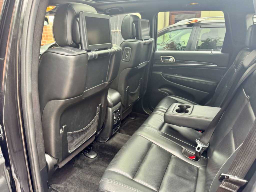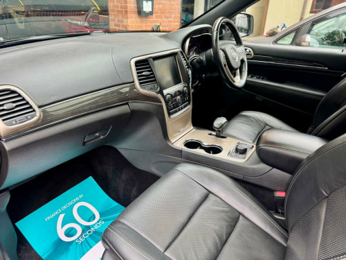 This 2014 Jeep Grand Cherokee V6 CRD Overland boasts an MOT valid until January 2026, offering peace of mind for the coming year. This capable Four Wheel Drive SUV is powered by a robust 3.0L Diesel Engine, delivering strong performance with a 0-62mph acceleration time of just 8.2 seconds. The Overland trim ensures a premium experience, complemented by Bi-Xenon headlights and automatic headlamp activation for enhanced visibility. Parking is made effortless with both front and rear ParkSense assist systems, while the inclusion of a Rear DVD/BLU-Ray Player adds entertainment for passengers. This vehicle also benefits from a partial service history, providing a record of its maintenance.The generous boot space makes this Grand Cherokee an ideal choice for families or those needing ample storage, while its low insurance group rating offers an economical ownership proposition. With a substantial towing weight of 3500 kg, this Jeep is well equipped for towing caravans, trailers, or boats. These highlights demonstrate how this particular Grand Cherokee offers a compelling package compared to other similar vehicles on the market. ar dvd/blu-ray player, nappa leather - black with contrasting stitching, 12v power socket, 12v power socket - luggage compartment, 20in alloy wheels - 5 spoke, 506 watt amplifier, 9 amplified speakers with subwoofer, abs - anti-lock brakes, airbags - drivers advanced multi stage, airbags - drivers knee, airbags - passenger advanced multi stage, airbags - supplemental front and rear side curtain, airbags - supplemental side, alarm - thatcham category 1, armrest - leather wrapped, auto dimming rear view mirror, bas - brake assist, body coloured shark fin antenna, child seat anchor system, child seat upper tether anchorages, chrome door handles, cruise control, dab - digital audio broadcasting, daytime running lights - led, deep tint sunscreen glass, door mirrors - power folding-heated-memory, dual remote usb port - charge only, esc - electronic stability control, electric windows - front one touch, electronic limited slip differential rear axle, electronic vehicle information centre, exhaust tailpipes - chrome dual, front fog lights, glovebox light, grille - body coloured with black honeycomb, head restraints - active, headlights - automatic high beam, headlights - automatic on, headlights - bi-xenon, headlights - levelling system, headlights - washers, heated front seats, heated steering wheel, hill descent control, hill start assist, illuminated front cupholders, instrument cluster - 7in tft colour display, instrument panel - leather wrapped, keyless enter-n-go, luggage compartment - cover, luggage compartment - storage net, luxury front and rear floor mats with logo, memory settings - radio-driver seat-mirrors, parksense front park assist system, parksense rear park assist system, parkview rear back up camera, power locking fuel cap door, power steering - rack and pinion, power tailgate, radio am-fm-cd player, rain brake support, rain sensitive windscreen wipers, ready alert braking, rear 60-40 split folding, rear lights - led, remote sd card slot, roof rails - chrome, seats - front 8-way electric adjustment with memory, seats - front electric with 4-way lumbar adjustment, seats - rear heated, selec-terrain system, sentry key theft deterrent system, steel spare wheel, steering column - electronic shaft lock, steering column - power tilt and telescope, steering wheel - mounted audio controls, steering wheel - shift paddles, sun visors with illuminated vanity mirrors, sunroof - panoramic command view, suspension - quadra lift air, suspension - sports, traction control, trailer sway damping - control, trailer tow prep group, tyre pressure monitoring - warning display, uconnect 8.4in smarttouch navigation system, uconnect bluetooth with voice command, upper dash - leather trimmed, ventilated front seats, wood-leather wrapped steering wheel