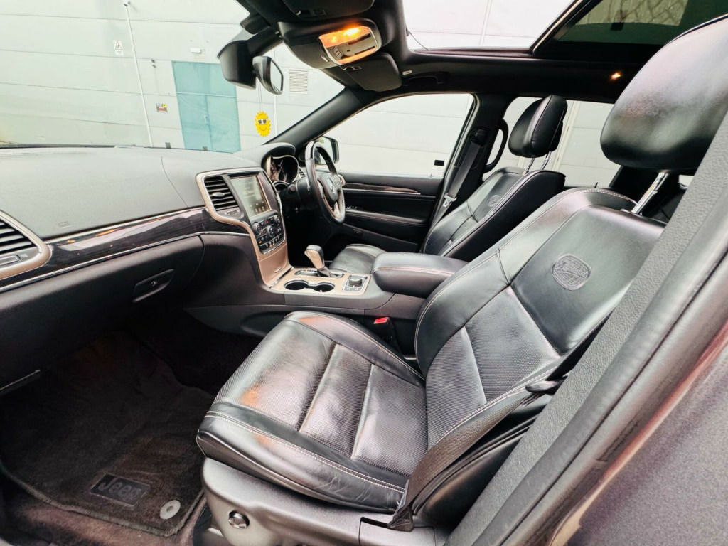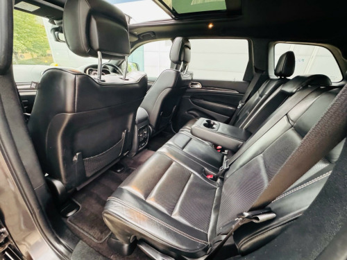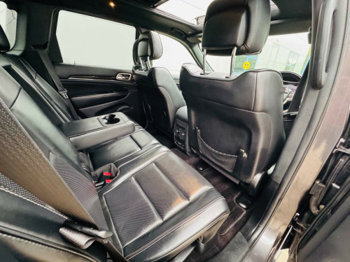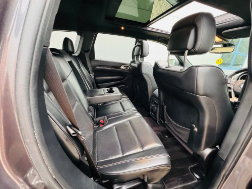 ++REG NO IS HW67LUO++£199 ADMIN FEE++ only one previous owner, this 2018 Jeep Grand Cherokee Overland V6 CRD is a great example of this popular model. Featuring a 3.0L diesel engine and four-wheel drive, this Overland trim vehicle has a clear vehicle history check for added peace of mind. It also boasts advanced safety features, including Blind Spot Assistance and Adaptive Cruise Control.The Grand Cherokee also comes equipped with ParkSense, incorporating front and rear parking assistance. The driver and passenger can enjoy the comfort of power-adjustable seats with memory function, and Bi-Xenon HID headlamps provide excellent visibility. Power-folding, multifunction door mirrors add to the convenience. The car can accelerate from 0-62mph in 8.2 seconds, which means it is faster than other similar vehicles. The vehicle also benefits from a low insurance group, which can save you money, and a large boot space, making it more practical than other similar vehicles. ppa leather - morocco black, advanced safety, 20in alloy wheels - 5 spoke, 506 watt amplifier, 7in tft instrument cluster including speedometer, 9 amplified speakers with subwoofer, abs - anti-lock brakes, active head restraints, advanced multistage front airbags, auto high beam headlamp control, bi-xenon hid headlamps, body coloured shark fin antenna, cd player - remote single disc in centre armrest, capless fuel filler, cargo compartment cover, cargo net, child seat anchor system-latch ready - isofix, child seat upper tether anchorages, chrome door handles, chrome grille with black honeycomb mesh, chrome side roof rails, climate control - auto temperature control with dual zone climate control, commandview dual panel panoramic sunroof, cruise control, daytime running lights - led, deep tint sunscreen glass, door courtesy lamps, door mirrors - power folding-multifunction, drivers inflatable knee bolster air bag, dual exhaust tips, dual remote usb port - charge only, esc - electronic stability control, electric power steering with selectable modes, electronic limited slip differential rear axle, electronic vehicle information centre with in tft display, front and rear interior led lamp, headlamps - automatic, headlights - automatic levelling system, headlights - washers, heated front seats, heated second row seats, heated steering wheel, hill descent control, hill start assist, illuminated front cupholders, interior removable - rechargeable lamp, keyless enter-n-go, led tail lamps, leather wrapped instrument panel and centre armrest, leather wrapped e-shift gear changer, luxury front and rear floor mats with logo, memory settings - radio-driver seat-mirrors, parksense with stop, parkview rear back up camera, power 8 way driver memory seats - 8-way passenger seats, power driver-passenger 4-way lumbar adjustments, power front windows - 1-touch up and down, power locking fuel cap door, power locks, power tailgate, premium fog lamps, primary speedometer, rain brake support, rain sensitive windscreen wipers, rear 60-40 split folding, rear load-levelling suspension, rear view autodimming mirror with microphone, remote sd card slot, remote usb port, selec-terrain system, sentry key theft deterrent system, steel spare wheel, steering column - electronic shaft lock, steering column - power tilt and telescope, steering wheel - mounted audio controls, steering wheel mounted gear shift control, sun visors with illuminated vanity mirrors, supplemental front side air bags, supplemental side air bags, supplemental side curtain front-rear air bags, suspension - quadra lift air, suspension - sports, thatcham security equipment, trailer sway damping - control, trailer tow prep group, tyre pressure monitoring display, uconnect voice command with bluetooth, uconnect 8.4in smarttouch navigation system, ventilated front seats, wood-leather wrapped steering wheel
