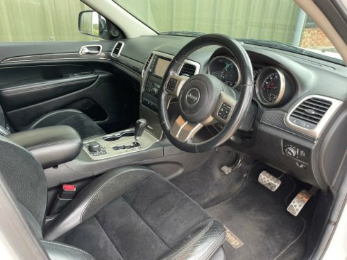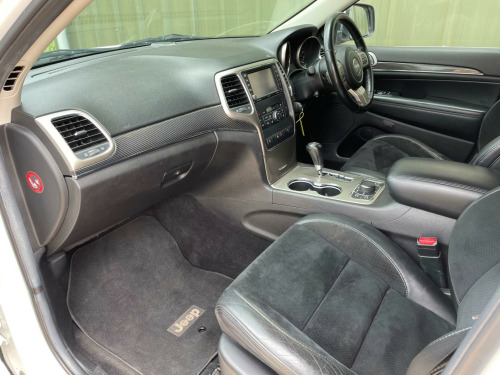 We have two keys and service history for this lovely Grand Cheokee please call for more info.With this vehicle you will get a new MOT, IF the vehicle gets advisories on below 50% brake pads, seriously weakened brake discs and advised tread depth will be replaced and included in the advertised price. You will also get free 12 months AA cover, six months warranty, free MOT for life and we will do a service before the hand over if due. Have a read what people say about Berkshire Jeeps and Jags, we have over 500 reviews on www.cardealerreviews.co.uk, being ranked No.1 in the local area and in the top 40 across England. POLITE NOTICE: PLEASE CALL FOR AN APPOINTMENT AS WE WORK ON APPOINTMENT ONLY BASIS AS WE WOULD NOT WANT YOU TRAVEL AND BE DISAPPOINTED IF YOU COULD NOT BE SEEN OR THE CAR YOU'RE LOOKING FOR HAS SOLD. WE CAN PROVIDE VIDEOS AND MORE PHOTOS ON REQUEST. PLEASE ALSO CHECK OUR WEBSITE AS WE NORMALLY HAVE MORE THAN ONE OF THESES CARS IN STOCK AT SAME TIME! www.berkshirejeepsandjags.co.uk PLEASE NOTE. The price indicators that Auto Trader and other advertisement sites give on the adverts do not take into account the service and dealer extras that are given when you buy a car from Berkshire Jeeps and jags. They also do not consider the cars rare ability, the history and owners of some of the cars we sell and the after sales support we give. Please call for any questions you may have.- ALL CARDS ACCEPTED - UK DELIVERY AVAILABLE, v power socket, 12v power socket - luggage compartment, 20in alloy wheels - black high gloss, abs - anti-lock brakes, air conditioning - dual zone with automatic temperature control, airbags - drivers advanced multi stage, airbags - drivers knee, airbags - passenger advanced multi stage, airbags - supplemental front and rear side curtain, airbags - supplemental side, audio jack for mobile devices, auto dimming rear view mirror, black roof moulding, blind spot monitoring and cross-path detection, body coloured door handles, body coloured fascias with chrome insert, child seat anchor system, child seat upper tether anchorages, chrome pedals, cruise control - adaptive, daytime running lights, deep tint sunscreen glass, door mirrors - auto dimming, door mirrors - body coloured-power folding-heated, ears - emergency accident response system, esc - electronic stability control, electric windows - front one touch, exhaust tailpipes - chrome dual, floor carpet, forward collision warning, front fog lights, full length floor console, gear knob - leather wrapped, grille - black with chrome mesh, hard drive - 40gb with 28gb capacity, head restraints - active, headlights - automatic on, headlights - bi-xenon, headlights - levelling system, headlights - smartbeam, headlights - washers, heated front seats, heated steering wheel, hill descent control, hill start assist, illuminated front cupholders, interior accents - carbon fibre, keyless enter-n-go, laminated front door glass, luggage compartment - cover, luggage compartment - storage net, luggage compartment - tie down loops, luxury front and rear floor mats with logo, media centre cd-dvd-mp3-hdd, memory settings - radio-driver seat-mirrors, overhead console, parksense front park assist system, parksense rear park assist system, parkview rear back up camera, passenger assist handles, performance brakes, performance pack, pop-out tailgate glass, power accessory delay, power locking fuel cap door, power steering - electro-hydraulic, power tailgate, premium instrument cluster, rain brake support, rain sensitive windscreen wipers, ready alert braking, rear 60-40 split folding, rear spoiler - tailgate, rear window defroster, remote usb port, removable short mast antenna, removable and rechargable lights, roof rails - chrome, s-limited rear fascia with chrome inserts, srt8 audio system with speakers x19 and amplifier - 825 watts, seats - front 8-way electric adjustment with memory, seats - front electric with 4-way lumbar adjustment, seats - rear heated, selec-terrain system, sentry key theft deterrent system, skirt moulding, smokers pack, steel spare wheel, steering column - electronic shaft lock, steering column - power tilt and telescope, steering wheel - leather wrapped (perforated), steering wheel - mounted audio controls, sun visors with illuminated vanity mirrors, supplemental front side air bags, suspension - quadra lift air, suspension - sports, tinted glass, touchscreen - 6.5in, tow eye brackets, traction control, trailer sway damping - control, trailer tow prep group, tyre pressure monitoring - warning display, uconnect bluetooth with voice command, ventilated front seats, voice command - navigation