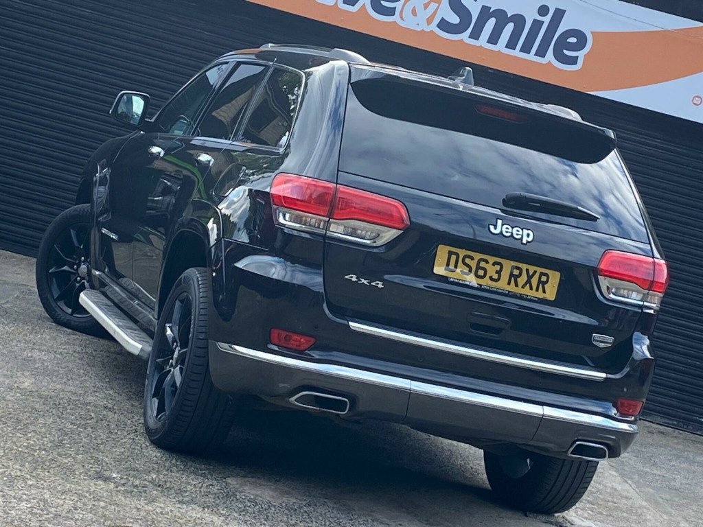 Drive and Smile are please to present this 2013 Jeep Grand Cherokee V6 CRD Summit. Which boasts a clear vehicle history, offering peace of mind for its next owner. Finished in a sophisticated Summit trim, this Four Wheel Drive model is powered by a robust 3.0L Diesel Engine, delivering impressive performance with a 0-62mph acceleration time of just 8.2 seconds. Inside, you'll find a host of desirable features designed for comfort and convenience, including heated front seats, reverse camera, Bluetooth, electric windows, radio, AUX/USB ports and the Keyless Enter-N-Go system for effortless access. Automatic on Bi-Xenon headlights ensure optimal visibility in all conditions, making every journey safer and more enjoyable.The Jeep Grand Cherokee V6 CRD Summit stands out with its practical advantages, including a generous boot space perfect for all your luggage or shopping needs. Its towing weight of 2949 kg makes it a capable companion for trailers or caravans. Furthermore, its position within a low insurance group indicates that running costs are kept competitive, making it a sensible choice. These highlights demonstrate how this Grand Cherokee offers a superior ownership experience compared to many other vehicles in its class. v power socket, 12v power socket - luggage compartment, 20in alloy wheels - double spoke, 825 watt amplifier, abs - anti-lock brakes, advanced safety technology group, airbags - drivers advanced multi stage, airbags - drivers knee, airbags - passenger advanced multi stage, airbags - supplemental front and rear side curtain, airbags - supplemental side, alarm - thatcham category 1, armrest - leather wrapped, auto dimming rear view mirror, bas - brake assist, blind spot monitoring and cross-path detection, body coloured shark fin antenna, child seat anchor system, child seat upper tether anchorages, chrome door handles, cruise control - adaptive, dab - digital audio broadcasting, daytime running lights - led, deep tint sunscreen glass, door mirrors - power folding - heated with auto folding function and puddle light, dual remote usb port - charge only, esc - electronic stability control, electric windows - front one touch, electronic limited slip differential rear axle, electronic vehicle information centre, exhaust tailpipes - chrome dual, forward collision warning, front fog lights, front fog lights - chrome bezels, glovebox light, grille - chrome with chrome mesh, head restraints - active, headlights - automatic high beam, headlights - automatic on, headlights - bi-xenon, headlights - levelling system, headlights - smartbeam, headlights - washers, headliner - alcantara, heated front seats, heated steering wheel, hill descent control, hill start assist, illuminated front cupholders, instrument cluster - 7in tft colour display, instrument panel - leather wrapped, keyless enter-n-go, luggage compartment - cover, luggage compartment - storage net, luxury front and rear floor mats with logo, memory settings - radio-driver seat-mirrors, parksense front park assist system, parksense rear park assist system, parkview rear back up camera, power locking fuel cap door, power steering - rack and pinion, power tailgate, radio am-fm-cd player, rain brake support, ready alert braking, rear 60-40 split folding, rear lights - led, remote sd card slot, roof rails - chrome, seats - bucket, seats - front 8-way electric adjustment with memory, seats - front electric with 4-way lumbar adjustment, seats - rear heated, selec-terrain system, sentry key theft deterrent system, speakers x19, steel spare wheel, steering column - electronic shaft lock, steering column - power tilt and telescope, steering wheel - mounted audio controls, steering wheel - shift paddles, sun visors with illuminated vanity mirrors, sunroof - panoramic command view, suspension - quadra lift air, suspension - sports, traction control, trailer sway damping - control, trailer tow prep group, trim - a-pillar - alcantara, tyre pressure monitoring - warning display, uconnect 8.4in smarttouch navigation system, uconnect bluetooth with voice command, upper dash - leather trimmed, ventilated front seats, wood-leather wrapped steering wheel