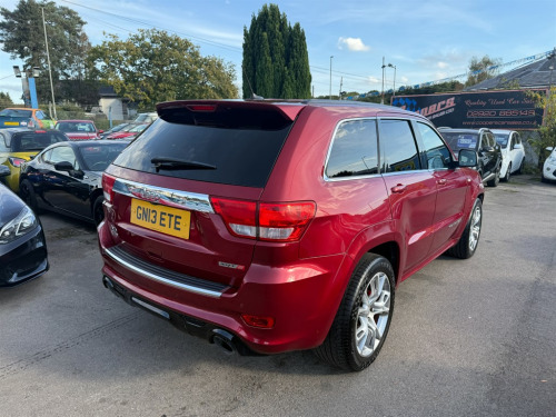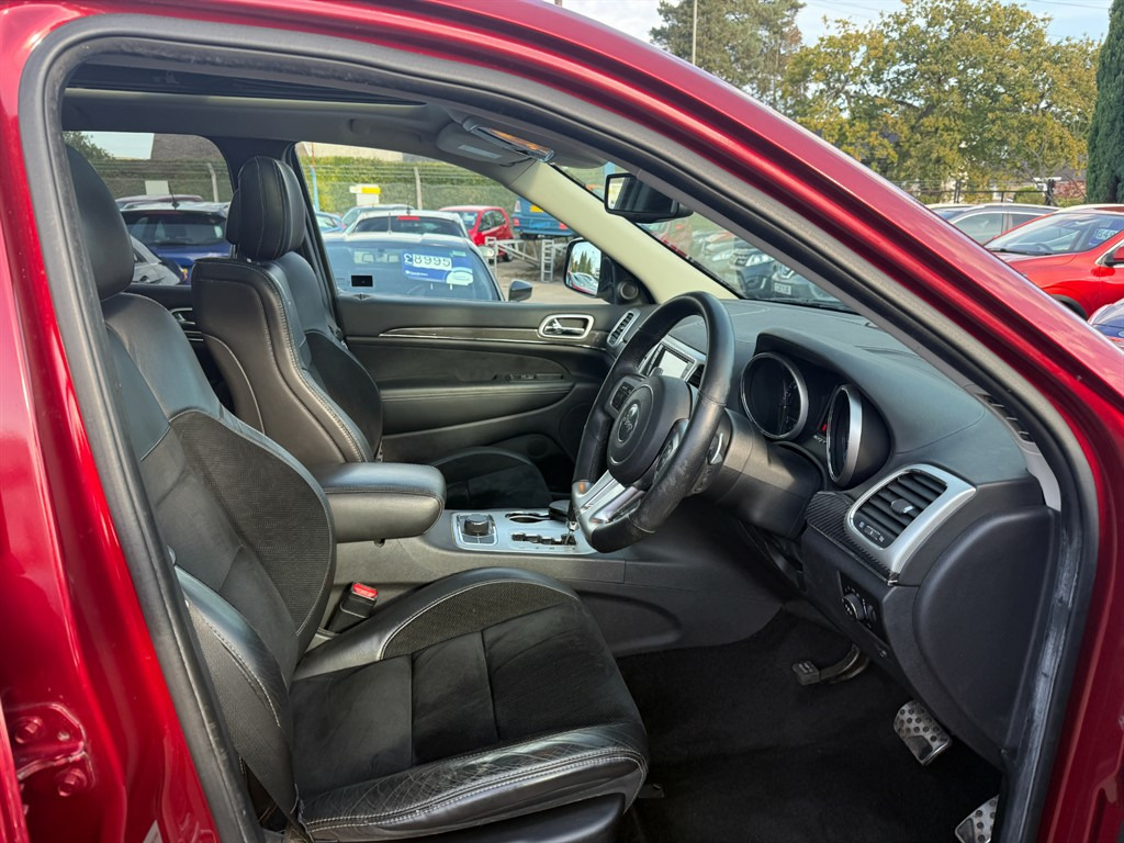 Jeep Grand Cherokee 6.4 HEMI SRT8 in metallic red. An absolutely gorgeous example here, comes with loads of service stamps, clearly a very well cared for car and it shows. This remarkable 2013 model boasts a powerful 6.4L engine that delivers an exhilarating 461 BHP, achieving 0-62 mph in an impressive 4.9 seconds. With its eye-catching red exterior and estate body type, this vehicle is designed to turn heads while providing unparalleled performance. Massive spec including Half Leather Upholstery, Heated & Cooled Seats, Heated Rear Seats, Sat-Nav, Reversing Camera, Bluetooth Hands Free, Bluetooth Audio Streaming, Cruise Control, Dual Zone Climate Control, Front & Rear Parking Sensors, Power Tailgate, A/C, Alloy Wheels, Panoramic Roof....the list goes on and on. Don’t miss out on this incredible opportunity to own a Jeep Grand Cherokee that blends luxury, performance, and practicality. Contact us today at 02920885149 to arrange a test drive or for more information. Experience the thrill of driving this exceptional vehicle today! 12v Socket,Adjustable Steering Wheel,Air Conditioning,Alarm,Alloy Wheels,Anti Lock Brakes,Auto On Headlights,Aux Input,Bluetooth Telephone Hands Free,Bluetooth Audio Streaming,CD Radio,Central Locking,Climate Control,Cruise Control,Cupholders,Driver Airbag,Dual Zone Climate Control,Electric & Heated Door Mirrors,Front & Rear Electric Windows,Front Fog Lights,Fuel Computer,Half Leather Trim,Heated Rear Seats,Height Adjustable Drivers Seat,Immobiliser,ISOFIX,Keyless Start,Heated & Cooled Seats,Heated Steering Wheel,Metallic Paint,Multiple Airbags,Panoramic Roof,Passenger Airbag,Power Assisted Steering,Rear Parking Sensor,Remote Central Locking,Keyless Central Locking,Reversing Camera,Satellite Navigation,Split Folding Rear Seats,Traction Control,Trip Computer,Tyre Pressure Monitor,USB,Power Tailgate