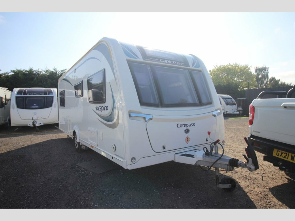 2018 Compass Capiro 574 This four berth Compass Capiro 574 is ideal for a couple who would like the extra space or a family as it offers two fixed single beds at the rear of the caravan, a centre washroom which includes a toilet, Sink with vanity unit and mirror at one side and shower cubical at at the other, a fully-equipped kitchen with 3 Gas and 1 electric plate hob, oven, grille, high level microwave and a fridge freezer, at the front the 2 bench seat lounge/dining area can be converted into a double bed for night time. It also has alde central heating and motor movers. 3 Months Warranty, Fully Serviced, Full MOT and ready for collection, Home delivery available, Finance available up to a 10 year term, Part exchange welcome, We are based in Routh near Beverley HU17 9SL