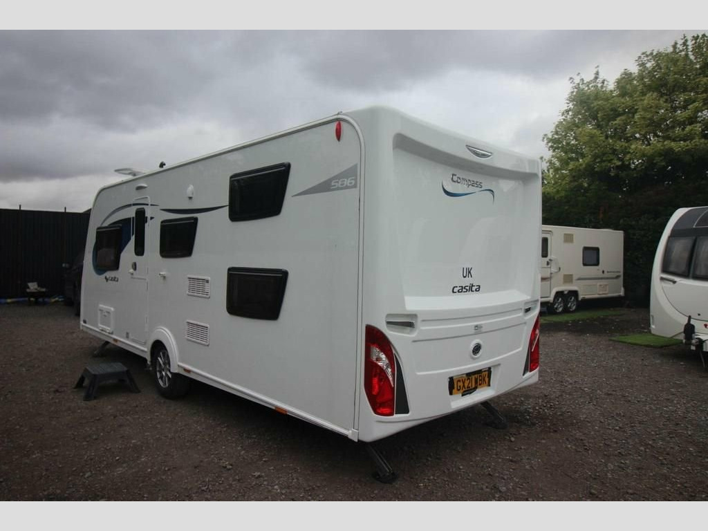 2021 Compass Casita 586 This 6 berth, single axle caravan has a front lounge conversion which can be used on an evening as two single beds or converts into a double. The washroom is located at o/s rear and has a cassette toilet, sink with vanity unit and mirror and separate shower. N/s rear are the fixed bunk beds with a large wardrobe / storage area in the centre rear. There is also a side dinette which converts into bunk beds, fully equipped kitchen with 3 gas and 1 electric plate hob, fridge freezer, oven, and high level microwave, finished in a luxurious modern interior. Whale heating system, motor movers and anti snaking system. This caravan is ideal for family weekends away or longer adventures. Immaculate condition, Clear Cris check, No damp, 3 months warranty, Fully serviced and ready for collection, Home delivery available, Finance available up to a 10 year term, Part exchange welcome, We are based in Routh near Beverley HU17 9SL