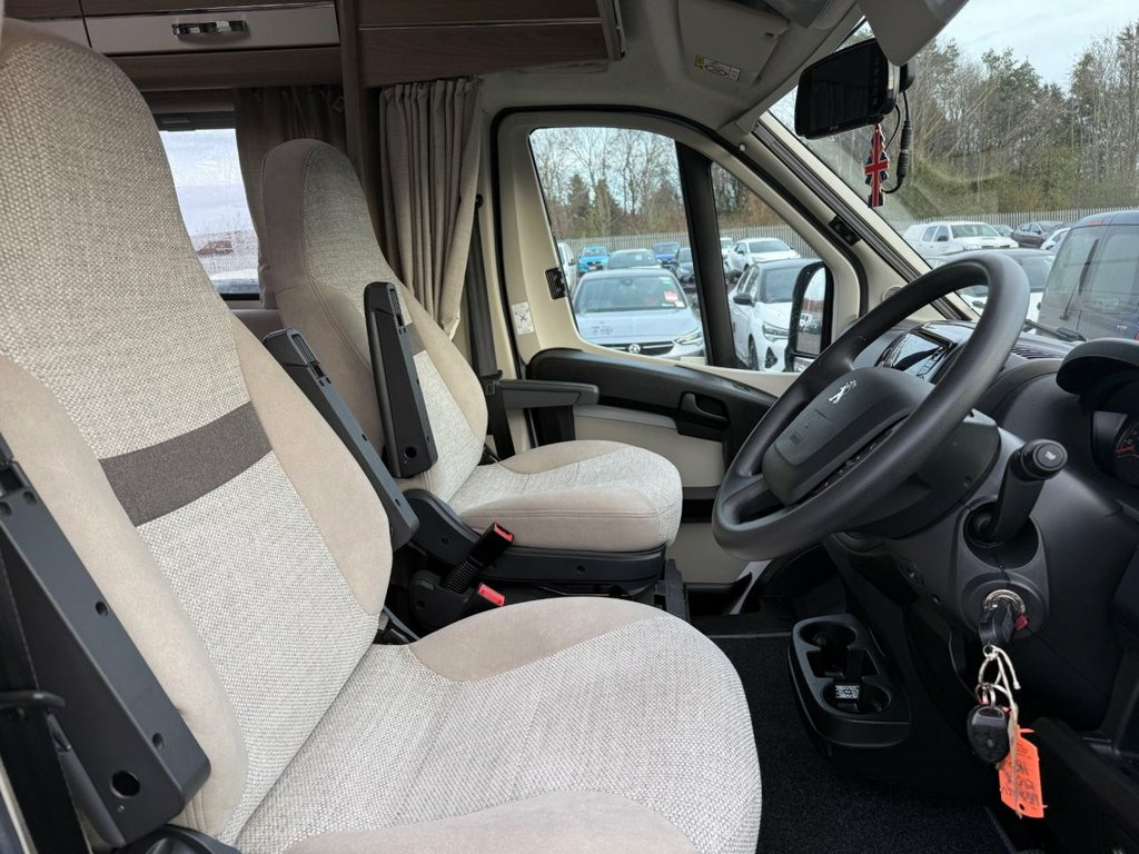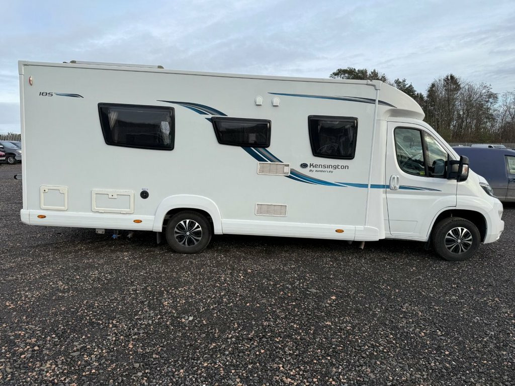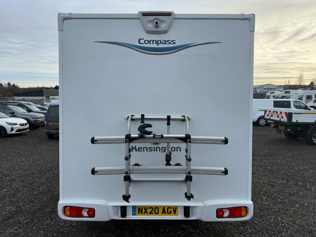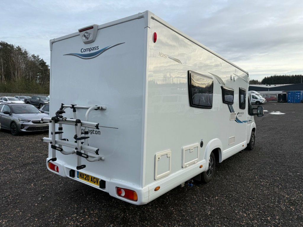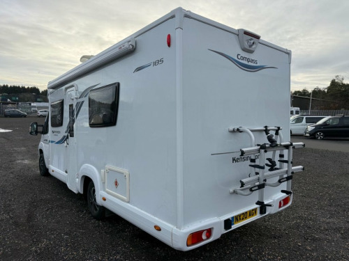 Here we have a beautiful low mileage example of the Compass 185, Being a Kensington it benefits from some additions over a standard 185 including rear view camera, upgraded upholstery and solar panel to name a few. At the front of the vehicle is a spacious lounge with opposing bench seats which create a sociable seating area and house two foldaway travel seats to allow four to travel safely and create a small double bed for sleeping. Moving to the centre of the vehicle we have a well equipped kitchen with full cooker complete with three burners, one hotplate, grill and oven, sink, microwave and fridge with ice compartment. Moving towards the rear we have twin fixed beds which are big enough for two adults. At the very rear is a large washroom complete with cassette toilet, hand basin and separate shower cubicle. 12 Volt Socket in Cabin, 15in Steel Wheels, 2-Button Plip Remote Control Central Loc, ABS - Anti Lock Braking System, Central Dash Folding Clipboard, Conversion Interface Box, Deadlocks, Digital Clock, Door Open Warning for Cab Doors, Drivers Airbag, Drivers Seat Height - Rake and Reach Adj, Dual Cab Passenger Seat, EBFD - Electronic Brake Force Distributi, ESP - Electronic Stability Programme, Electric Front Windows, Electrically Adjustable and Heated Door , FM DAB Digital Radio Including Bluetooth, Filtering Tinted Glass, Floor - Non Slip Hardwearing Front Cab C, Four Speakers - 2 Speakers and 2 Tweeter, Four Speed Heater Blower - Four Face Lev, Front Door Armrests, Gear Shift Indicator, H