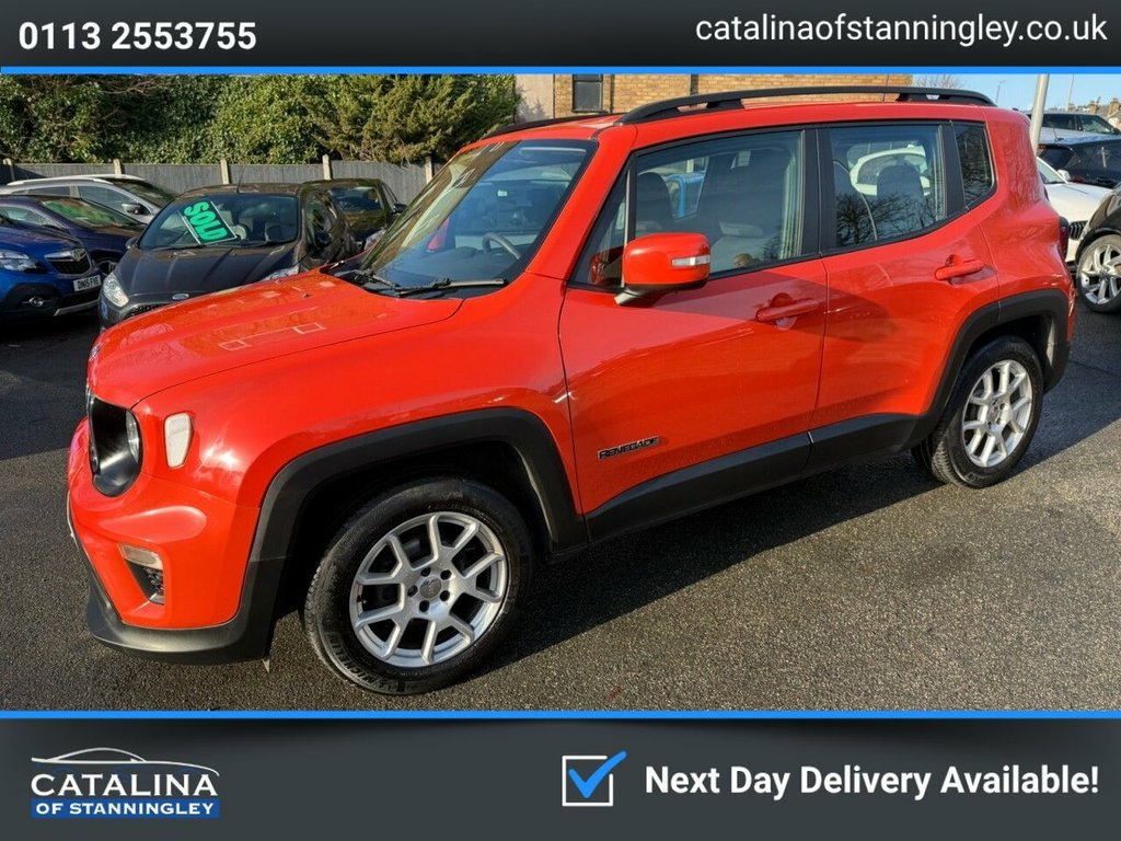 Jeep Renegade 1.0 GSE T3 Longitude – Great Spec | Excellent History | Long MOT Petrol | Manual | Euro 6 | 120 PS | 52,407 Miles | MOT Until 14-01-2027 This Jeep Renegade 1.0 GSE T3 Longitude is a smart, well-maintained example of Jeep's stylish and practical compact SUV. With just 52,407 miles from new, only two owners, and a solid 5-service history up to 52k, it has been properly cared for throughout its life. Powered by the efficient 1.0 turbo petrol engine producing 120 PS, it delivers smooth performance with good fuel economy, while remaining fully Euro 6 compliant and suitable for modern clean-air zones. Finished in striking orange with a dark cloth interior, this Longitude model offers a great level of specification including satellite navigation, Bluetooth, alloy wheels, and modern comfort features, making it an ideal family or commuter SUV. A clean, great-spec example of the Jeep Renegade — combining standout styling, practicality, and excellent value. Vehicle Preparation & Warranty Every vehicle is supplied with a minimum of 6 months MOT. If the remaining MOT is less than 6 months at point of sale, the car will receive a FREE 12-month MOT prior to collection. All vehicles are fully up to date with servicing where required. We include a FREE 3-month engine warranty, provided on a return-to-base basis. For additional peace of mind, we offer comprehensive nationwide warranty upgrades covering both parts and labour. These policies can include co 12V Auxiliary Power Outlet Centre Consol, 17in Alloy Wheels - Aluminium, 2nd Row Fully Functional USB Port, 6-Way Manual Driver Seat - 4-Way Manual , ABS - Anti-Lock Brakes, Alarm - Thatcham Category 1, Apple CarPlay and Android Auto, Aspherical Door Mirrors, Battery Run Down Protection, Body-Colour Steel Roof, Cruise Control, DAB - Digital Audio Broadcasting, Deadlocks, Door Courtesy Lamps, Dual Note Electric Horns, Dual Zone Climate Control, ERM - Electronic Roll Mitigation, Electric Park Brake, Electric Power Steering, Electronic Stability Control - ESC - and, External Rearview Mirrors with Electrica, Fix and Go Puncture Repair Kit, Forward Collision Warning Plus with Miti, Front - Next G