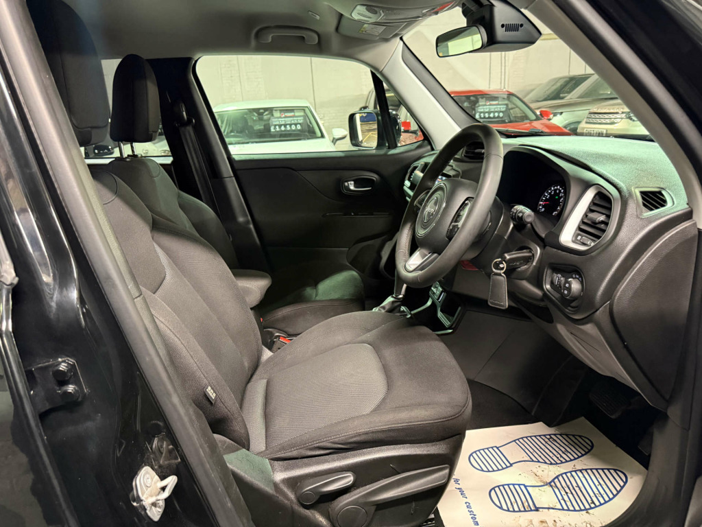 Introducing the Jeep Renegade 1.3 Renegade Longitude Auto 5dr - the ultimate combination of style, performance, and ruggedness. This stunning vehicle, finished in sleek Black, is sure to turn heads wherever you go.With only 1 previous owners, this Jeep Renegade is in pristine condition and ready to take on any adventure. The Cloth interior in Black with Satin Silver Bezel Accent adds a touch of luxury to the already impressive design.Whether you're navigating city streets or exploring off-road trails, the Jeep Renegade is equipped to handle it all with ease. Don't miss your chance to own this exceptional vehicle - contact us today to schedule a test drive and experience the thrill of driving a Jeep Renegade for yourself. oth - black with satin silver bezel accent, black, vp4 radio nav - 8.4in touchscreen - eu, uconnect live services via mobile, tyre pressure monitoring - warning display, tyre kit tag - b group, trailer sway damping - control, traction control, tow eye brackets, tonneau cover, steering wheel controls with bluetooth, steering wheel adjustment - tilt-telescopic, speed limiter, cruise control, forward collision warning plus with mitigation, fix and go puncture repair kit, external rearview mirrors with electrical drive and defrost, electronic stability control - esc - and hill start assist, electric power steering, electric park brake, erm - electronic roll mitigation, dual zone climate control, dual note electric horns, door courtesy lamps, deadlocks, dab - digital audio broadcasting, front - next generation - front side and side curtain -front and rear -airbags, body-colour steel roof, battery run down protection, aspherical door mirrors, apple carplay and android auto, alarm - thatcham category 1, abs - anti-lock brakes, 6-way manual driver seat - 4-way manual passenger seat, 2nd row fully functional usb port, 17in alloy wheels - aluminium, panic brake assist, speakers x6, soft front seat armrest - sliding with interior bin, side repeater lamp, seats - front passenger forward-fold flat seat, roof rails - black, rev counter, remote control central door locking, power windows - rear, power windows - driver and passenger express up and down, passenger airbags deactivation, parking sensors - rear, 12v auxiliary power outlet centre console, painted exterior rearview mirror, mileometer - odometer, lanesense - lane departure warning plus, integrated antenna, instrument cluster - 3.5in monochrome tft display, isofix child seat restraint system, head restraints - height adjustable 3rd rear, gps navigation, front tow eye, front seat belt - adjustable, front fog lights