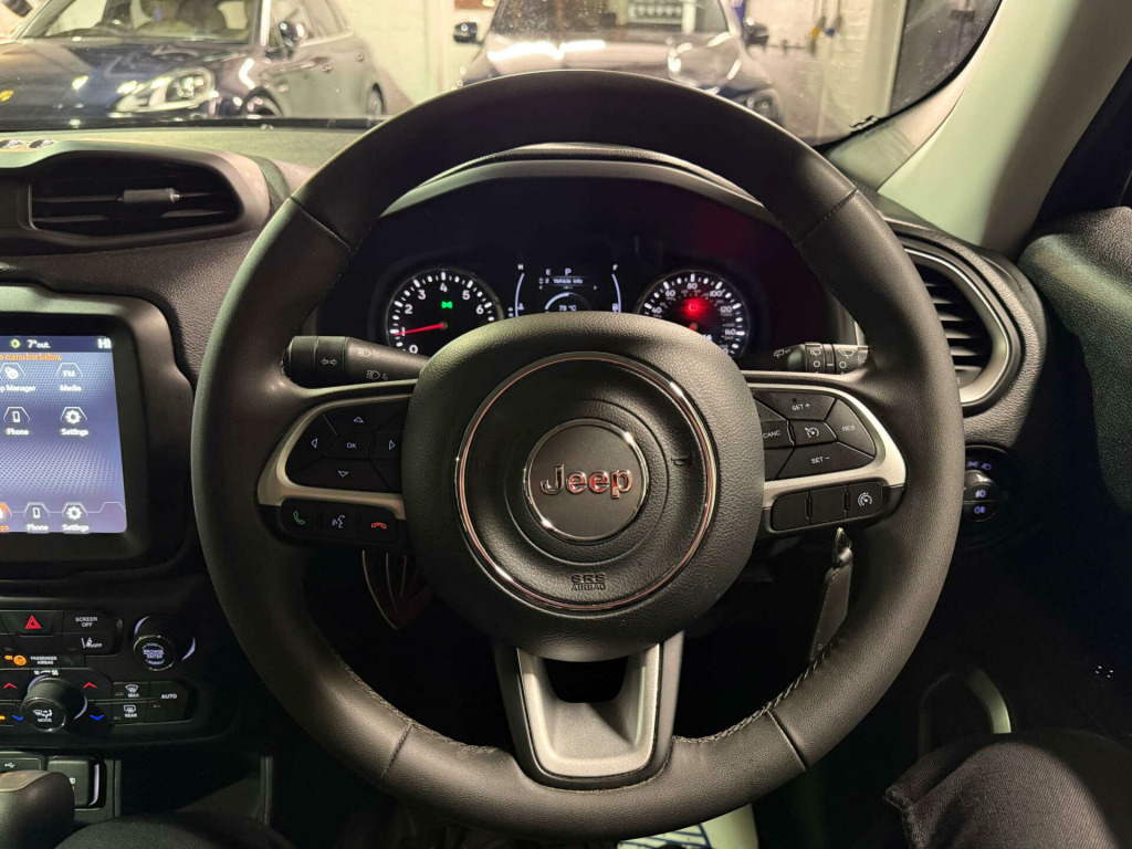 Introducing the Jeep Renegade 1.3 Renegade Longitude Auto 5dr - the ultimate combination of style, performance, and ruggedness. This stunning vehicle, finished in sleek Black, is sure to turn heads wherever you go.With only 1 previous owners, this Jeep Renegade is in pristine condition and ready to take on any adventure. The Cloth interior in Black with Satin Silver Bezel Accent adds a touch of luxury to the already impressive design.Whether you're navigating city streets or exploring off-road trails, the Jeep Renegade is equipped to handle it all with ease. Don't miss your chance to own this exceptional vehicle - contact us today to schedule a test drive and experience the thrill of driving a Jeep Renegade for yourself. oth - black with satin silver bezel accent, black, vp4 radio nav - 8.4in touchscreen - eu, uconnect live services via mobile, tyre pressure monitoring - warning display, tyre kit tag - b group, trailer sway damping - control, traction control, tow eye brackets, tonneau cover, steering wheel controls with bluetooth, steering wheel adjustment - tilt-telescopic, speed limiter, cruise control, forward collision warning plus with mitigation, fix and go puncture repair kit, external rearview mirrors with electrical drive and defrost, electronic stability control - esc - and hill start assist, electric power steering, electric park brake, erm - electronic roll mitigation, dual zone climate control, dual note electric horns, door courtesy lamps, deadlocks, dab - digital audio broadcasting, front - next generation - front side and side curtain -front and rear -airbags, body-colour steel roof, battery run down protection, aspherical door mirrors, apple carplay and android auto, alarm - thatcham category 1, abs - anti-lock brakes, 6-way manual driver seat - 4-way manual passenger seat, 2nd row fully functional usb port, 17in alloy wheels - aluminium, panic brake assist, speakers x6, soft front seat armrest - sliding with interior bin, side repeater lamp, seats - front passenger forward-fold flat seat, roof rails - black, rev counter, remote control central door locking, power windows - rear, power windows - driver and passenger express up and down, passenger airbags deactivation, parking sensors - rear, 12v auxiliary power outlet centre console, painted exterior rearview mirror, mileometer - odometer, lanesense - lane departure warning plus, integrated antenna, instrument cluster - 3.5in monochrome tft display, isofix child seat restraint system, head restraints - height adjustable 3rd rear, gps navigation, front tow eye, front seat belt - adjustable, front fog lights