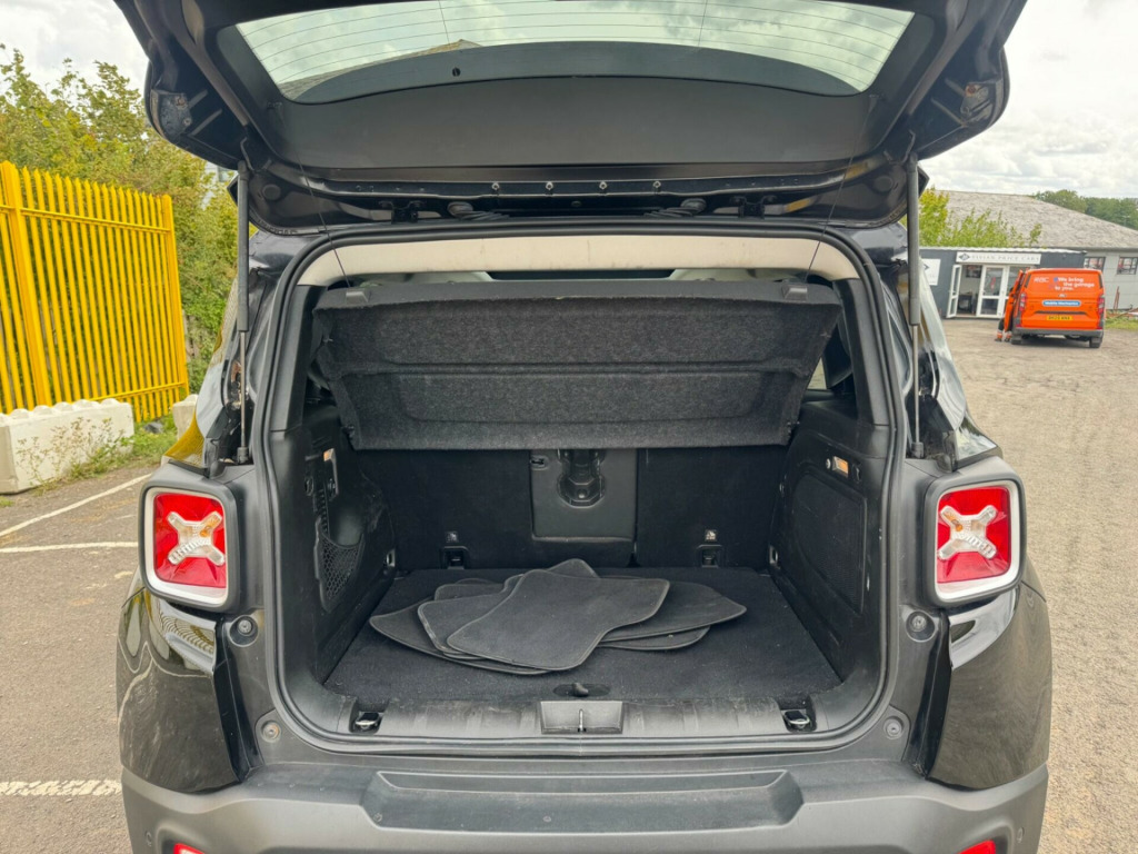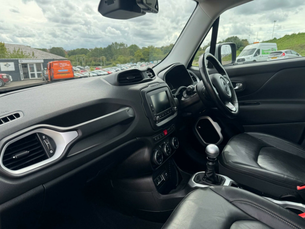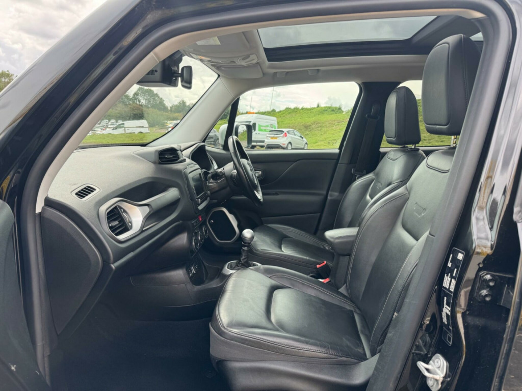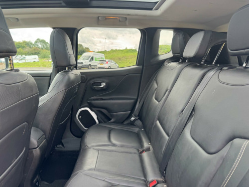 Discover this 2017 Jeep Renegade T Limited, a stylish and capable compact SUV that offers a compelling blend of practicality and adventure. Powered by an efficient 1.4 litre petrol engine, this Euro 6 compliant model delivers an impressive fuel economy of 47 miles per gallon, making it an economical choice for your daily journeys. The Limited trim level ensures a well appointed interior, complemented by desirable features such as 18 inch aluminium two tone alloy wheels for a distinctive look. Experience the open air with the electric panoramic sunroof, which includes an opening function for added enjoyment.This Jeep Renegade T Limited also boasts a comprehensive Visibility Pack, featuring automatic on headlights and xenon headlights for enhanced night time driving. Parking is made easier with the Parking Pack, which includes a rear camera and Blind Spot Assistance to help you navigate tight spaces with confidence. The Function Pack 2 adds the convenience of keyless entry, allowing you to access and start the vehicle without fumbling for keys. Furthermore, this model falls into a low insurance group, indicating potentially lower running costs, and its excellent fuel economy of 47 mpg highlights its efficiency compared to many other vehicles in its class. ectric panoramic sunroof, parking pack, visibility pack, infotainment pack, function pack 2, seats - front 8-way electric adjustment, 18in alloy wheels - aluminium two tone, dark tinted privacy glass, leather - black leather with satin silver bezel accents and stitching, 12v auxiliary power outlet - centre console and cargo area, 18in alloy wheels - aluminium silver painted, 6-way manual driver seat - 4-way manual passenger seat, abs - anti-lock brakes, adaptive rear brake lights, alarm - premium, ambient led interior lighting, body colour door mirror and handles, body coloured door handles, cargo tie down loops, cruise control, dab - digital audio broadcasting, deadlocks, dual note electric horns, dual zone climate control, erm - electronic roll mitigation, ecodrive - drive monitoring system, electric park brake, electric power steering, electronic stability control - esc - and hill start assist, exhaust tailpipes - chrome, fix and go puncture repair kit, floor mats, forward collision warning plus with mitigation, front & rear parking sensors, front - next generation - front side and side curtain -front and rear -airbags, front fog lights, front seat belt - adjustable, head restraints - height adjustable 3rd rear, heated front seats, isofix child seat restraint system, lanesense - lane departure warning plus, leather wrapped steering wheel, lower bodyside cladding - black, panic brake assist, passenger airbags deactivation, power windows - driver and passenger express up and down, power windows - rear, premium instrument cluster with 7in tft colour display, radio vp4 nav - uconnect 6.5in touchscreen with bluetooth live services & satellite navigation, remote control central door locking, seatback pocket, seats - front passenger forward-fold flat seat, side roof rails and door mirrors - silver, sliding front armrest with storage, speakers x6, speed limiter, steering wheel - mounted audio controls, steering wheel adjustment - tilt-telescopic, traction control, trailer sway damping - control, tyre pressure monitoring - warning display