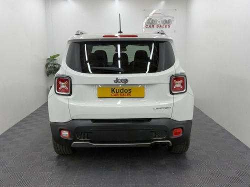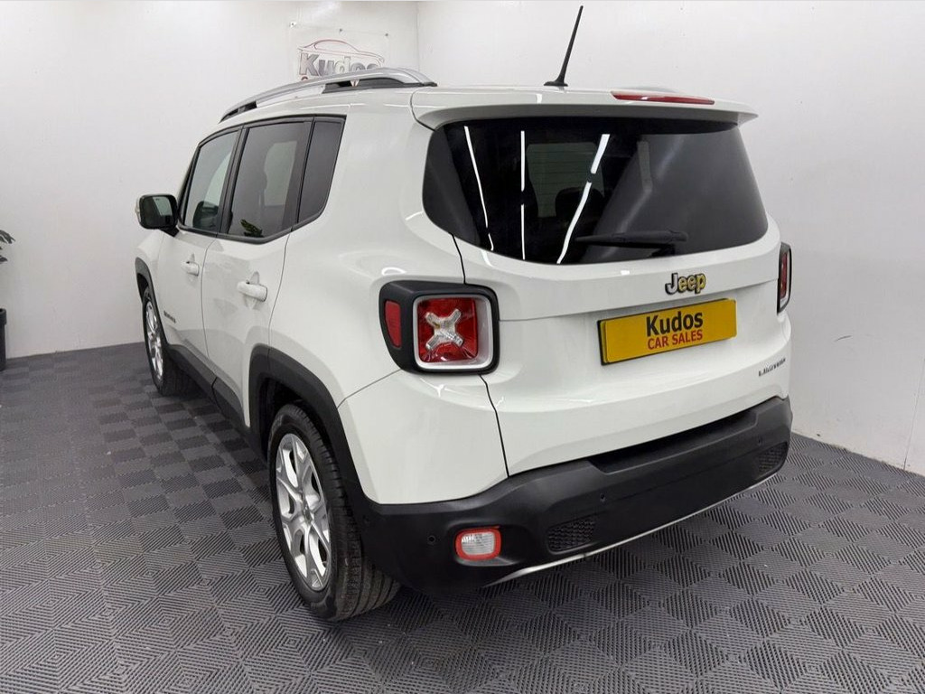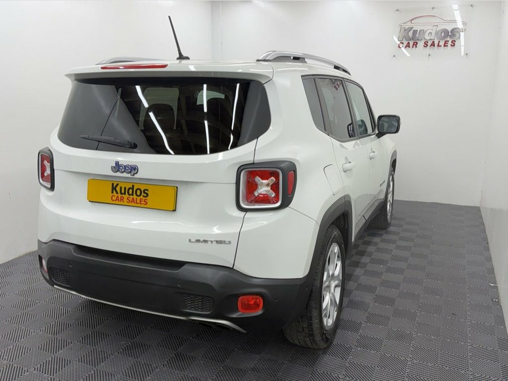2018 JEEP RENEGADE 1.4 MULTIAIR LIMITED 5dr - AWESOME LOOKING CAR. FINISHED IN HIGH GLOSS WHITE. NO DEPOSIT FINANCE AVAILABLE FROM ONLY £141 per mth. 6 MONTHS WARRANTY INCLUDED. EACH VEHICLE COMES WITH A FREE HPI CLEAR REPORT AND 1 YEAR AA BREAKDOWN COVER. 83000 MILES. MOT UNTIL 20/12/26 WITH NO ADVISORIES. FULL SERVICE HISTORY AND LAST SERVICED @ 83000 MILES. **CAM BELT CHANGED****ULEZ COMPLIANT**HUGE SPEC: FULL BLACK LEATHER INTERIOR, HEATED SEATS AND STEERING WHEEL, ELECTRIC LUMBAR SUPPORT, TOUCH SCREEN SAT NAV, CRUISE CONTROL, FRONT, REAR AND SIDE PARKING SENSORS WITH DISPLAY ASSIST, TOUCH SCREEN DAB RADIO, INDIVIDUAL CLIMATE CONTROL, AIRCON, BLUETOOTH, ELECTRIC LUMBAR SUPPORT, REMOTE CENTRAL LOCKING, ELECTRIC WINDOWS/MIRRORS, UNMARKED 18'' ALLOY WHEELS. 6 SPEED, USB/AUX, PREVIOUS NON SMOKER. FINANCE PACKAGES - With a number of lenders on board i am able to offer Finance to suit individual circumstances, including Sub Prime. All CARS ARE HPI CHECKED AND CLEAR. WARRANTY - At KUDOS CAR SALES every vehicle comes with a FREE warranty through Warranty Wise. Any repairs under warranty can be carried out at your local garage - Extended warranty available on request at extra cost. INCLUDES DOCS AND PAPERWORK AND 2 KEYS. ***ALL PART EXCHANGE'S CONSIDERED*** 12V Auxiliary Power Outlet - Centre Cons, 18in Alloy Wheels - Aluminium Silver Pai, 6-Way Manual Driver Seat - 4-Way Manual , ABS - Anti-Lock Brakes, Adaptive Rear Brake Lights, Alarm - Premium, Alpine White, Ambient LED Interior Lighting, Body Colour Door Mirror and Handles, Body Coloured Door Handles, Cargo Tie Down Loops, Cruise Control, DAB - Digital Audio Broadcasting, Dark Tinted Privacy Glass, Deadlocks, Dual Note Electric Horns, Dual Zone Climate Control, EcoDrive - Drive Monitoring System, Electric Park Brake, Electric Power Steering, Electronic Stability Control - ESC - and, ERM - Electronic Roll Mitigation, Exhaust Tailpipes - Chrome, Fix and Go Puncture Repair Kit, Floor Mats, Fo