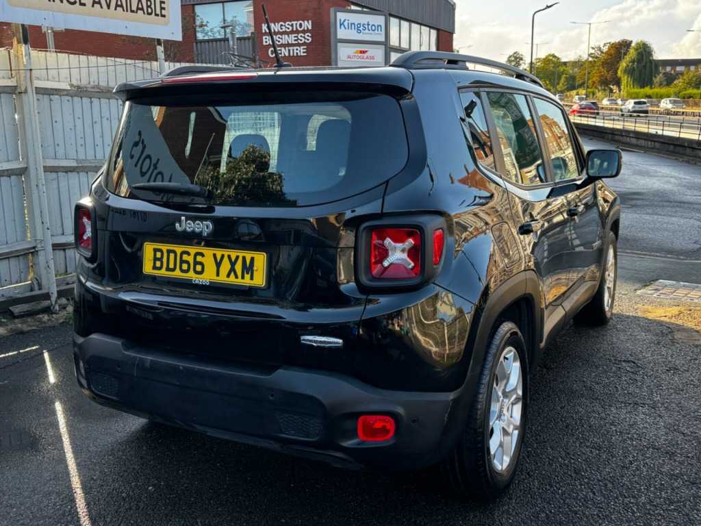 This 2016 Jeep Renegade T Longitude is a great find with remarkably low mileage for its age, having covered just 53,000 miles. It features a 1.4 litre petrol engine and meets Euro 6 emissions standards. For your convenience, this model is equipped with rear parking sensors, including rear parking assistance, and UConnect Bluetooth for seamless phone connectivity. You'll also stay comfortable on every journey thanks to the air conditioning.This Jeep Renegade Longitude offers several advantages that set it apart. Its fuel economy is a notable highlight, achieving an impressive 48 miles per gallon, which is excellent for its class. Furthermore, its low CO2 emissions contribute to a more environmentally friendly drive. The vehicle also sits in a low insurance group, making it an economical choice for many drivers. ats - drivers electric lumbar adjustment, cloth - black with satin silver bezel accent, 12v power socket, 17in alloy wheels - aluminium, abs - anti-lock brakes, air conditioning, airbags - drivers advanced multi stage, airbags - front curtain, airbags - passenger advanced multi stage, airbags - rear curtain, airbags - seat-mounted front side thorax, alarm - premium, ambient led interior lighting, aux-in, body coloured door handles, cruise control, daytime running lights, door mirrors - body coloured, door mirrors - electric and heated, erm - electronic roll mitigation, esc - electronic stability control, ecodrive - drive monitoring system, electric park brake, electric power steering, front fog lights, head restraints - height adjustable 3rd rear, hill start assist, isofix child seat restraint system, instrument cluster - 3.5in monochrome tft display, leather wrapped steering wheel, parking sensors - rear, passenger airbags deactivation, pollen filter, power windows - driver and passenger express up and down, power windows - rear, remote central locking, roof rails - black, satellite navigation system, seats - drivers 6-way adjustment, seats - drivers electric lumbar adjustment, seats - passenger 4-way adjustment, sliding front armrest with storage, speakers x6, speed limiter, steering column - tilt and telescopic, steering wheel - mounted audio controls, touchscreen - 5in, traction control, trailer sway damping - control, tyre pressure monitoring - warning display, uconnect bluetooth, usb connectivity, uconnect dab radio, uconnect live
