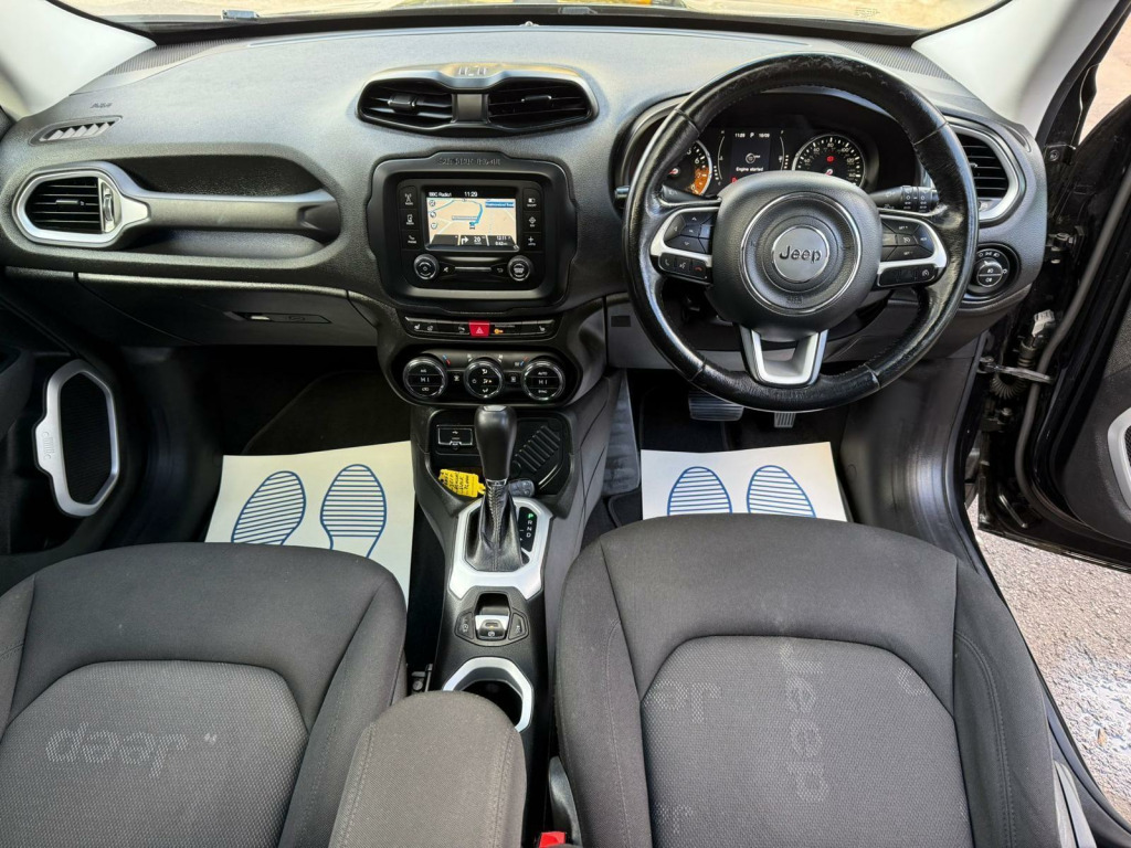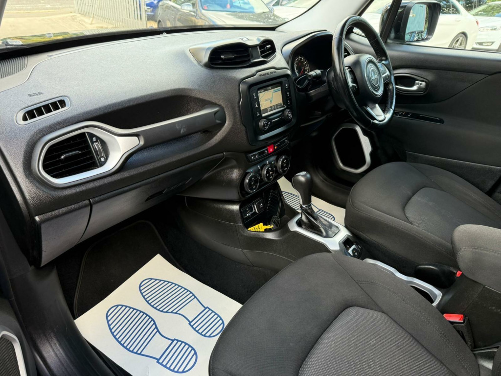 This 2016 Jeep Renegade T Longitude offers an attractive blend of style and practicality, making it an excellent choice for those seeking a capable and well equipped compact SUV.  Powered by a 1.4 litre petrol engine and meeting Euro 6 emissions standards, this model is designed for efficient driving.  It comes fitted with the Function Pack 1, which includes convenient keyless entry, and a desirable electric panoramic sunroof that opens up the cabin.  For added comfort, you'll find heated front seats and a heated steering wheel, perfect for those colder mornings, complemented by front floor mats to keep the interior tidy.This Jeep Renegade stands out with its impressive fuel economy, achieving up to 48 miles per gallon, which is a significant advantage for your running costs compared to many other vehicles in its class. Furthermore, its low CO2 emissions contribute to a more environmentally conscious drive. The vehicle also benefits from a low insurance group, meaning it is more affordable to insure, further enhancing its appeal as a sensible and economical option. nroof - panoramic - electric, function pack 1, heated front seats, heated steering wheel, floor mats - front, cloth - black with jeep logo with satin silver bezel accents, 12v power socket, 17in alloy wheels - aluminium, abs - anti-lock brakes, air conditioning, airbags - drivers advanced multi stage, airbags - front curtain, airbags - passenger advanced multi stage, airbags - rear curtain, airbags - seat-mounted front side thorax, alarm - premium, ambient led interior lighting, aux-in, body coloured door handles, cruise control, daytime running lights, door mirrors - body coloured, door mirrors - electric and heated, erm - electronic roll mitigation, esc - electronic stability control, ecodrive - drive monitoring system, electric park brake, electric windows - front one touch, front fog lights, hill start assist, isofix child seat restraint system, instrument cluster - 3.5in tft colour display, leather wrapped steering wheel, passenger airbags deactivation, pollen filter, power steering, remote central locking, roof rails - black, satellite navigation system, seats - drivers electric lumbar adjustment, speakers x6, speed limiter, steering column - tilt and telescopic, steering wheel - mounted audio controls, touchscreen - 5in, traction control, trailer sway damping - control, trip computer, tyre pressure monitoring - warning display, uconnect bluetooth, usb connectivity, uconnect dab radio