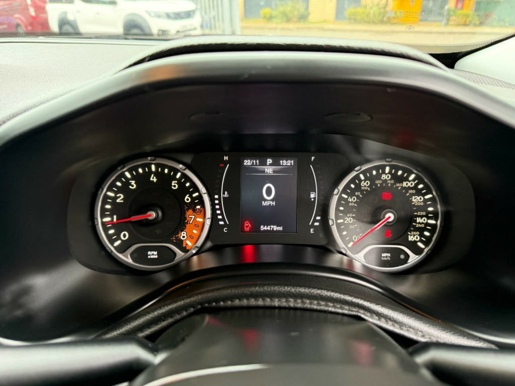 This 2017 Jeep Renegade T Longitude presents a compelling proposition with its remarkably low mileage of just 54,000 miles for its age. This Euro 6 compliant 1.4 litre petrol model, in its Longitude trim, offers a practical and well equipped driving experience. Inside, you will find a Uconnect system featuring a 5 inch touchscreen with Bluetooth connectivity for hands free calls and music streaming, alongside live services and satellite navigation to guide your journeys. Comfort is assured with air conditioning, and parking is made simpler thanks to the rear parking sensors.The Jeep Renegade Longitude stands out with several key advantages. Its fuel economy is a notable highlight, achieving an impressive 48 miles per gallon, which indicates it is more economical than many similar vehicles. Furthermore, its low CO2 emissions contribute to a more environmentally friendly drive. This Renegade also benefits from a low insurance group, suggesting that running costs will be more affordable. These factors combine to make this particular Jeep Renegade a sensible and appealing choice. ats - drivers electric lumbar adjustment, cloth - black with satin silver bezel accent, 12v auxiliary power outlet - centre console and cargo area, 17in alloy wheels - aluminium, 6-way manual driver seat - 4-way manual passenger seat, abs - anti-lock brakes, air conditioning, alarm - premium, ambient led interior lighting, black side roof rails and body colour door mirrors, body coloured door handles, cargo tie down loops, centre console, cruise control, dab - digital audio broadcasting, deadlocks, dual note electric horns, erm - electronic roll mitigation, ecodrive - drive monitoring system, electric park brake, electric power steering, electronic stability control - esc - and hill start assist, fix and go puncture repair kit, front - next generation - front side and side curtain -front and rear -airbags, front fog lights, front seat belt - adjustable, head restraints - height adjustable 3rd rear, isofix child seat restraint system, instrument cluster - 3.5in monochrome tft display, leather wrapped steering wheel, lower bodyside cladding - black, panic brake assist, parking sensors - rear, passenger airbags deactivation, power windows - driver and passenger express up and down, power windows - rear, radio vp2 nav - uconnect 5in touchscreen with bluetooth live services & satellite navigation, remote control central door locking, seatback pocket, seats - front passenger forward-fold flat seat, sliding front armrest with storage, speakers x6, speed limiter, steering wheel - mounted audio controls, steering wheel adjustment - tilt-telescopic, traction control, trailer sway damping - control, tyre pressure monitoring - warning display