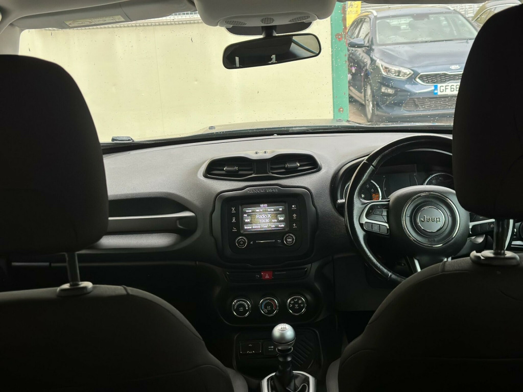 Discover this 2018 Jeep Renegade T Longitude, a well presented vehicle ready for its next adventure. This Euro 6 compliant 1.4L petrol model offers a compelling blend of style and practicality. Inside, you'll find comfort and convenience with air conditioning and a Uconnect 5in touchscreen featuring Bluetooth connectivity, live services, and satellite navigation. For ease of parking, rear parking sensors are included, providing added confidence when manoeuvring.This Jeep Renegade Longitude stands out with its impressive fuel economy, achieving up to 47 miles per gallon, which indicates it is more economical than many similar vehicles. Furthermore, its low insurance group rating suggests that running costs are kept to a minimum, making it an attractive option for a wide range of drivers.. 12V Auxiliary Power Outlet - Centre Console and Cargo Area, 17in Alloy Wheels - Aluminium, 6-Way Manual Driver Seat - 4-Way Manual Passenger Seat, ABS - Anti-Lock Brakes, Air Conditioning, Alarm - Premium, Ambient LED Interior Lighting, Black Side Roof Rails and Body Colour Door Mirrors, Body Coloured Door Handles, Cargo Tie Down Loops, Centre Console, Cruise Control, DAB - Digital Audio Broadcasting, Deadlocks, Dual Note Electric Horns, ERM - Electronic Roll Mitigation, EcoDrive - Drive Monitoring System, Electric Park Brake, Electric Power Steering, Electronic Stability Control - ESC - and Hill Start Assist, Fix and Go Puncture Repair Kit, Front - Next Generation - Front Side and Side Curtain -Front and Rear -Airbags, Front Fog Lights, Front Seat Belt - Adjustable, Head Restraints - Height Adjustable 3rd Rear, ISOFIX Child Seat Restraint System, Instrument Cluster - 3.5in Monochrome TFT Display, Leather Wrapped Steering Wheel, Lower Bodyside Cladding - Black, Panic Brake Assist, Parking Sensors - Rear, Passenger Airbags Deactivation, Power Windows - Driver and Passenger Express Up and Down, Power Windows - Rear, Radio VP2 Nav - Uconnect 5in Touchscreen with Bluetooth Live Services & Satellite Navigation, Remote Control Central Door Locking, Seatback Pocket, Seats - Front Passenger Forward-Fold Flat Seat, Sliding Front Armrest with Storage, Speakers x6, Speed Limiter, Steering Wheel - Mounted Audio Controls, Steering Wheel Adjustment - Tilt-Telescopic, Traction Control, Trailer Sway Damping - Control, Tyre Pressure Monitoring - Warning Display, Seats - Drivers Electric Lumbar Adjustment, Cloth - Black with Satin Silver Bezel Accent, Regular Size Spare Tyre.