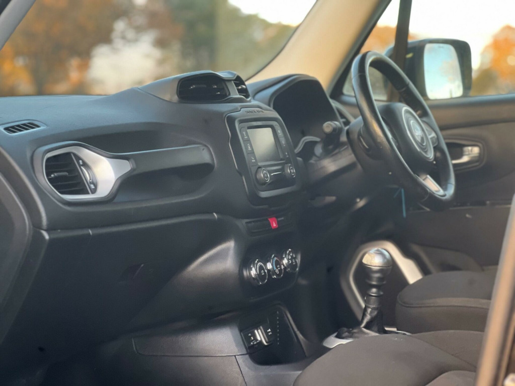 This 2016 Jeep Renegade T Longitude presents a compelling proposition with its remarkably low mileage of just 64,209 miles for its age. This Euro 6 compliant 1.4L petrol model, in its Longitude trim, offers a practical and enjoyable driving experience. Inside, you'll find the convenience of UConnect with Bluetooth connectivity, allowing for seamless integration of your devices, alongside essential Air Conditioning to ensure comfort in all conditions.The Jeep Renegade Longitude stands out with its favourable low insurance group, suggesting it could be a more economical choice for many drivers compared to similar vehicles. This, combined with its well maintained low mileage, indicates a vehicle that has been carefully looked after and is ready for its next adventure. It represents a sensible option for those seeking the distinctive style and capability of a Jeep in a compact and accessible package. oth - black with jeep logo with satin silver bezel accents, 12v power socket, 17in alloy wheels - aluminium, abs - anti-lock brakes, air conditioning, airbags - drivers advanced multi stage, airbags - front curtain, airbags - passenger advanced multi stage, airbags - rear curtain, airbags - seat-mounted front side thorax, alarm - premium, ambient led interior lighting, aux-in, body coloured door handles, cruise control, daytime running lights, door mirrors - body coloured, door mirrors - electric and heated, erm - electronic roll mitigation, esc - electronic stability control, ecodrive - drive monitoring system, electric park brake, electric windows - front one touch, front fog lights, hill start assist, isofix child seat restraint system, instrument cluster - 3.5in tft colour display, leather wrapped steering wheel, passenger airbags deactivation, pollen filter, power steering, remote central locking, roof rails - black, satellite navigation system, seats - drivers electric lumbar adjustment, speakers x6, speed limiter, steering column - tilt and telescopic, steering wheel - mounted audio controls, touchscreen - 5in, traction control, trailer sway damping - control, trip computer, tyre pressure monitoring - warning display, uconnect bluetooth, usb connectivity, uconnect dab radio