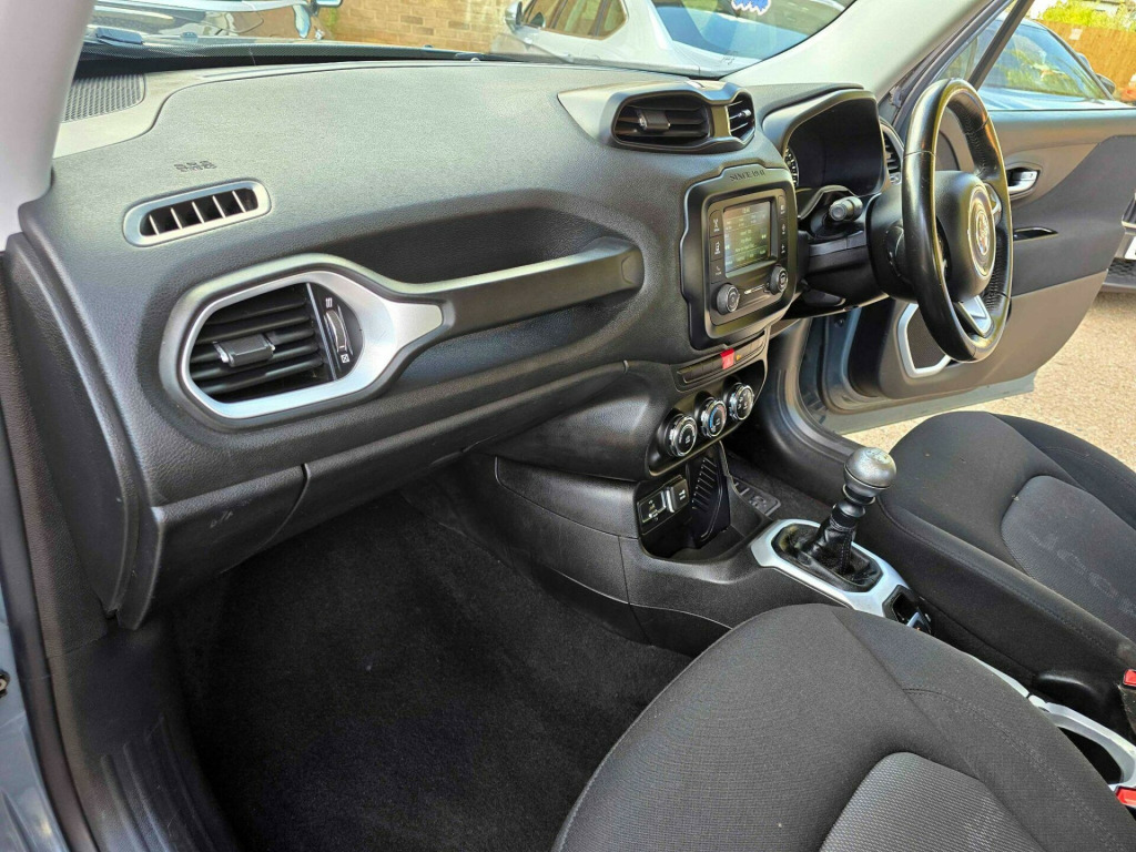 This 2015 Jeep Renegade T Longitude presents a compelling proposition with its remarkably low mileage of just 71,240 miles for its age, coupled with a history of only two previous owners. This Euro 6 compliant 1.4 litre petrol model boasts a full service history, ensuring its mechanical well being has been diligently maintained. For your peace of mind, it comes with a 1 month warranty and a fresh 12 months MOT will be provided upon purchase. Inside, you'll find the convenient UConnect system with Bluetooth connectivity and air conditioning, making every journey more comfortable and connected.The Jeep Renegade Longitude stands out due to its low insurance group, suggesting that running costs could be more affordable compared to similar vehicles. This particular example's low mileage and limited ownership further enhance its appeal, indicating a well cared for vehicle that has likely seen less intensive use than many others of its kind. With its combination of practical features and reassuring provenance, this Renegade offers a solid choice for those seeking a reliable and well equipped compact SUV. oth - black with jeep logo with satin silver bezel accents, 12v power socket, 17in alloy wheels - aluminium, abs - anti-lock brakes, air conditioning, airbags - drivers advanced multi stage, airbags - front curtain, airbags - passenger advanced multi stage, airbags - rear curtain, airbags - seat-mounted front side thorax, alarm - premium, ambient led interior lighting, aux-in, body coloured door handles, cruise control, daytime running lights, door mirrors - body coloured, door mirrors - electric and heated, erm - electronic roll mitigation, esc - electronic stability control, ecodrive - drive monitoring system, electric park brake, electric windows - front one touch, front fog lights, hill start assist, isofix child seat restraint system, instrument cluster - 3.5in tft colour display, leather wrapped steering wheel, passenger airbags deactivation, pollen filter, power steering, remote central locking, roof rails - black, satellite navigation system, seats - drivers electric lumbar adjustment, speakers x6, speed limiter, steering column - tilt and telescopic, steering wheel - mounted audio controls, touchscreen - 5in, traction control, trailer sway damping - control, trip computer, tyre pressure monitoring - warning display, uconnect bluetooth, usb connectivity, uconnect dab radio