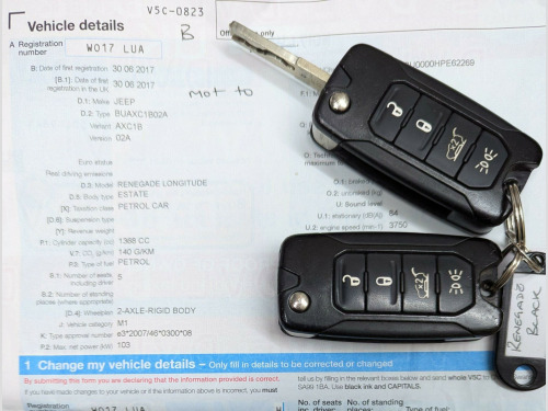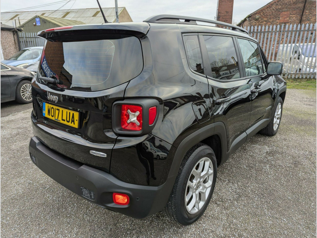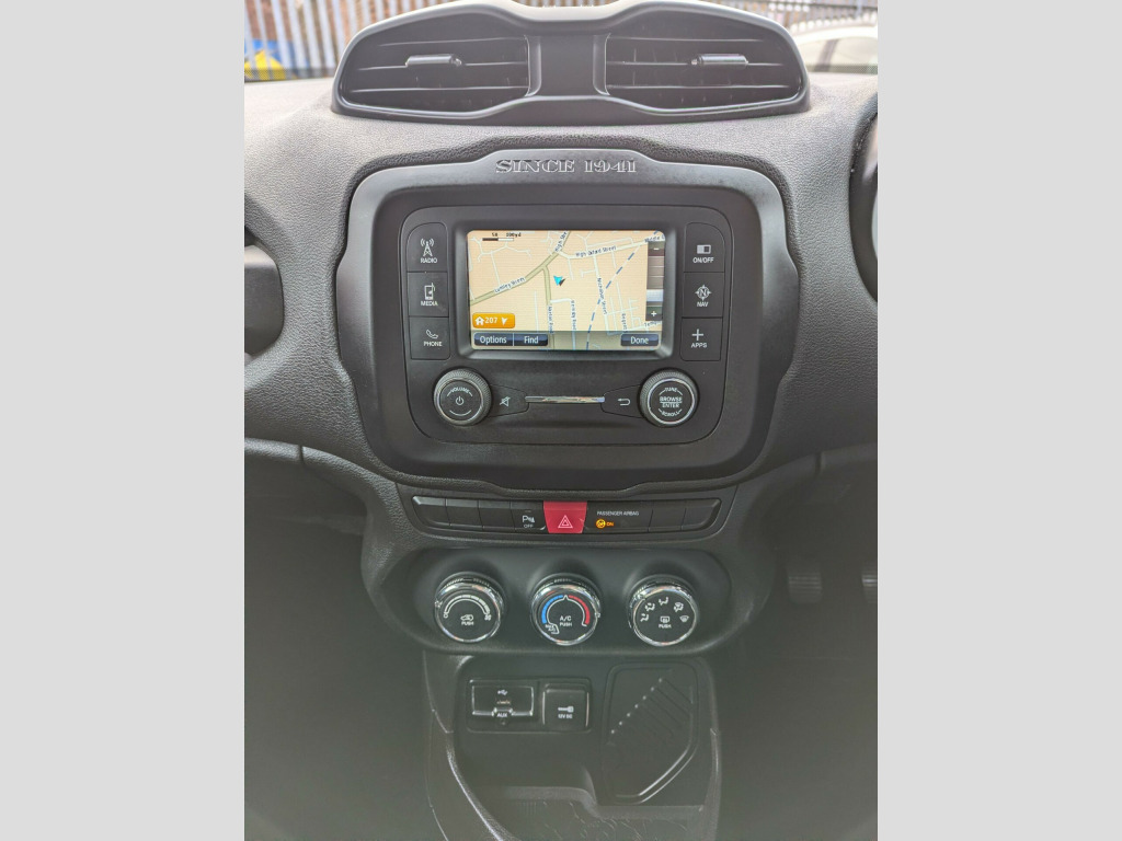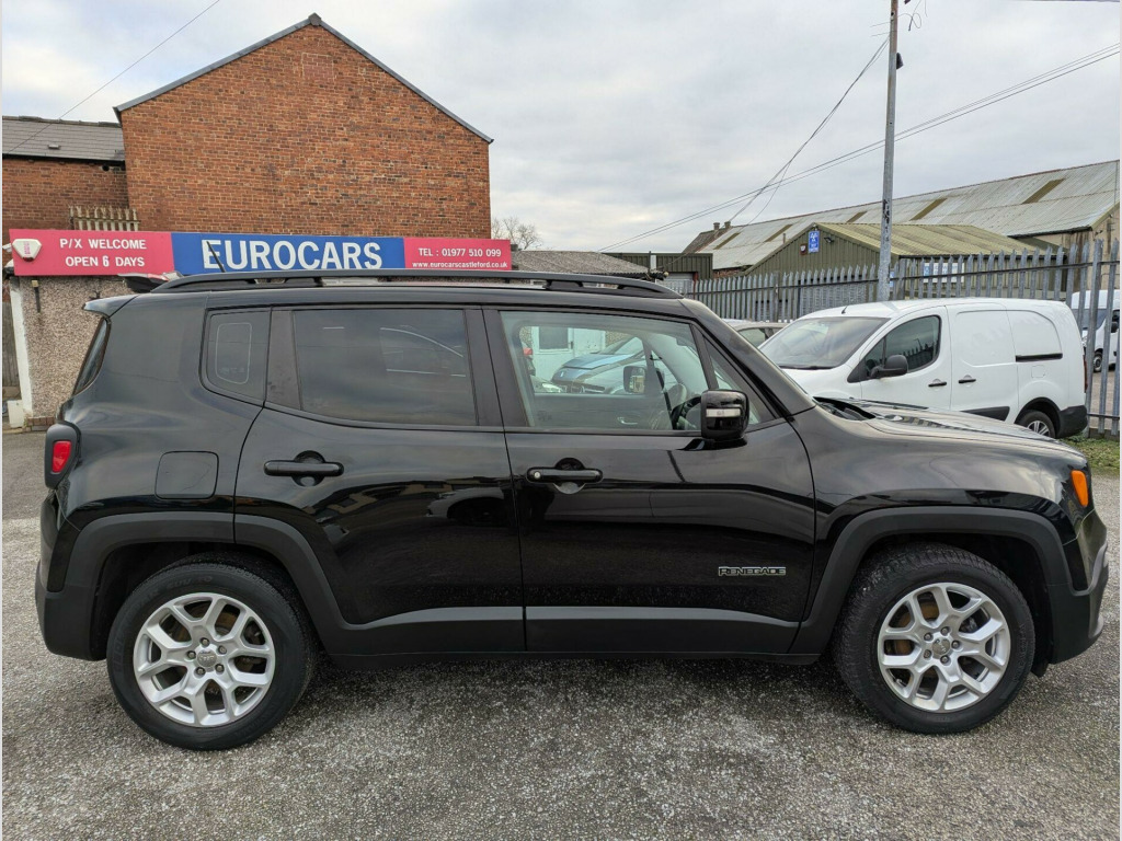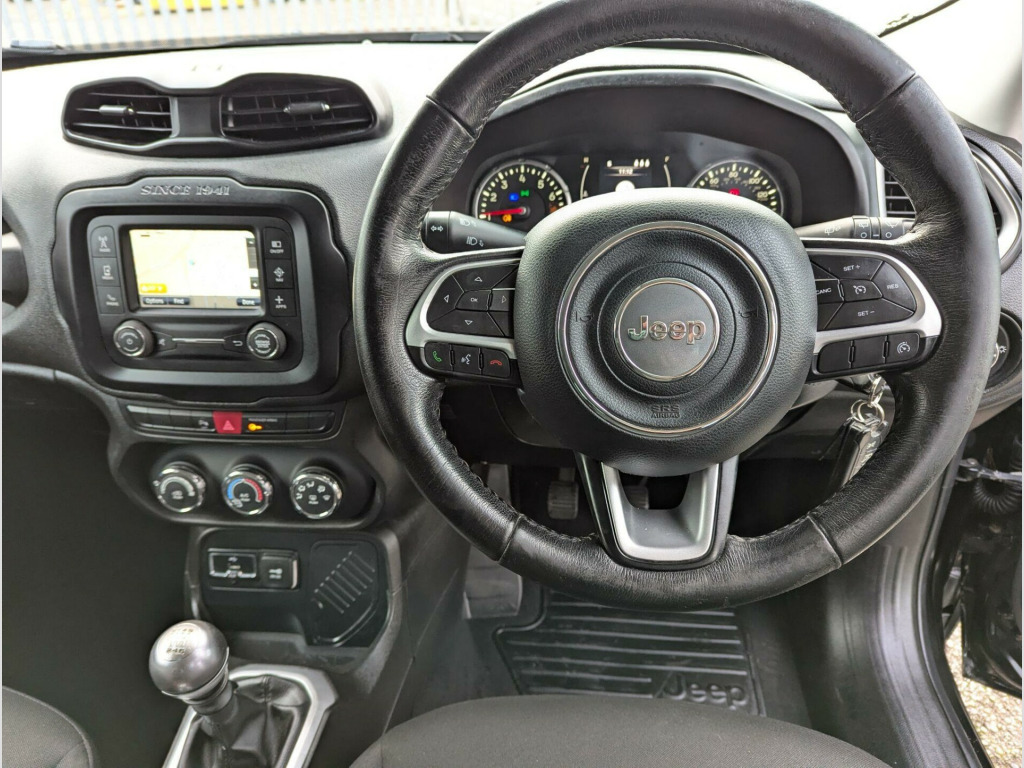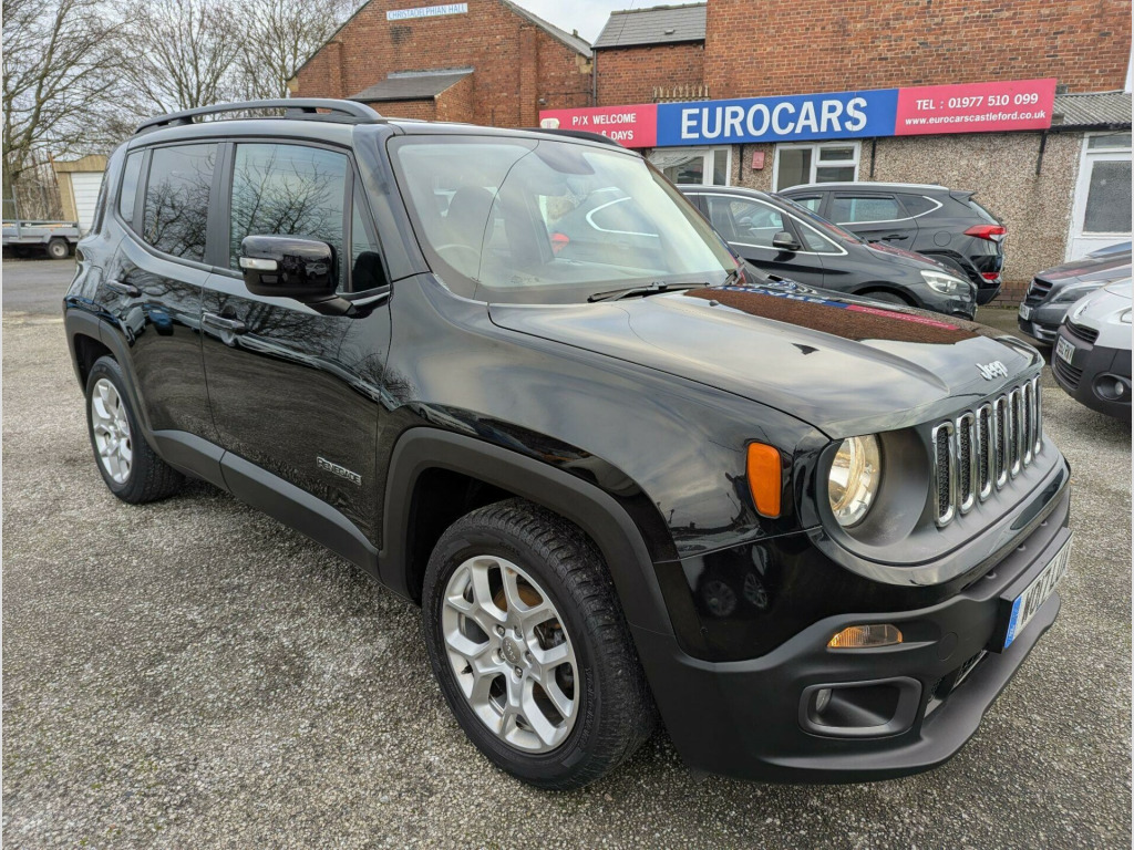 This 2017 Jeep Renegade T Longitude boasts a full service history and a clear vehicle history check, offering you peace of mind. Powered by a 1.4L petrol engine, this Euro 6 compliant model is registered in 2017 and features rear parking sensors with parking assistance, air conditioning for your comfort, and UConnect Bluetooth connectivity. Its MOT is valid until October 2026, further demonstrating its readiness for the road.With an impressive fuel economy of 47 mpg, this Renegade is more economical than many similar vehicles. Furthermore, its low insurance group rating means that running costs are kept to a minimum, making it a sensible choice for everyday driving.This above average car is in wonderful condition, having obviously been cherished by the last owner. It has the benefit of a full service history to give the maximum reliability. View All Our Stock At; www.eurocarscastleford.com DELIVERY IS AVAILABLE WITH A 14 DAY COOLING OFF PERIOD, EMAIL YOUR POST CODE FOR A PERSONALISED QUOTATION AND TERMS. LOW RATE FINANCE IS AVAILABLE ON THIS CAR, PLEASE ASK. All figures quoted are the manufacturers figures. Errors and omissions are expected, this description and specification are AI generated and may be wrong, customers should ensure the actual car specification meets their requirements before purchase as mistakes cannot be rectified after purchase.. 12V Power Socket, 17in Alloy Wheels - Aluminium, ABS - Anti-Lock Brakes, Air Conditioning, Airbags - Drivers Advanced Multi Stage, Airbags - Front Curtain, Airbags - Passenger Advanced Multi Stage, Airbags - Rear Curtain, Airbags - Seat-Mounted Front Side Thorax, Alarm - Premium, Ambient LED Interior Lighting, Aux-in, Body Coloured Door Handles, Cruise Control, Daytime Running Lights, Door Mirrors - Body Coloured, Door Mirrors - Electric and Heated, ERM - Electronic Roll Mitigation, ESC - Electronic Stability Control, EcoDrive - Drive Monitoring System, Electric Park Brake, Electric Power Steering, Front Fog Lights, Gear Knob - Satin Chrome, Head Restraints - Height Adjustable 3rd Rear, Hill Start Assist, ISOFIX Child Seat Restraint System, Instrument Cluster - 3.5in Monochrome TFT Display, Leather Wrapped Steering Wheel, Parking Sensors - Rear, Passenger Airbags Deactivation, Pollen Filter, Power Windows - Driver and Passenger Express Up and Down, Power Windows - Rear, Remote Central Locking, Roof Rails - Black, Satellite Navigation System, Seats - Drivers 6-Way Adjustment, Seats - Drivers Electric Lumbar Adjustment, Seats - Passenger 4-Way Adjustment, Sliding Front Armrest with Storage, Speakers x6, Speed Limiter, Steering Column - Tilt and Telescopic, Steering Wheel - Mounted Audio Controls, Touchscreen - 5in, Traction Control, Trailer Sway Damping - Control, Tyre Pressure Monitoring - Warning Display, UConnect Bluetooth, USB Connectivity, Uconnect DAB Radio, Uconnect Live, Seats - Drivers Electric Lumbar Adjustment, Cloth - Black with Satin Silver Bezel Accent. Full service history