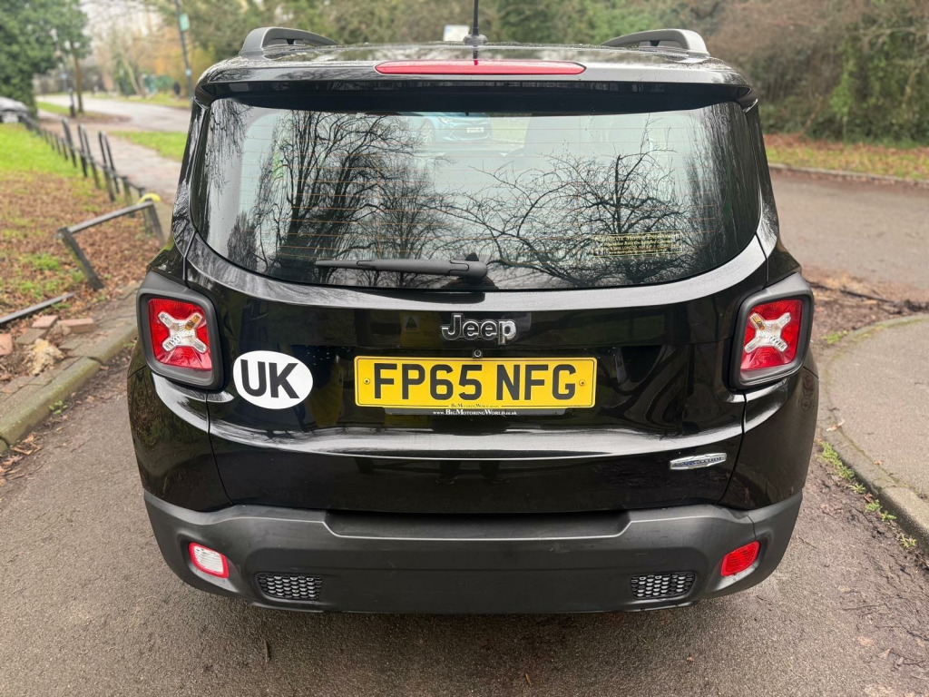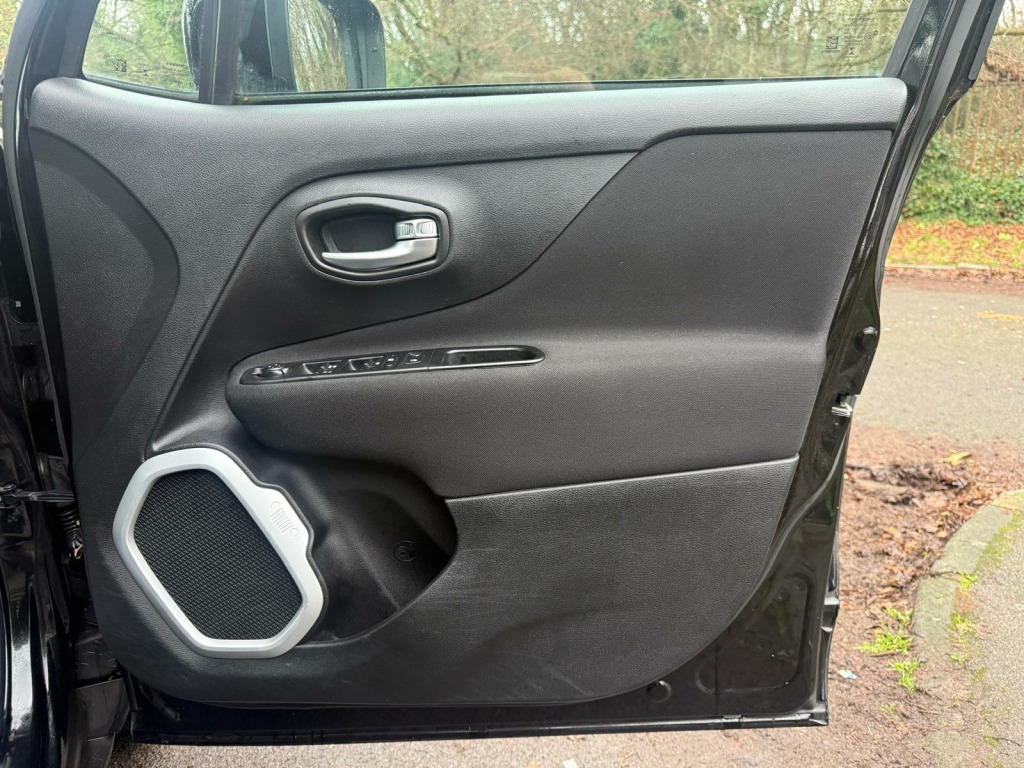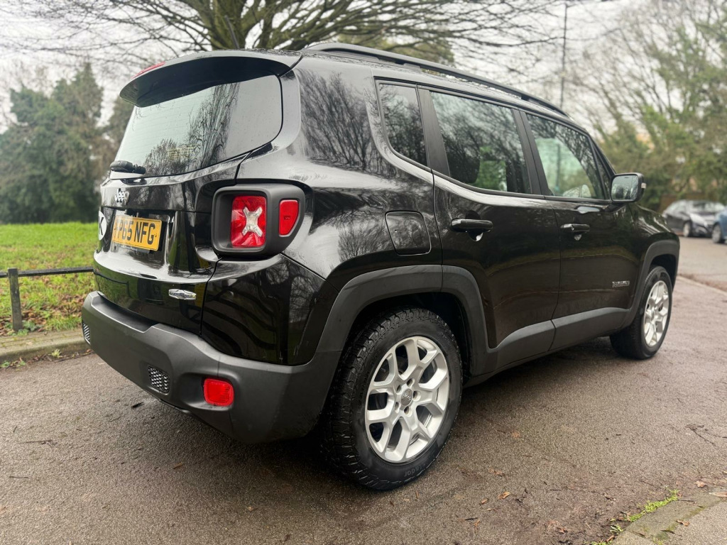 FREE 3 MONTHS WARRANTY/ 2 KEYS/ 5 DAYS DRIVE AWAY INSURANCE AVAILABLE, USED BY 2 OWNERS FROM NEW, NEW SERVICE AND MOT.Boasting an impressive MOT valid until January 2027 and a full service history, this 2015 Jeep Renegade T Longitude presents a compelling proposition for any discerning buyer. This Euro 6 compliant 1.4L petrol model has covered just 63,000 miles, a low figure for its age, and has been cared for by only two owners. Inside, you'll find practical comfort with Air Conditioning and the convenience of UConnect Bluetooth connectivity, while the driver benefits from electric lumbar adjustment for enhanced comfort on longer journeys.This Jeep Renegade stands out with its excellent fuel economy, achieving an impressive 48 miles per gallon, and its low CO2 emissions, making it a more economical choice. Furthermore, its position within a low insurance group indicates that running costs are kept to a minimum, further enhancing its appeal. A 3 month warranty is included, offering peace of mind for your purchase., oth - black with jeep logo with satin silver bezel accents, 12v power socket, 17in alloy wheels - aluminium, abs - anti-lock brakes, air conditioning, airbags - drivers advanced multi stage, airbags - front curtain, airbags - passenger advanced multi stage, airbags - rear curtain, airbags - seat-mounted front side thorax, alarm - premium, ambient led interior lighting, aux-in, body coloured door handles, cruise control, daytime running lights, door mirrors - body coloured, door mirrors - electric and heated, erm - electronic roll mitigation, esc - electronic stability control, ecodrive - drive monitoring system, electric park brake, electric windows - front one touch, front fog lights, hill start assist, isofix child seat restraint system, instrument cluster - 3.5in tft colour display, leather wrapped steering wheel, passenger airbags deactivation, pollen filter, power steering, remote central locking, roof rails - black, satellite navigation system, seats - drivers electric lumbar adjustment, speakers x6, speed limiter, steering column - tilt and telescopic, steering wheel - mounted audio controls, touchscreen - 5in, traction control, trailer sway damping - control, trip computer, tyre pressure monitoring - warning display, uconnect bluetooth, usb connectivity, uconnect dab radio