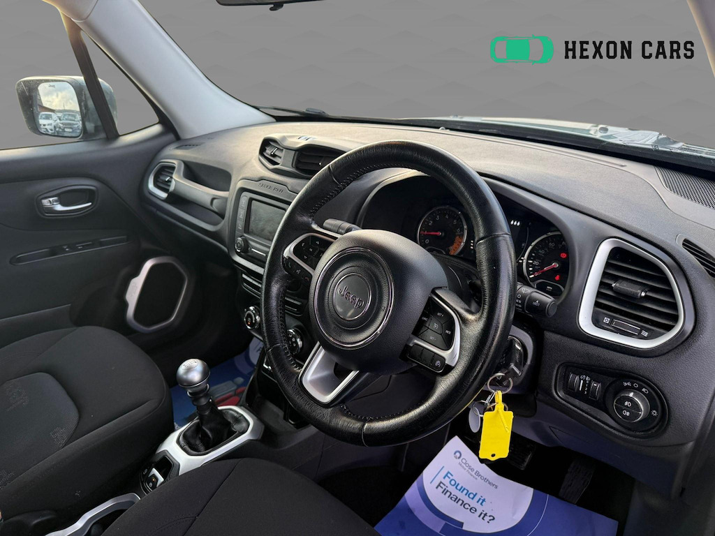 Experience the perfect blend of style and functionality with the Jeep Renegade This versatile SUV not only boasts a robust petrol engine with a manual transmission but also offers a wealth of features designed to enhance your driving experience. Among its standout attributes are the 17-inch alloy wheels, which provide a striking appearance while ensuring a smooth ride on any terrain. Safety is paramount in the Renegade, equipped with ABS - Anti-Lock Brakes to give you peace of mind on the road. This feature is essential for maintaining control during sudden stops, making it a reliable choice for both city driving and longer journeys. The vehicle also comes with daytime running lights, enhancing visibility and safety during daylight hours. For added convenience and comfort, enjoy the benefits of air conditioning and cruise control. The air conditioning system ensures you stay cool during the warmer months, while the cruise control feature allows for relaxed driving on the motorway, helping you to maintain a steady speed without constant acceleration. Don't miss out on the opportunity to own this well-equipped Jeep Renegade. Contact us to book a test drive today or call 01296631199. 12V Power Socket,17in Alloy Wheels - Aluminium,ABS - Anti-Lock Brakes,Air Conditioning,Airbags - Drivers Advanced Multi Stage,Airbags - Front Curtain,Airbags - Passenger Advanced Multi Stage,Airbags - Rear Curtain,Airbags - Seat-Mounted Front Side Thorax,Alarm - Premium,Ambient LED Interior Lighting,Aux-in,Body Coloured Door Handles,Cruise Control,Daytime Running Lights,Door Mirrors - Body Coloured,Door Mirrors - Electric and Heated,ERM - Electronic Roll Mitigation,ESC - Electronic Stability Control,EcoDrive - Drive Monitoring System,Electric Park Brake,Electric Power Steering,Front Fog Lights,Gear Knob - Satin Chrome,Head Restraints - Height Adjustable 3rd Rear,Hill Start Assist,ISOFIX Child Seat Restraint System,Instrument Cluster - 3.5in Monochrome TFT Display,Leather Wrapped Steering Wheel,Parking Sensors - Rear,Passenger Airbags Deactivation,Pollen Filter,Power Windows - Driver and Passenger Express Up and Down,Power Windows - Rear,Remote Central Locking,Roof Rails - Black,Satellite Navigation System,Seats - Drivers 6-Way Adjustment,Seats - Drivers Electric Lumbar Adjustment,Seats - Passenger 4-Way Adjustment,Sliding Front Armrest with Storage,Speakers x6,Speed Limiter,Steering Column - Tilt and Telescopic,Steering Wheel - Mounted Audio Controls,Touchscreen - 5in,Traction Control,Trailer Sway Damping - Control,Tyre Pressure Monitoring - Warning Display,UConnect Bluetooth,USB Connectivity,Uconnect DAB Radio,Uconnect Live,Anvil,Cloth - Black with Jeep Logo with Satin Silver Bezel Accents,Luggage Compartment - Reversible and Height Adjustable Floor