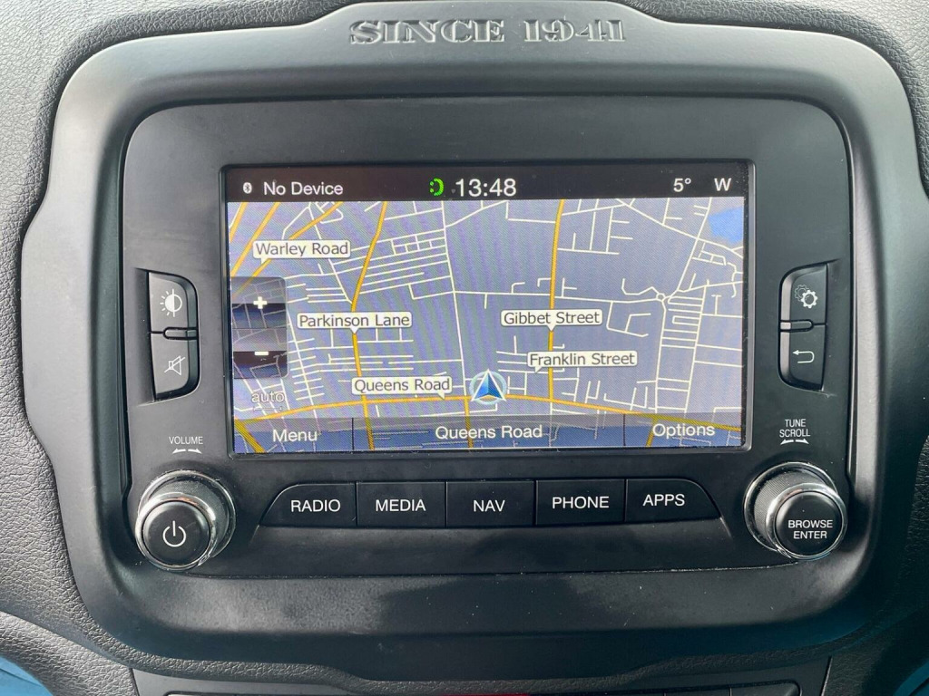 ***EXCELLENT RATES OF FINANCE!! ZERO DEPOSIT FINANCE DEALS AVAILABLE!! *** GET IN TOUCH FOR A PERSONALISED WALK ROUND VIDEO OR FOR A DIGITAL VIEWING!!! JUST ARRIVED STUNNING JEEP RENEGADE BOASTING A HUGE SPEC INCLUDING HEATED FRONT SEATS, HEATED STEERING WHEEL, LANE DEPARTURE WARNING, SAT NAV, REAR PARKING SENSORS, DAB RADIO, AUTOMATIC DUAL ZONE CLIMATE CONTROL, REAR PRIVACY GLASS, LEATHER INTERIOR, CRUISE CONTROL, SPEED LIMITER, USB PORT, AUX PORT, TYRE PRESSURE SENSORS, DAYTIME RUNNING LIGHTS *** 12 MONTHS AA BREAKDOWN COVER ***