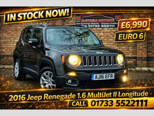 This 2016 Jeep Renegade 1.6 MultiJetII Longitude Euro 6 (s/s) 5dr SUV is currently available for £6,990 in Peterborough Cambridgeshire with Diesel engine and Manual gearbox. For more information or to arrange a viewing, click here to send us an email using form below.
