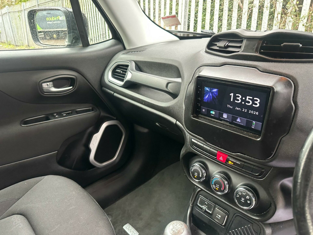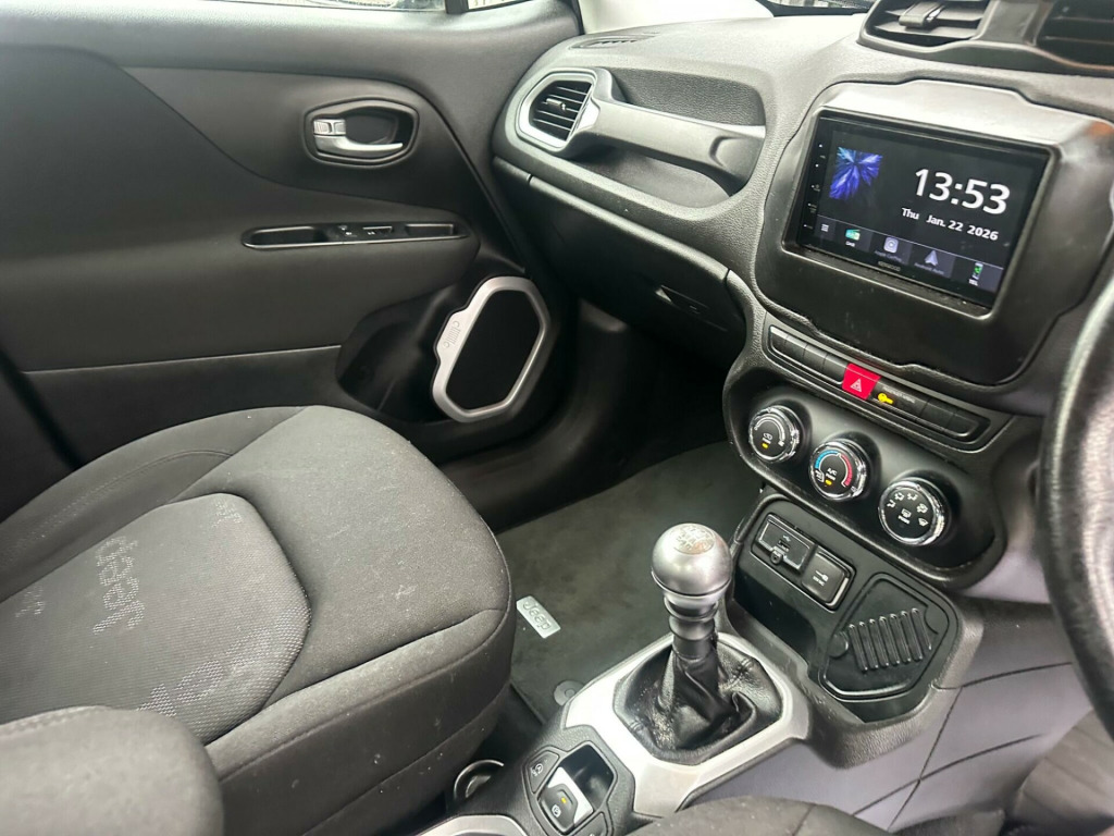 This 2016 Jeep Renegade Longitude boasts a remarkable history, having been owned by only two previous keepers. This popular compact SUV features a 1.6L Diesel engine, meeting the Euro 6 emission standards. Inside, you'll find the convenient UConnect system with Bluetooth connectivity, allowing for seamless phone integration and audio streaming, complemented by air conditioning to ensure a comfortable cabin environment.The Renegade Longitude offers excellent running costs, highlighted by an impressive fuel economy of 64 miles per gallon. Furthermore, its low CO2 emissions and placement in a low insurance group demonstrate how this vehicle offers a more economical choice compared to many others in its class, making it an attractive option for savvy buyers. oth - black with jeep logo with satin silver bezel accents, 12v power socket, 17in alloy wheels - aluminium, abs - anti-lock brakes, air conditioning, airbags - drivers advanced multi stage, airbags - front curtain, airbags - passenger advanced multi stage, airbags - rear curtain, airbags - seat-mounted front side thorax, alarm - premium, ambient led interior lighting, aux-in, body coloured door handles, cruise control, daytime running lights, door mirrors - body coloured, door mirrors - electric and heated, erm - electronic roll mitigation, esc - electronic stability control, ecodrive - drive monitoring system, electric park brake, electric windows - front one touch, front fog lights, hill start assist, isofix child seat restraint system, instrument cluster - 3.5in tft colour display, leather wrapped steering wheel, passenger airbags deactivation, pollen filter, power steering, remote central locking, roof rails - black, satellite navigation system, seats - drivers electric lumbar adjustment, speakers x6, speed limiter, steering column - tilt and telescopic, steering wheel - mounted audio controls, touchscreen - 5in, traction control, trailer sway damping - control, trip computer, tyre pressure monitoring - warning display, uconnect bluetooth, usb connectivity, uconnect dab radio
