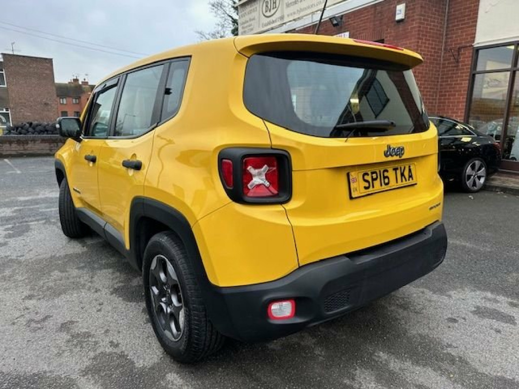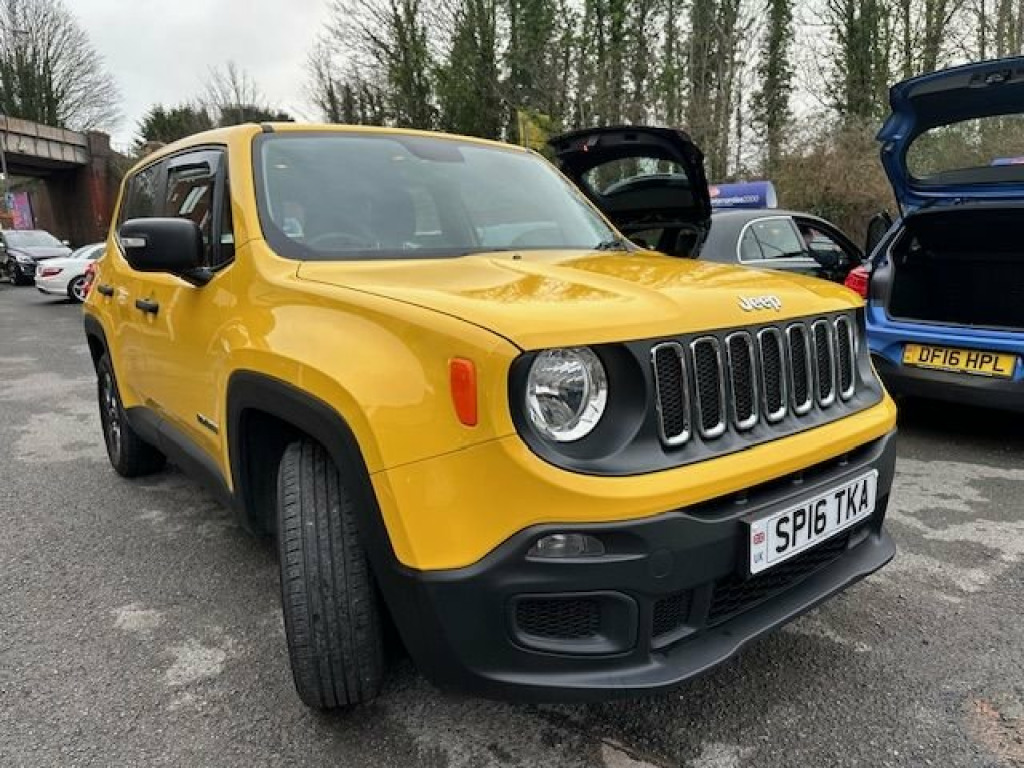 This stunning 2016 16-Reg Jeep Renegade 1.6 E-TorQ Sport petrol, Presented in stunning Brilliant Yellow with black cloth trim and Jeep Embossed seats, it has covered 94,000 miles with FSH(12 Services!) and only 3 previous owners, it comes with air con, alloy wheels, cd player, USB/Media interface, Bluetooth phone prep and being petrol is fully ULEZ Compliant!! Bluetooth wireless phone connectivity, Electric power steering, Instrument cluster- 3.5" Monochrome, Deadlock, Immobiliser, Remote central locking, Security alarm, 4 speakers, DAB Digital radio, Steering wheel mounted controls, 12v power point in centre console, 12V power point in luggage area, 4 way manually adjustable passenger seat, 6 way manually adjustable drivers seat, Air conditioning, Chrome gear knob, Cloth upholstery, Folding passenger seat, Front headrests, Front sliding armrest, Height adjustable rear headrests, Isofix child seat restraint mechanism, PTC (Positive Temp Co-efficent) heater, Tilt/telescopic steering column, Black door mirrors, Black front grille with chrome ri