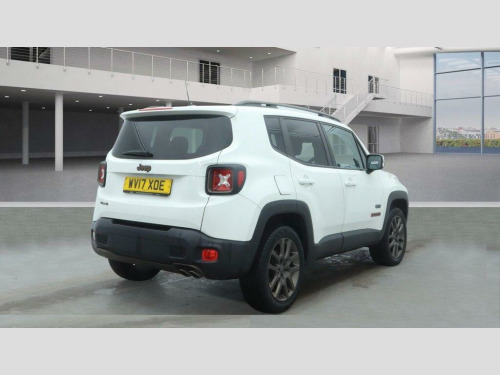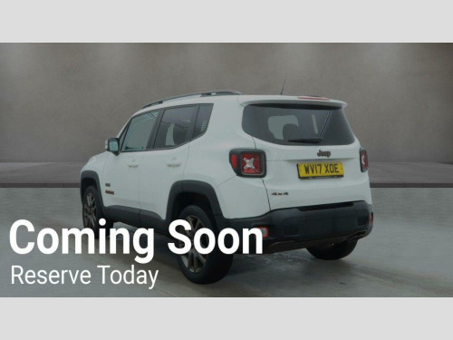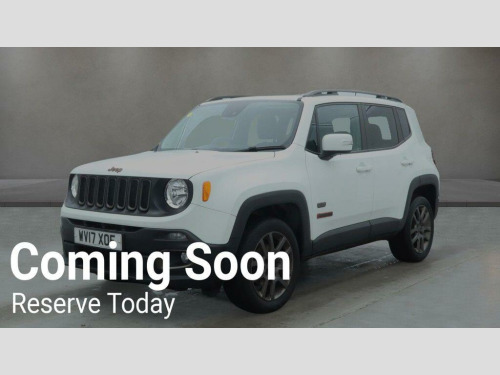 Discover this 2017 Jeep Renegade 75th Anniversary, a special edition four wheel drive model that offers a unique open air driving experience. Powered by a robust 2.0L diesel engine and meeting Euro 6 emissions standards, this Renegade is equipped with the distinctive My Sky Open Air Roof, which includes a power sliding and panoramic sunroof for an unparalleled connection to the outdoors. Inside, you'll find comfort and convenience with UConnect Bluetooth connectivity, a heated steering wheel, and heated front seats, all designed to enhance your journeys.This Jeep Renegade stands out with its impressive fuel economy, achieving up to 55 miles per gallon, and benefits from low CO2 emissions, making it an economical choice. Furthermore, its low insurance group rating indicates that running costs are kept to a minimum, offering excellent value compared to similar vehicles. Front parking sensors are also fitted, providing added assistance when manoeuvring in tighter spaces.All our retail used cars are workshop prepared (serviced as needed), valeted as required and in most cases ready to go. Add to this the fact we have been preparing and selling Stellantis Group family cars and commercials since 1980 then you can buy with confidence your new car will perform as originally intended. We are available 7 days a week but please call first. (Sunday opening from 1.30) Also we are available by appointment for Virtual demonstration, Video walk rounds UK deliveries as required. Our workshop and storage facilities are at SL0 9ND and SL3 8RW so test drives can be available from these two locations as well as Yateley or your home or workplace.Once the cars have finished their pre sales preparation we complete a short video walkround and post this on YouTube. 12V Power Socket, 18in Alloy Wheels - 75th Anniversary Edition Bronze Coloured, ABS - Anti-Lock Brakes, Adaptive Rear Brake Lights, Air Conditioning - Dual Zone with Automatic Temperature Control, Airbags - Drivers Advanced Multi Stage, Airbags - Front Curtain, Airbags - Passenger Advanced Multi Stage, Airbags - Rear Curtain, Airbags - Seat-Mounted Front Side Thorax, Alarm - Premium, Ambient LED Interior Lighting, Armrest - Rear, Autonomous Emergency Braking, Aux-in, Body Coloured Door Handles, Bronze Coloured Air Vents and Speaker Bezels, Bronze Coloured Side Roof Rails, Cruise Control, Daytime Running Lights, Door Mirrors - Body Coloured, Door Mirrors - Electric and Heated, ERM - Electronic Roll Mitigation, ESC - Electronic Stability Control, EcoDrive - Drive Monitoring System, Electric Park Brake, Electric Windows, Exhaust Tailpipes - Chrome, Floor Mats - Front, Forward Collision Warning Plus, Front Fog Lights with Bronze Coloured Bezels, Front Grille with Bronze Coloured Grille Rings, Heated Front Seats, Heated Steering Wheel, Hill Start Assist, ISOFIX Child Seat Restraint System, Instrument Cluster - 7in TFT Colour Display, Lane Departure Warning Plus, Leather Wrapped Steering Wheel, Luggage Compartment - Reversible and Height Adjustable Floor, My Sky Open Air Roof - Power Sliding, Parking Sensors - Front, Parking Sensors - Rear, Passenger Airbags Deactivation, Pollen Filter, Power Steering, Privacy Glass, Remote Central Locking, Roof Rails - Silver, Satellite Navigation System, Seats - 40-20-40 Split Folding Rear, Seats - Drivers Electric Lumbar Adjustment, Speakers x6, Speed Limiter, Steering Column - Tilt and Telescopic, Steering Wheel - Mounted Audio Controls, Touchscreen - 6.5in, Traction Control, Trailer Sway Damping - Control, Trunk Pass-thru, Tyre Pressure Monitoring - Warning Display, UConnect Bluetooth, USB Connectivity, Uconnect DAB Radio, Uconnect Live, Unique Jeep Badges and Celebratory 75th Anniversary Badging, 75th Anniversary Cloth - Black and Linen. Full service history