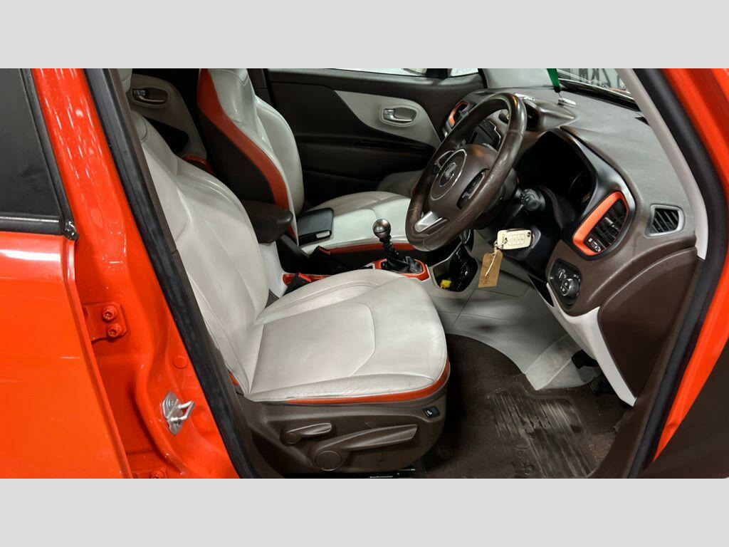 This 2015 Jeep Renegade Limited is a standout choice, offering a compelling blend of capability and comfort. Powered by a robust 2.0L Diesel engine and featuring a capable Four Wheel Drive system, this Euro 6 compliant model is ready for your adventures. Inside, you'll appreciate the convenience of heated front seats and a heated steering wheel, perfect for colder mornings. The dual zone climate control ensures everyone stays comfortable, while rear parking sensors make manoeuvring easier. Stay connected on the go with the UConnect Bluetooth system.This Renegade Limited is designed to be economical and practical. It boasts an impressive fuel economy of 55 mpg, making it an efficient choice for daily driving and longer journeys. Furthermore, its low CO2 emissions and low insurance group highlight how this vehicle offers a more cost effective ownership experience compared to many others in its class.. 12V Power Socket, 18in Alloy Wheels - Silver Painted, ABS - Anti-Lock Brakes, Adaptive Rear Brake Lights, Air Conditioning - Dual Zone with Automatic Temperature Control, Airbags - Drivers Advanced Multi Stage, Airbags - Front Curtain, Airbags - Passenger Advanced Multi Stage, Airbags - Rear Curtain, Airbags - Seat-Mounted Front Side Thorax, Alarm - Premium, Ambient LED Interior Lighting, Armrest - Rear, Autonomous Emergency Braking, Aux-in, Body Coloured Door Handles, Cruise Control, Daytime Running Lights, Door Mirrors - Electric and Heated, Door Mirrors - Silver, ERM - Electronic Roll Mitigation, ESC - Electronic Stability Control, EcoDrive - Drive Monitoring System, Electric Park Brake, Electric Windows - Front One Touch, Exhaust Tailpipes - Chrome, Forward Collision Warning Plus, Front Fog Lights, Grille - Front in Silver, Heated Front Seats, Heated Steering Wheel, Hill Start Assist, ISOFIX Child Seat Restraint System, Instrument Cluster - 7in TFT Colour Display, Lane Departure Warning Plus, Leather Wrapped Steering Wheel, Parking Sensors - Rear, Passenger Airbags Deactivation, Pollen Filter, Power Steering, Privacy Glass, Remote Central Locking, Roof Rails - Silver, Satellite Navigation System, Seats - 40-20-40 Split Folding Rear, Seats - Drivers Electric Lumbar Adjustment, Speakers x6, Speed Limiter, Steering Column - Tilt and Telescopic, Steering Wheel - Mounted Audio Controls, Touchscreen - 6.5in, Traction Control, Trailer Sway Damping - Control, Trip Computer, Trunk Pass-thru, Tyre Pressure Monitoring - Warning Display, UConnect Bluetooth, USB Connectivity, Uconnect DAB Radio, Uconnect Live, Leather - Bark Brown-Ski Grey with Anodized Orange Bezel Accents and Stitching. Full service history