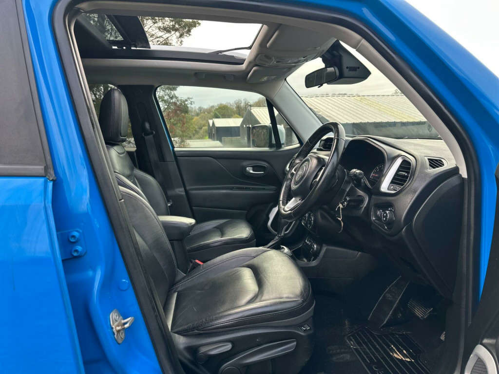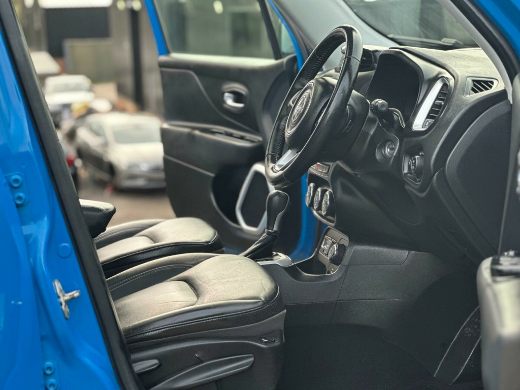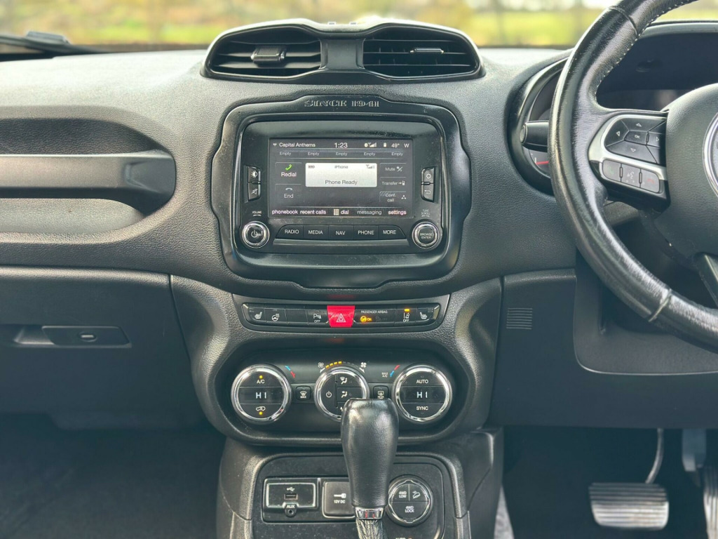 This 2016 Jeep Renegade Limited is a standout choice, offering a compelling blend of capability and comfort. Powered by a robust 2.0L Diesel engine and featuring a capable Four Wheel Drive system, this Euro 6 compliant model is ready for any adventure. Inside, you'll find a host of desirable features designed for your convenience, including 18in Aluminium Two Tone alloy wheels, a heated steering wheel for those chilly mornings, and UConnect Bluetooth for seamless connectivity. Enjoy year round comfort with heated front seats and dual zone climate control, ensuring everyone stays at the perfect temperature.The Jeep Renegade Limited stands out from the crowd with its impressive specification. The inclusion of heated front seats and a heated steering wheel, alongside the dual zone automatic climate control, demonstrates a commitment to driver and passenger comfort that surpasses many vehicles in its class. Furthermore, its low insurance group rating makes it an economical and practical choice for a wide range of owners, offering peace of mind alongside its rugged Jeep heritage. nroof - panoramic - electric, 18in alloy wheels - aluminium two tone, leather - black leather with satin silver bezel accents and stitching, 12v power socket, 18in alloy wheels - silver painted, abs - anti-lock brakes, adaptive rear brake lights, air conditioning - dual zone with automatic temperature control, airbags - drivers advanced multi stage, airbags - front curtain, airbags - passenger advanced multi stage, airbags - rear curtain, airbags - seat-mounted front side thorax, alarm - premium, ambient led interior lighting, armrest - rear, autonomous emergency braking, aux-in, body coloured door handles, cruise control, daytime running lights, door mirrors - electric and heated, door mirrors - silver, erm - electronic roll mitigation, esc - electronic stability control, ecodrive - drive monitoring system, electric park brake, electric windows - front one touch, exhaust tailpipes - chrome, forward collision warning plus, front fog lights, grille - front in silver, heated front seats, heated steering wheel, hill start assist, isofix child seat restraint system, instrument cluster - 7in tft colour display, lane departure warning plus, leather wrapped steering wheel, parking sensors - rear, passenger airbags deactivation, pollen filter, power steering, privacy glass, remote central locking, roof rails - silver, satellite navigation system, seats - 40-20-40 split folding rear, seats - drivers electric lumbar adjustment, speakers x6, speed limiter, steering column - tilt and telescopic, steering wheel - mounted audio controls, touchscreen - 6.5in, traction control, trailer sway damping - control, trip computer, trunk pass-thru, tyre pressure monitoring - warning display, uconnect bluetooth, usb connectivity, uconnect dab radio, uconnect live