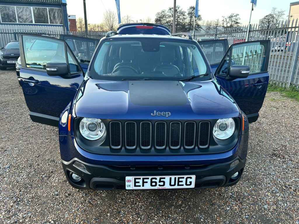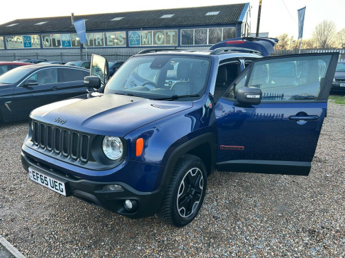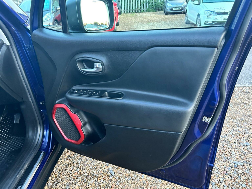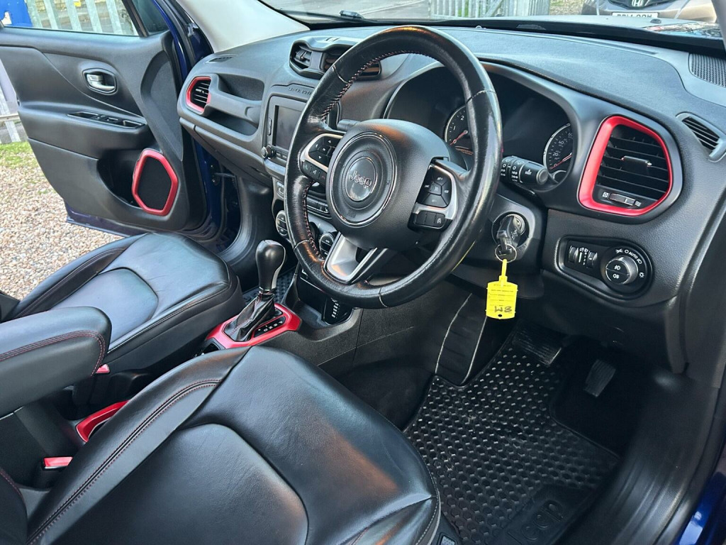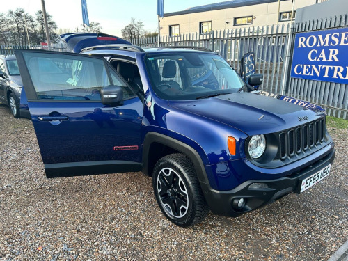 Romsey Car Centre are delighted to offer this Lovely Renegade Trailhawk M-JET Automatic in blue, with complementing leather seats. With only one private owner from new, This Quality Jeep comes with a Fantastic main dealer & Independent garage service history done at 7,282 miles, 14,437 miles, 22,370 miles, 29,275 miles, 32,011 miles,35,750 miles, 38,664 miles, 42,267 miles, 47025 miles and 50,735 miles up to date with a long Mot. Cambelt and water pump changed at 35750 miles. Features include: