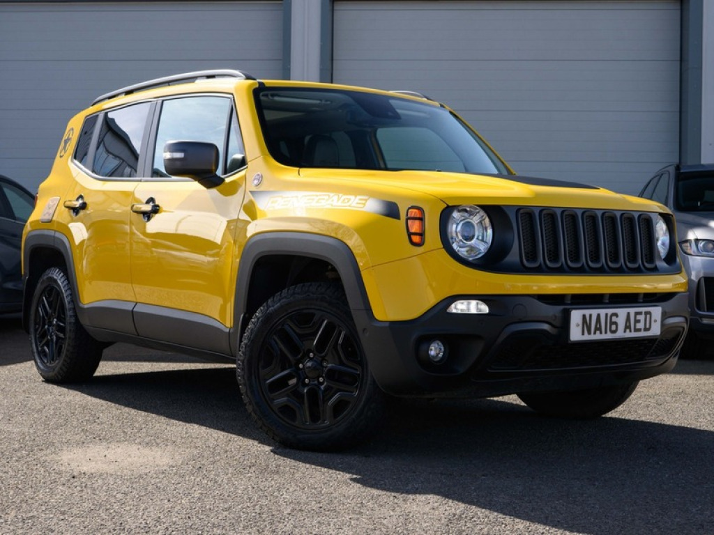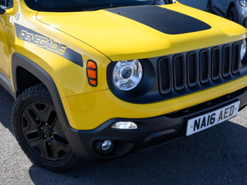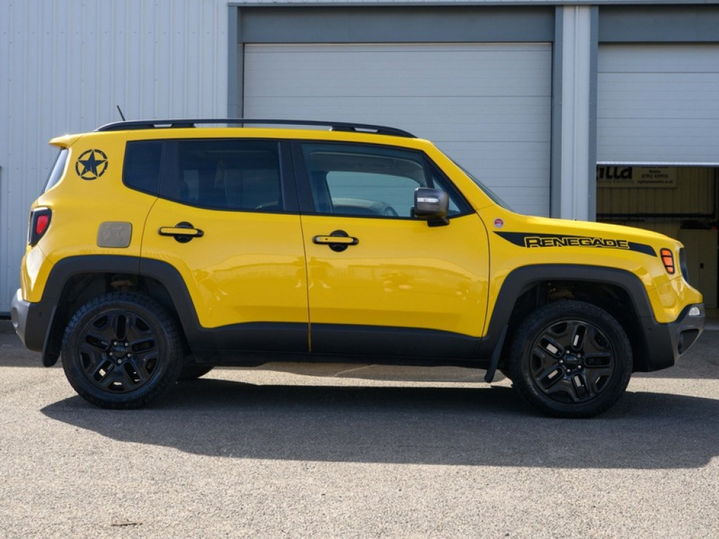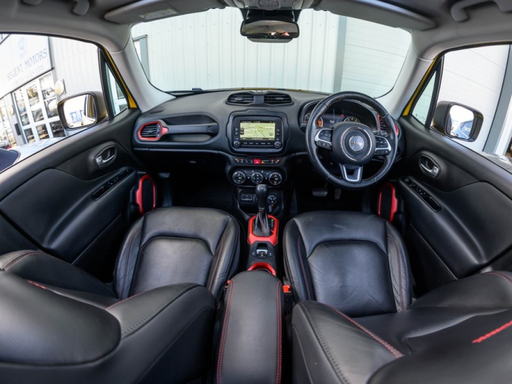 Sagitta is delighted to present this stunning Jeep Renegade 2.0 Multi Jet Trail Hawk 4WD Automatic in Metallic Solar Yellow with a Full Black Leather Interior with Contrast Red Stitching, the car benefits from the following specifications, Full Screen Satellite Navigation System, Reverse Camera, Bluetooth, Voice Control, Heated Front Seats, Multi-Function Steering Wheel, Cruise Control, Parking Sensors, Heated Door Mirrors, Keyless, Visibility Pack, Privacy Glass, Electric Sliding Panoramic Sunroof, 17' Black Alloys, Daytime Running Lights, Service History with Jeep at 10,741 miles, at 23,629 miles, at 32,791 miles, at 42,393 miles, at 51,346 miles on the 30.08.2024, the Cambelt and Water Pump replaced at 34,883 miles on the 16.11.2022, MOT till 03.04.2026, 2 Keys, Exceptional Example, More photos are available on our website, Part Exchange Welcome, all our cars come with a 6-month Warranty through Autoguard and 12 months of AA Roadside Assistance. Nationwide delivery is available, please contact us for a quote. Deposits can be taken over the phone. Payments can be made via bank transfer and Finance applications can be completed online. Whilst every effort is made to ensure the above details are correct there may be some discrepancies so please make sure to contact us for exact specifications and history on this vehicle. 12V Power Socket, Central Locking, Cruise Control, Daytime Running Lights, ESP, Electric Heated Seats, Electric Windows, Front Fog Lights, Heated Door Mirrors, Hill-Start Assist, Parking Sensors, Power Assisted Steering, Privacy/Tinted Glass, Satellite Navigation, Side Impact Airbags, Speed Limiter, Steering Wheel Controls, Traction Control