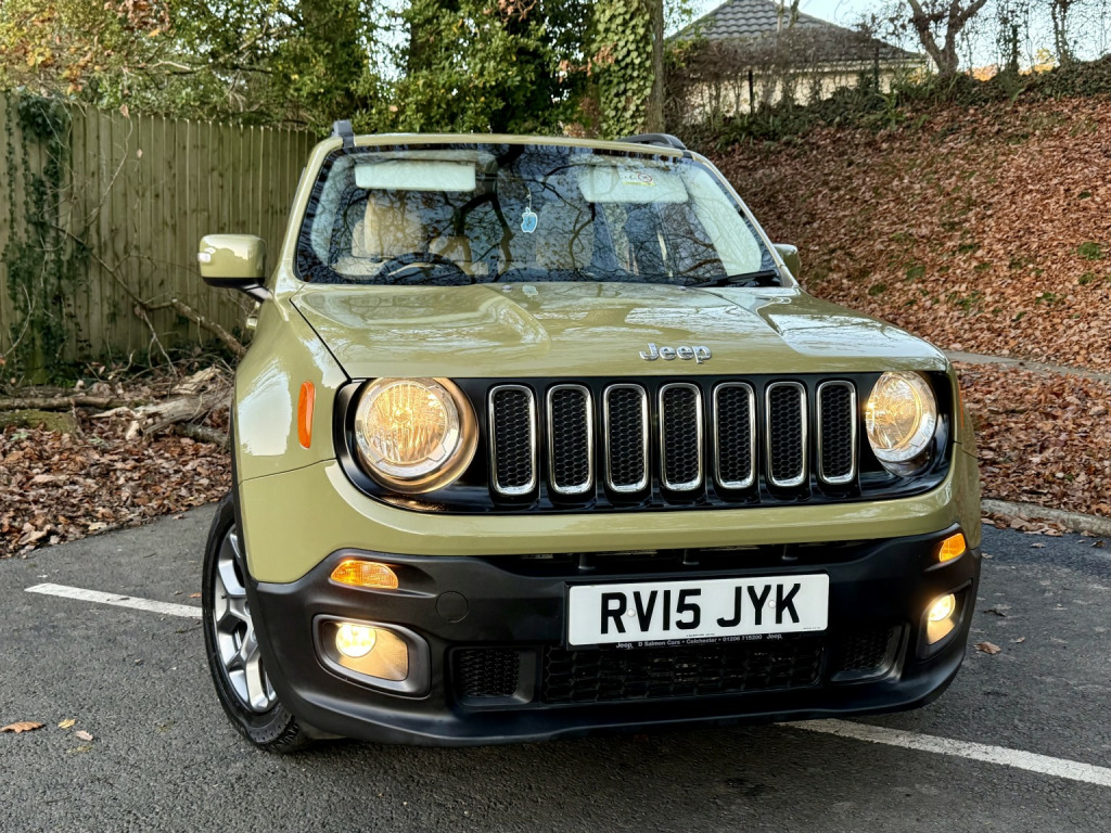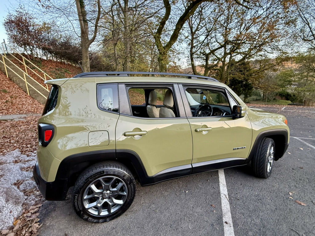 Welcome to the advert of Our very rare Commando Green Jeep Renegade 2.0TDI 140BHP Longitude edition 4x4! Very low mileage of Just 65000 miles backed by a full dealer history and just one keeper for the last 9 years! Fully HPI Clear with 2 keys,full v5 etc. A very well specd example indeed with full fixed glassroof with blinds,heated heats and steering wheel,nav,dab,Bluetooth,leather and parking sensors. Being the iconic Jeep this commando green looks stunning and very modern it really suits this marque. Every alloy wheel has just been fully repainted in rock grey to compliment the colour scheme for a more agressive yet subtle look. Bodywork and interior are immaculate and being the more desired 2.0TD 140BHP variant this vehicle has plenty of power and great economy. Also being the 4X4 version this model has terrain modes such as snow,mud and sand so will guide you through those off road moments with ease. A stunning vehicle overall and finished in the best colour for this brand. **Buy with confidence from the only trading standards approved dealer in the county** finance available but please apply before travelling to confirm acceptance. Thankyou !