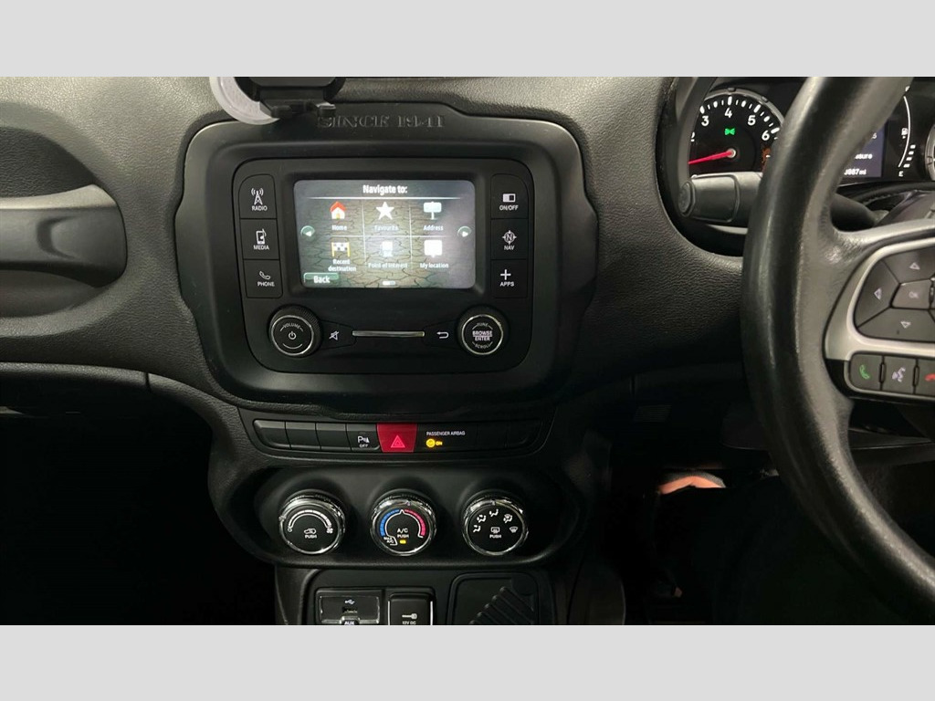 Introducing the Jeep Renegade 1.4 Renegade Longitude 5dr in stunning Alpine White. This rugged yet stylish SUV is the perfect companion for all your adventures, whether you're navigating city streets or tackling off-road terrain. Step inside and you'll be greeted by the premium Cloth - Black interior with Jeep Logo and Satin Silver Bezel Accents, adding a touch of sophistication to your driving experience. With its powerful 1.4-litre engine, the Jeep Renegade delivers a dynamic performance that's both efficient and exhilarating. Whether you're cruising down the motorway or exploring the great outdoors, this vehicle is designed to handle it all with ease. Don't miss your chance to own the iconic Jeep Renegade. Visit our showroom today and experience the ultimate blend of style, comfort, and capability. Uconnect Live,Uconnect DAB Radio,USB Connectivity,UConnect Bluetooth,Tyre Pressure Monitoring - Warning Display,Trailer Sway Damping - Control,Traction Control,Touchscreen - 5in,Steering Wheel - Mounted Audio Controls,Steering Column - Tilt and Telescopic,Ambient LED Interior Lighting,Electric Park Brake,EcoDrive - Drive Monitoring System,ESC - Electronic Stability Control,ERM - Electronic Roll Mitigation,Door Mirrors - Electric and Heated,Door Mirrors - Body Coloured,Daytime Running Lights,Cruise Control,Body Coloured Door Handles,Aux-in,Electric Power Steering,Alarm - Premium,Airbags - Seat-Mounted Front Side Thorax,Airbags - Rear Curtain,Airbags - Passenger Advanced Multi Stage,Airbags - Front Curtain,Airbags - Drivers Advanced Multi Stage,Air Conditioning,ABS - Anti-Lock Brakes,17in Alloy Wheels - Aluminium,Power Windows - Driver and Passenger Express Up and Down,Speed Limiter,Speakers x6,Sliding Front Armrest with Storage,Seats - Passenger 4-Way Adjustment,Seats - Drivers Electric Lumbar Adjustment,Seats - Drivers 6-Way Adjustment,Satellite Navigation System,Roof Rails - Black,Remote Central Locking,Power Windows - Rear,12V Power Socket,Pollen Filter,Passenger Airbags Deactivation,Parking Sensors - Rear,Leather Wrapped Steering Wheel,Instrument Cluster - 3.5in Monochrome TFT Display,ISOFIX Child Seat Restraint System,Hill Start Assist,Head Restraints - Height Adjustable 3rd Rear,Gear Knob - Satin Chrome,Front Fog Lights,Cloth - Black with Jeep Logo with Satin Silver Bezel Accents,Alpine White