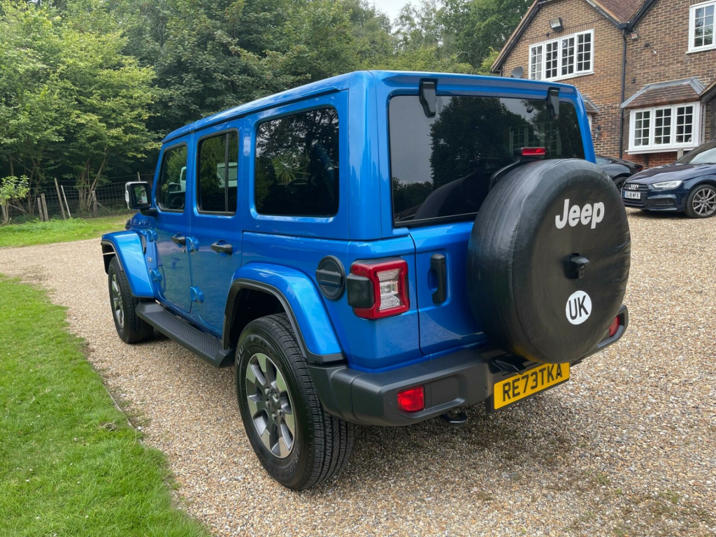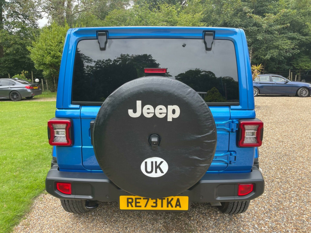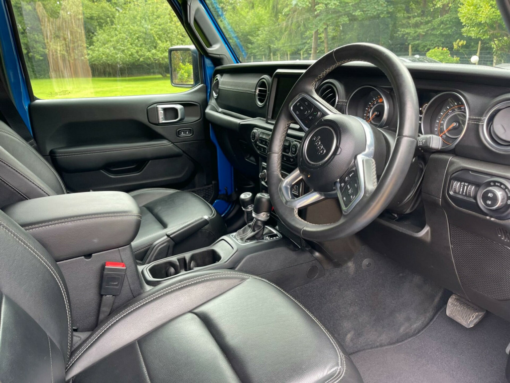 An Exceptional example finished in a striking Metallic Blue with Black leather heated seats, APPLE CarPlay, ALPINE Sound system, Side Steps, SAT NAV, Bluetooth, DAB Radio. Still under Manufactures warranty With only 6200 miles on the clock, this 2023 Jeep Wrangler is practically brand new. As a GME Overland variant with an Overland trim, it boasts a 2.0L petrol engine and a four-wheel-drive drivetrain. This vehicle meets Euro 6 emission standards and includes a suite of features designed for comfort and safety. The Safety Pack incorporates Adaptive Cruise Control, while the ParkView Rear Back Up Camera, complete with Rear Parking Assistance, makes maneuvering simple. You'll also appreciate the Heated Steering Wheel on colder days, and the convenience of Automatic On Headlights and Climate Control.The Wrangler's large boot space makes it more practical than similar vehicles, offering ample room for luggage or equipment. Furthermore, its acceleration from 0-62mph in just 7.6 seconds means it's quicker off the mark than many comparable models. With a towing weight of 2495 kg, this Jeep Wrangler is well-equipped for various tasks.BARGAIN PRICE !!!! ather - black with overland logo, 12v auxiliary power outlet - rear, 12v auxiliary power outlet centre console, 18in alloy wheels - aluminium - diamond cut, 2.72 to 1 command-trac full time transfer case, 255-70r18 all season tyres, 3.45 axle ratio, 650 amp maintenance free battery, active speed limiting device, adaptive cruise control with stop and go, airbags - drivers, airbags - front side, airbags - passenger, alpine sound system - 9 amplified speakers and subwoofer, ambient led interior lighting, anti-lock 4 wheel fnc disc hd brakes, anti-spin differential rear axle, auto dimming rear view mirror, black fuel filler door, bumper - front black, bumper - rear black, centre high mount stop lamp, climate control, connected services - europe, conventional differential front axle with disconnect, conventional differential rear axle, dana m200 rear axle, daytime running lights, deep tint sunscreen glass, door mirrors - black, door mirrors - power adjustable and heated, e-call, electric windows - front one touch, exhaust system module, exhaust system module ii, fender flares - body colour, floor mats - front and rear, forward collision warning plus mitigation, front fog lights, front windscreen wipers - variable and intermittent, grille - body coloured, headlamp off time delay, headlights - automatic on, headlights - halogen, headlights - levelling system, headliner parts module, heated front seats, heated steering wheel, high beam, illuminated front cupholders, incandescent tail lamps, instrument cluster - 7in tft colour display, interior accents - bright, jeep mapcare, keyless entry - remote fob, keyless go with push to start button, leather wrapped steering wheel, manual 2-way adjustable driver lumbar support, manual 4-way adjustable passenger seat, manual 6-way adjustable driver seat, overland pack, parksense rear park assist system, parkview rear back up camera, power steering, premium door trim panel, premium lighting pack, rear 60-40 split folding, rear fog lamps, rear passenger - seat belt alert, safety pack, security alarm - premium, selec-speed control, selectable tyre fill alert system - stfa, side repeater lamp, side steps - tubular, smokers pack, spare wheel cover - vinyl, steering wheel - mounted audio controls, storage tray, sun visors with illuminated vanity mirrors, technology pack, telematics box module - tbm, thatcham security equipment, tyre pressure monitoring system, uconnect 8.4in with navigation, vehicle dynamic stability control, vehicle information centre, wrangler decal