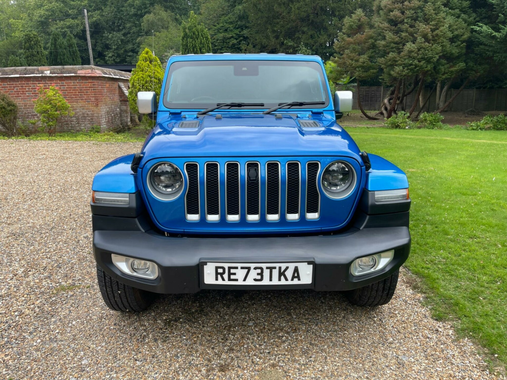 An Exceptional example finished in a striking Metallic Blue with Black leather heated seats, APPLE CarPlay, ALPINE Sound system, Side Steps, SAT NAV, Bluetooth, DAB Radio. OVER a year before Manufactures warranty ExpiresWith only 6200 miles on the clock, this 2023 Jeep Wrangler is practically brand new. As a GME Overland variant with an Overland trim, it boasts a 2.0L petrol engine and a four-wheel-drive drivetrain. This vehicle meets Euro 6 emission standards and includes a suite of features designed for comfort and safety. The Safety Pack incorporates Adaptive Cruise Control, while the ParkView Rear Back Up Camera, complete with Rear Parking Assistance, makes maneuvering simple. You'll also appreciate the Heated Steering Wheel on colder days, and the convenience of Automatic On Headlights and Climate Control.The Wrangler's large boot space makes it more practical than similar vehicles, offering ample room for luggage or equipment. Furthermore, its acceleration from 0-62mph in just 7.6 seconds means it's quicker off the mark than many comparable models. With a towing weight of 2495 kg, this Jeep Wrangler is well-equipped for various tasks.BARGAIN PRICE !!!! ather - black with overland logo, 12v auxiliary power outlet - rear, 12v auxiliary power outlet centre console, 18in alloy wheels - aluminium - diamond cut, 2.72 to 1 command-trac full time transfer case, 255-70r18 all season tyres, 3.45 axle ratio, 650 amp maintenance free battery, active speed limiting device, adaptive cruise control with stop and go, airbags - drivers, airbags - front side, airbags - passenger, alpine sound system - 9 amplified speakers and subwoofer, ambient led interior lighting, anti-lock 4 wheel fnc disc hd brakes, anti-spin differential rear axle, auto dimming rear view mirror, black fuel filler door, bumper - front black, bumper - rear black, centre high mount stop lamp, climate control, connected services - europe, conventional differential front axle with disconnect, conventional differential rear axle, dana m200 rear axle, daytime running lights, deep tint sunscreen glass, door mirrors - black, door mirrors - power adjustable and heated, e-call, electric windows - front one touch, exhaust system module, exhaust system module ii, fender flares - body colour, floor mats - front and rear, forward collision warning plus mitigation, front fog lights, front windscreen wipers - variable and intermittent, grille - body coloured, headlamp off time delay, headlights - automatic on, headlights - halogen, headlights - levelling system, headliner parts module, heated front seats, heated steering wheel, high beam, illuminated front cupholders, incandescent tail lamps, instrument cluster - 7in tft colour display, interior accents - bright, jeep mapcare, keyless entry - remote fob, keyless go with push to start button, leather wrapped steering wheel, manual 2-way adjustable driver lumbar support, manual 4-way adjustable passenger seat, manual 6-way adjustable driver seat, overland pack, parksense rear park assist system, parkview rear back up camera, power steering, premium door trim panel, premium lighting pack, rear 60-40 split folding, rear fog lamps, rear passenger - seat belt alert, safety pack, security alarm - premium, selec-speed control, selectable tyre fill alert system - stfa, side repeater lamp, side steps - tubular, smokers pack, spare wheel cover - vinyl, steering wheel - mounted audio controls, storage tray, sun visors with illuminated vanity mirrors, technology pack, telematics box module - tbm, thatcham security equipment, tyre pressure monitoring system, uconnect 8.4in with navigation, vehicle dynamic stability control, vehicle information centre, wrangler decal
