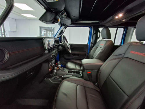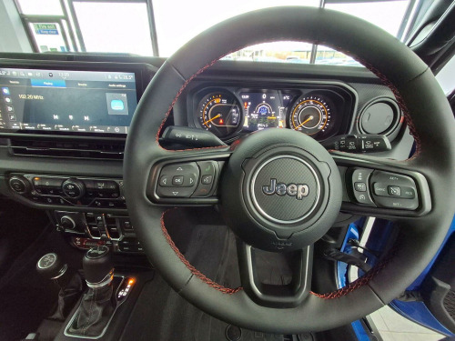 ***Balance of Manufacturers Warranty***Full Body Wrap***Full Leather***Privacy Glass***Sat Nav***This 2024 Jeep Wrangler GME Rubicon offers an exceptional blend of capability and comfort, boasting a powerful 2.0L Petrol engine and robust Four Wheel Drive system. As a Euro 6 compliant vehicle, it meets modern emissions standards, and with a towing weight of 2495 kg, its ready for your adventures. Inside, youll find a host of premium features designed for your convenience, including Climate Control to maintain the perfect cabin temperature, Heated Front Seats for those chilly mornings, and an Adaptive Cruise Control with Stop and Go function for relaxed journeys. The Steering Wheel is wrapped in Premium Leather and is also heated, adding a touch of luxury. Parking is made easier with the ParkSense Rear Park Assist System, and youll appreciate the large boot space for all your gear. The performance of this Jeep Wrangler is truly noteworthy, achieving 0-62mph in a swift 7.6 seconds. These highlights demonstrate how this Rubicon variant stands out from other similar vehicles, offering a superior driving experience. The combination of its impressive acceleration, advanced driver aids, and practical features like ample boot space makes this 2024 Jeep Wrangler GME Rubicon a compelling choice for those seeking a vehicle that excels both on and off the beaten track.