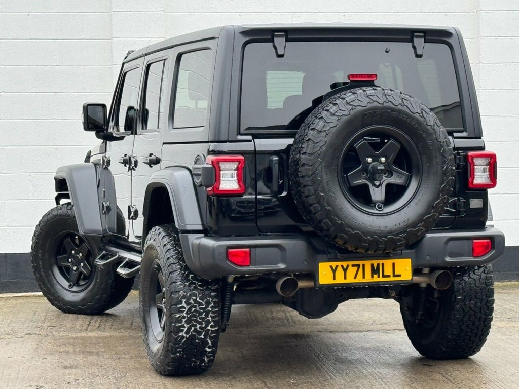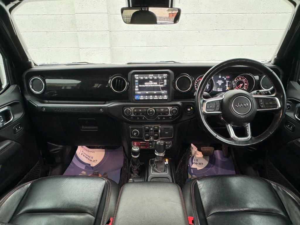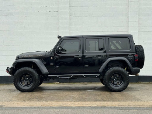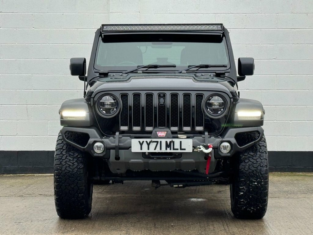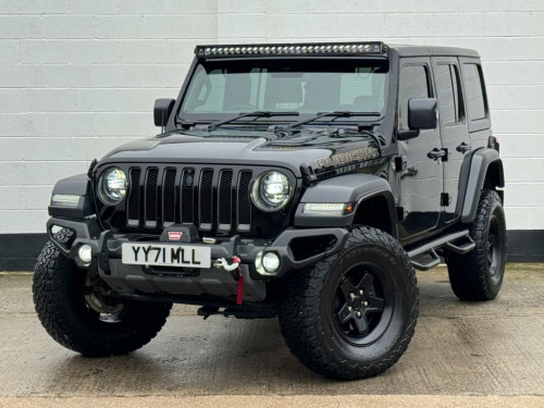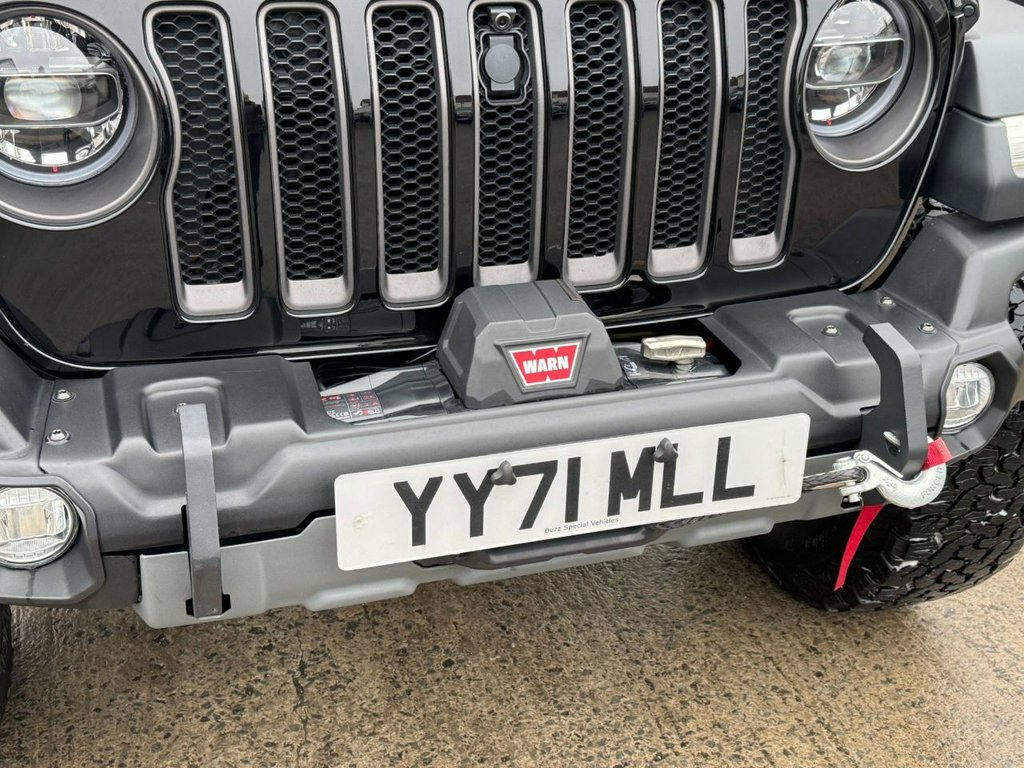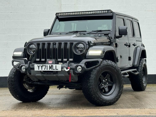2021 (71) Jeep Wrangler 2.0 GME Rubicon Auto – Metallic Black – Full Main Dealer Service History – Buzz Special Vehicles Customised A superb example of the iconic Wrangler Rubicon, finished in Metallic Black and presented with a full main dealer service history. This 2021 (71 plate) 2.0 GME Automatic model benefits from professional customisation by Buzz Special Vehicles, offering enhanced off-road capability and visual presence while retaining everyday usability. Buzz Special Vehicles Package / Modifications • Rugged Ridge Venator front bumper • Dualsport 3-inch suspension lift • AEV Pintler alloy wheels • Spartan Nerf Bar kit • DV8 Off Road light bar Key Specification • 2.0 GME Turbo petrol engine • 8-speed automatic transmission • Select-Trac 4x4 system • Rubicon rock-trac transfer case • Locking front and rear differentials • Electronic sway bar disconnect • Hill descent control • Heavy-duty Dana axles • Black body colour hardtop • Removable doors and roof panels Interior & Comfort • Premium cloth interior (Rubicon trim) or leather depending on original spec • Uconnect infotainment system with touchscreen display • Apple CarPlay and Android Auto • Satellite navigation • Climate control air conditioning • Multifunction steering wheel • Cruise control • Keyless start • Rear parking sensors and reversing ca 12V Auxiliary Power Outlet - Rear, 12V Auxiliary Power Outlet Centre Consol, 17in Alloy Wheels - Machine Finish with , 4.10 Rear Axle Ratio, ABS - Anti-Lock Brakes, Active Speed Limiting Device, Airbags - Drivers, Airbags - Front Side, Airbags - Passenger, Ambient LED Interior Lighting, Apple CarPlay, Auto Dimming Rear View Mirror, Auto High Beam Headlamp Control, Black Freedom Top 3-Piece Modular Hard T, Black Fuel Filler Door, Bumper - Front Black, Bumper - Rear Black, Cargo Compartment Floor Mat, Centre High Mount Stop Lamp, Climate Control, Connected Services and E-Call, Cruise Control, Daytime Running Lights, Deep Tint Sunscreen Glass, Door Mirrors - Black, Door Mirrors - Power Adjustab