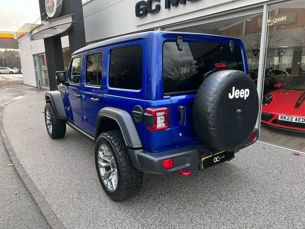 2 Owner Car, 2.0 GME Rubicon. Modifications: 20” Fuel Alloys. Factory Options: Canvas Sliding Panoramic Roof, Black Leather Interior. Standard Specification: Alpine Audio with Boot Mounted Subwoofer, Leather Heated Multi-Function Steering Wheel, Heated Front Seats, Reversing Camera, Front & Rear Parking Sensors, Cruise Control, Speed Limiter, Removable Doors & Rear Side Panels, Rubicon Red Front Seat Embroidery, Privacy Glass, Rubicon Bonnet Decals, Dual Zone Climate Control, Adaptable Drive Modes, Multi-Function Partially Digital Cockpit, Jeep Uconnect Multi-Function Touchscreen Infotainment Display, Satellite Navigation, DAB Radio, Bluetooth, Apple CarPlay, Android Auto, Voice Control, LED Taillights, Red Interior Contrast Stitching, Rubicon Branded Front Passenger Grab Handle, 60/40 Folding Rear Seats, Satin Red Dashboard Trim, Leather Gear Knob. Finished in Ocean Blue Metallic Paint. Pan Roof, Pano Roof, Panorama Roof, Sunroof, Glass Roof, Sky One-Touch Power Top. Proudly No.1 in the UK for customer service in 2024, as awarded by AutoTrader. Our bespoke customisation services include Upgrade Alloy Wheels/Colour Changed & Refurbishment, Carbon Dipping, Bodykits, Window Tints, Black Pack / De-chroming.We offer a comprehensive selection of luxury vehicles including, Rolls-Royce, Bentley, Lamborghini, Ferrari, Aston Martin, McLaren, Porsche, Maserati, Audi, Mercedes-Benz, BMW, Lexus, Jaguar, Land Rover, Tesla, Alfa Romeo, Lotus, Alpine and much more.All our cars are HPI clear. Please contact us for your own personal video presentation of this particular car. We offer competitive finance rates with our in-house team from PCP, lease purchase and HP. Whilst we make every effort to ensure that the specification and technical information for the cars on our website is correct, some of it is supplied by third party providers and we cannot guarantee its accuracy. It is therefore important that you do not solely rely on this information.. Alpine Audio with Boot Mounted Subwoofer, Leather Heated Multi-Function Steering Wheel, Heated Front Seats, Reversing Camera, Front & Rear Parking Sensors, Cruise Control, Speed Limiter, Removable Doors & Rear Side Panels, Rubicon Red Front Seat Embroidery, Privacy Glass, Rubicon Bonnet Decals, Dual Zone Climate Control, Adaptable Drive Modes, Multi-Function Partially Digital Cockpit, Jeep Uconnect Multi-Function Touchscreen Infotainment Display, Satellite Navigation, DAB Radio, Bluetooth, Apple CarPlay & Android Auto, Voice Control, LED Taillights, Red Interior Contrast Stitching, Rubicon Branded Front Passenger Grab Handle, 60/40 Folding Rear Seats, Satin Red Dashboard Trim, Leather Gear Knob, Sky One-Touch Power Top, Black Leather Interior.