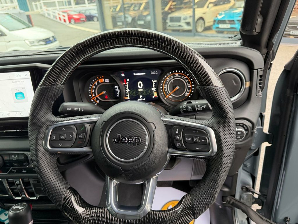 BUZZ SV LUXE 2.0 GME SAHARA latest model in Anvil Grey Paint with Black contrast stitched leather, Buzz SV's Stage One Package with with FUEL Fuel Covert 20 inch wheels wrapped in 35-inch Mud terrain General Grabber X3 tyres, AEV 2 inch suspension lift, MOPAR front bumper with tow hooks, Black grills, Buzz SV Carbon Fibre heated steering wheel, heated seats, widescreen infotainment, Navigation, Media, reversing camera, Apple CarPlay and Android Auto, Alpine Premium HiFi, climate control, electric adjustable seats, keyless entry and drive, selectable 2/4WD with Hi/Low ratios and off road setting plus much more. Only 9,000 miles freshly served and stunning Wrangler 12V Auxiliary Power Outlet - Rear, 12V Auxiliary Power Outlet Centre Consol, 18in Alloy Wheels - Chromed Aluminium - , 2.72 to 1 Selec-Trac Full Time Transfer , 3.45 Axle Ratio, Active Speed Limiting Device, Adaptive Cruise Control with Stop and Go, Advanced Brake Assist, Airbags - Drivers, Airbags - Front Side, Airbags - Passenger, Airbags - Side Curtain, Airbags - Supplemental Side, Alpine Premium Audio System, Ambient LED Interior Lighting, Anti-Lock 4 Wheel FNC Disc HD Brakes, Anti-Spin Differential Rear Axle, Anvil, Audio Jack for Mobile Devices, Auto Dimming Rear View Mirror, Auto High Beam Headlamp Control, Black Door Handles, Black Fuel Filler Door, Blind Spot Detection with Rear Cro