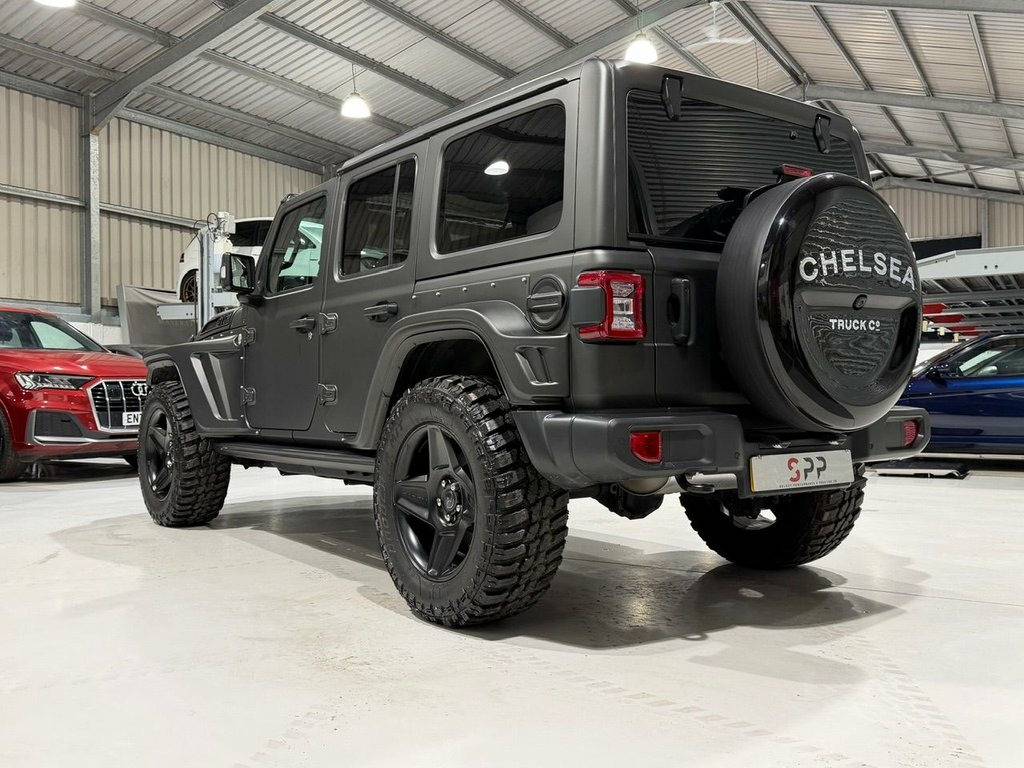 Email Direct .. [email protected] or Call /WhatsApp Nick Direct on 07768 331141. ..Select Performance Are Delighted To Offer This Stunning 2025 Jeep Wrangler Auto This Vehicle Is A Full Chelsea Truck Company Conversion Specification As Follows Volcanic Rock Satin With Blue/Black Leather, 9x20 Mondial 4 Spoke Heavy Duty RS -Forged Light Alloys In Matte Black, Slimline 4 Slot Grille, Chelsea Truck Company Wheel Cover In Piano Black, Front And Rear Bodyguard Widebody Wings And Integrated Bolts, Iron Man Bonnet, Centre Armrest/Front Doors/Rear Doors/Dashboard/Front Seats And Rear Seats All Reupholstered, Seats Quilted, Plus All The Usual Refinements, Heated Seats And Steering Wheel, Sun Protection Glass Etc Absolutely Awesome Truck.... Finance Part Exchange Global Delivery Still Under Manufactures Warranty Please Call Nick Direct 07768 331141 12V Auxiliary Power Outlet - Rear, 12V Auxiliary Power Outlet Centre Consol, 18in Alloy Wheels - Chromed Aluminium - , 2.72 to 1 Selec-Trac Full Time Transfer , 3.45 Axle Ratio, Active Speed Limiting Device, Adaptive Cruise Control with Stop and Go, Advanced Brake Assist, Airbags - Drivers, Airbags - Front Side, Airbags - Passenger, Airbags - Side Curtain, Airbags - Supplemental Side, Alpine Premium Audio System, Ambient LED Interior Lighting, Anti-Lock 4 Wheel FNC Disc HD Brakes, Anti-Spin Differential Rear Axle, Audio Jack for Mobile Devices, Auto Dimming Rear View Mirror, Auto High Beam Headlamp Control, Black Door Handles, Black Fuel Filler Door, Blind Spot Detection with Rear Cross Pat,