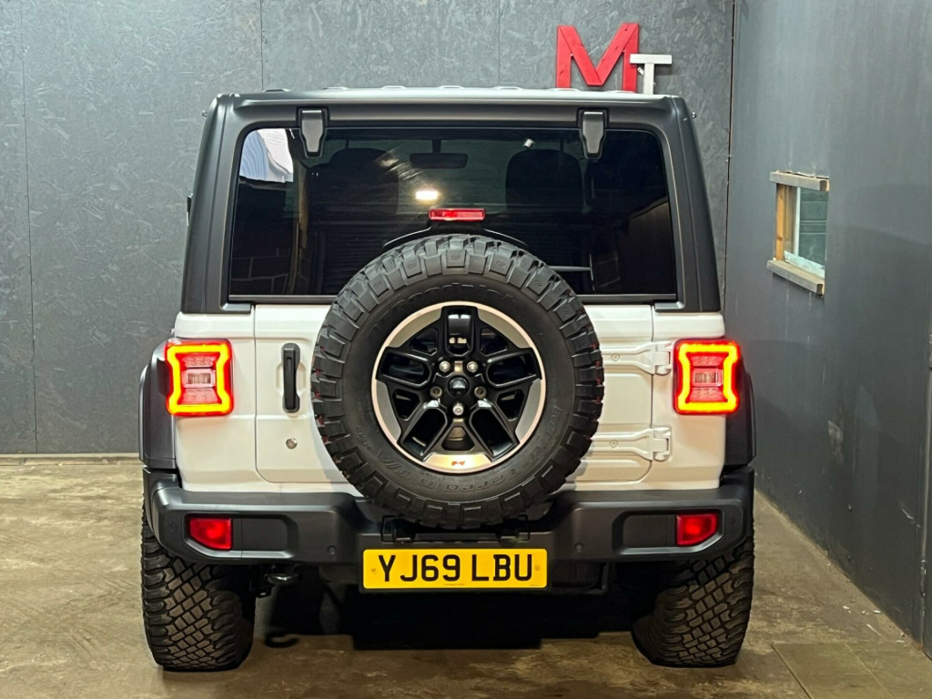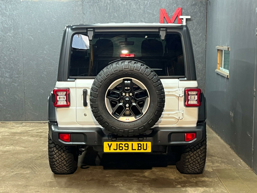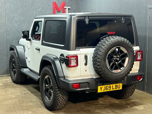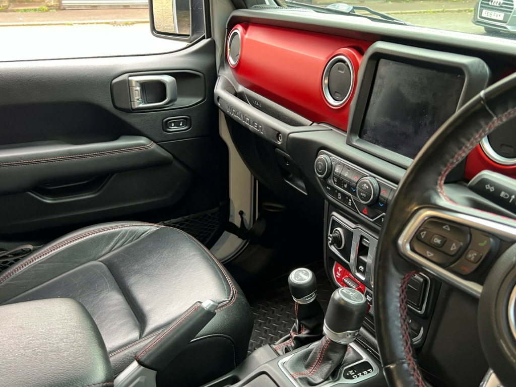 This 2019 Jeep Wrangler Rubicon is a superb example of an iconic off road vehicle. Powered by a robust 2.2 litre diesel engine and featuring a capable Four Wheel Drive system, this Euro 6 compliant model is ready for any adventure. It comes equipped with stylish 17 inch black aluminium alloy wheels with a polished rim, and benefits from convenient keyless entry. For enhanced visibility and a distinctive look, it boasts LED headlights with a round signature, while the ParkSense Rear Park Assist System ensures confident manoeuvring. Inside, you can seamlessly integrate your smartphone with Google Android Auto.The Rubicon trim level signifies a vehicle built for serious off roading, offering superior capability compared to standard models. The combination of its powerful diesel engine, advanced Four Wheel Drive, and specialised Rubicon features makes this Jeep Wrangler a truly exceptional choice for those seeking both on road comfort and unparalleled off road prowess. in alloy wheels - black aluminium with polished rim, 12v auxiliary power outlet - rear, 12v auxiliary power outlet centre console, 17in alloy wheels - polished aluminium with black pockets, abs - anti-lock brakes, active speed limiting device, airbags - drivers, airbags - front side, airbags - passenger, alarm - premium, ambient led interior lighting, apple carplay, auto dimming rear view mirror, black freedom top 3-piece modular hard top, black fuel filler door, climate control, cruise control, daytime running lights - led, deep tint sunscreen glass, door mirrors - black, door mirrors - power adjustable and heated, ears - emergency accident response system, esc - electronic stability control, electric windows - front one touch, fender flares - black, floor mats - front, front fog lamps - round led, front grille - body colour with accent colour grille and headlamp throats, front sway bar - disconnectable, front windscreen wipers - variable and intermittent, google android auto, headlamp off time delay, headlights - automatic on, headlights - led with round signature, headlights - levelling system, heated front seats, heavy duty electrical pack, illuminated front cupholders, instrument cluster - 7in tft colour display, keyless entry, keyless go with push to start button, led tail lamps, leather wrapped steering wheel and shift knob, manual 2-way adjustable driver lumbar support, manual 6-way adjustable driver seat, parksense rear park assist system, parkview rear back up camera, parking sensors - front, power steering - electro-hydraulic, premium alpine audio system with subwoofer, rear fog lamps, rock rails, rubicon hood decal, seats - passenger 4-way adjustment, seats - rear folding, spare wheel cover, speakers x8, steering wheel - mounted audio controls, storage tray, sun visors with illuminated vanity mirrors, tru-lock differentials, tyre pressure monitoring - warning display, uconnect 8.4in with navigation, uconnect live - europe, vehicle information centre