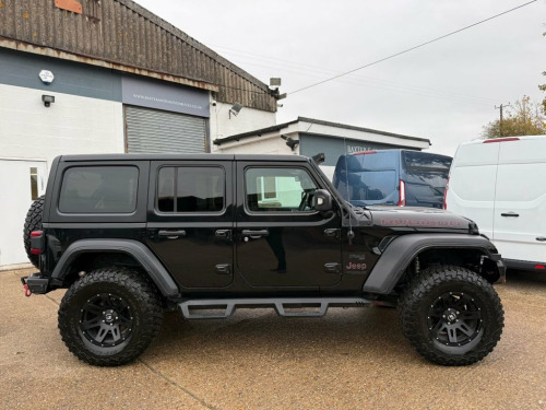 CHECK OUT OVER 400 5 STAR AUTOTRADER REVIEWS FROM OUR CUSTOMERS-LOW DEPOSIT LOW RATE FINANCE AVAILABLE 9.9%APR-INCLUDES 6 MONTHS PARTS AND LABOUR WARRANTY This Stunning 2019 Jeep Wrangler Rubicon boasts a full service history, offering peace of mind for its next owner. This capable four wheel drive model is powered by a 2.2 litre diesel engine and meets Euro 6 emission standards. It features a generous towing weight of 2495 kg and its MOT is valid until July 2026. Notable features include a ParkView rear back up camera with parking assistance, Apple CarPlay integration, keyless entry, front parking sensors, and climate control for a comfortable driving experience. The Rubicon trim level signifies a vehicle designed for adventure, and this particular example is well equipped to handle various conditions. The inclusion of advanced parking assistance systems, both front and rear, makes manoeuvring easier. Furthermore, the seamless integration of Apple CarPlay enhances connectivity and entertainment on the go. These elements, combined with its robust build and comprehensive service record, position this Jeep Wrangler as a compelling choice for those seeking a dependable and feature rich vehicle. Giving this Jeep the stance it deserves is achieved by lifting it 2.5" using a high end Teraflex Sport ST2 suspension system with Falcon 2.1 Shocks. Developed for the Jeep enthusiast looking for a stable highway commute and comfortable trail performance, the 2.5" Sport ST2 Sus 12V Auxiliary Power Outlet - Rear, 12V Auxiliary Power Outlet Centre Consol, 17in Alloy Wheels - Polished Aluminium w, ABS - Anti-Lock Brakes, Active Speed Limiting Device, Airbags - Drivers, Airbags - Front Side, Airbags - Passenger, Alarm - Premium, Ambient LED Interior Lighting, Apple CarPlay, Auto Dimming Rear View Mirror, Black Freedom Top 3-Piece Modular Hard T, Black Fuel Filler Door, Cargo Compartment Floor Mat, Climate Control, Cruise Control, Daytime Running Lights - LED, Deep Tint Sunscreen Glass, Door Mirrors - Black, Door Mirrors - Power Adjustable and Heat, EARS - Emergency Accident Response Syste, ESC - Electronic Stability Control, Electric Windows - Front One Touch, Fender F