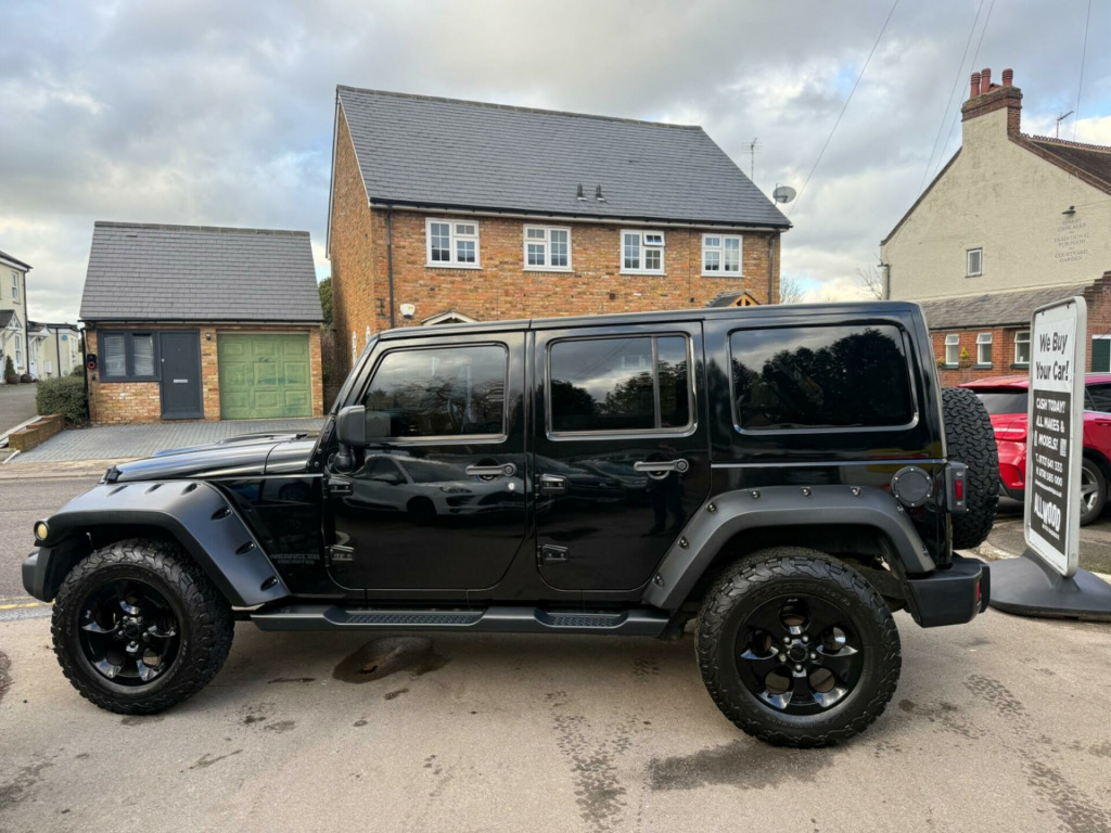 Just arrived here at Allwood of Sandridge and going through full preparation prior to sale. We are pleased to be able to bring to market this striking one of a kind Wrangler 2.8 CRD Black Edition II. With a unique look with full black pack styling upgraded wide arches, angry grill, led lights and privacy glass, side running board, gloss black alloys. With a fabulous service record to accompany the car with Jeep main dealer through to 25,500 miles for its first three services then followed by regular specialist independent servicing and repairs for a further 6 services giving you 9 recorded services with the last one having just been carried out at 87366 miles in October. For further peace of mind the vehicle is equipped with a new MOT running right through till 14/10/26 of which only the front tints where highlighted which can be removed for the next owner should they wish. This edition is very well appointed with a full black leather interior, Navigation widescreen entertainment system, tow bar and much much more.We offer our clients full dealership facilities, part exchange valuations with up to the minute market pricing. FCA regulated with access to some of the best funding options in the market (subject to status and vehicle choice). Our Staff are fully SAF approved. A portfolio of extended warranty options are on offer to suit your needs. Looking for an head tuning Wrangler, with wonderful spec and great colour combination with full history and new service and MOT? Our dealerships are fully AA Approved via trading standards and all vehicles come with free AA breakdown cover. We operate via appointments for viewings and test drives in order to give you the best possible service simply contact the friendly team today on 01727 641 333 or what's app and text services on 07741 585000 ather - black, 18in alloy wheels - high gloss black, abs - anti-lock brakes, air conditioning with automatic temperature control, airbags - drivers advanced multi stage, airbags - front side, airbags - passenger advanced multi stage, alarm - thatcham category 1, auto dimming rear view mirror, aux-in, bumper - front black, bumper - rear black, cigar lighter, coat hooks, cruise control, deep tint sunscreen glass, door mirrors - electric and heated, dual top - body coloured, erm - electronic roll mitigation, esc - electronic stability control, electric windows - front one touch, floor mats - front and rear, floor mats - luggage compartment, front fog lights, full length floor console, gear knob - chrome and leather wrapped, grille - body coloured, hard disk - 40gb, hard top - removable (3-piece), head restraints - rear x3, headlights - automatic on, headlights trim - high gloss black inserts, heated front seats, high gloss black grille badge, high gloss black interior trim bezels-rings, hill descent control, hill start assist, immobiliser, interior accents - bright, keyless entry, leather wrapped steering wheel, luggage compartment - tie down loops, map-dome reading lights - front and rear, media centre with uconnect, outside tyre carrier, pollen filter, power convenience group, power dome hood, power steering, premium alpine audio system with subwoofer, radio am-fm-rds, radio am-fm-rds-cd player, rear 60-40 split folding, removable ashtray, rock rails, seats - drivers height adjustment, seats - front back map pockets, sentry key theft deterrent system, side running boards, side steps - tubular, skid plate shield - front tank, skid plate shield - transfer case, smokers pack, spare wheel - full size, spare wheel cover, sport bar with full padding, stabiliser bar - front, stabiliser bar - rear, steering column - tilt, steering wheel - mounted audio controls, storage tray, sun visors - sliding with vanity mirrors, suspension - heavy duty with gas shock absorbers, tinted glass - front door, tinted glass - windscreen, tip start, touchscreen - 6.5in, tow eye brackets, traction control, trip computer, tyre pressure monitoring - warning display, uconnect 6.5in smarttouch system navigation system, uconnect bluetooth, uconnect phone with voice command, usb connectivity