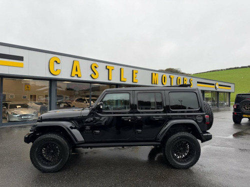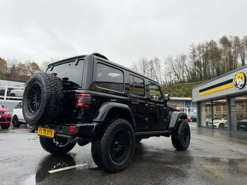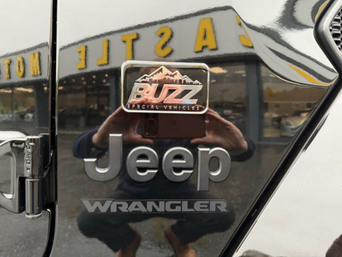 Wrangler 2.0 BUZZ LUXE with One Touch Sky Power Roof and delivery miles. Crystal Black with Buzz Luxury Package, their top of the range model featuring AEV 2 inch lift, FUEL 20 inch wheels with 35-inch AT tyres, LUXE Package colour coding, MPRAR front bumper with colour Keyed Black tow hooks, Black Badges and Byzz Branding Package, LED headlights, rock sliders, heated and electric adjustable seats plus heated steering wheel, Apple CarPlay and Android Auto, Alpine Premium HiFi, USB Media, reversing camera, radar adaptive cruise control, Black Premium leather with Bronze contrast stitching. New with delivery miles (332). This will be one of, if not the very last ever new delivery mileage BUZZ Wrangler fitted with their Buzz Luxury Package and Sky Roof, as Jeep are no longer bringing new ones into the UK. Delivery miles, VAT Q in stock 12V Auxiliary Power Outlet - Rear, 12V Auxiliary Power Outlet Centre Consol, 18in Alloy Wheels - x 8.5in - Aluminium , 2.72 to 1 Selec-Trac Full Time Transfer , 700 amp Maintenance Free Battery, Active Speed Limiting Device, Adaptive Cruise Control with Stop and Go, Advanced Brake Assist, Air Conditioning with Automatic Temperat, Airbags - Front Side, Airbags - Supplemental Side, Alpine Premium Audio System, Ambient LED Interior Lighting, Anti-Lock 4 Wheel FNC Disc HD Brakes, Anti-Spin Differential Rear Axle, Audio Jack for Mobile Devices, Auto Dimming Rear View Mirror, Black, Black Door Handles, Black Fuel Filler Door, Blind Spot Detection with Rear Cross Pat, Body Colour 3-Piece Hard Top,