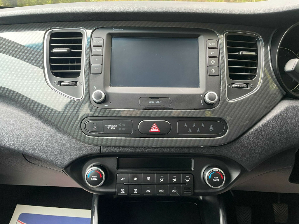 WE ARE DELIGHTED TO OFFER THIS 7 SEAT KIA CARENS IN METALLIC BLACK HAVING HAD TWO OWNERS FROM NEW. FEATURES INCLUDE SATELLITE NAVIGATION, 7 INCH TOUCH SCREEN WITH APPLE CAR PLAY AND ANDROID AUTO, REAR PARKING SENSORS WITH REVERSING CAMERA, BLUETOOTH, DAB RADIO WITH USB AND AUX INPUTS, DUAL ZONE CLIMATE CONTROL WITH AIR CONDITIONING, REAR ISOFIX ANCHORAGE POINTS, ELECTRIC WINDOWS, ELECTRIC DOOR MIRRORS, REAR TRAY TABLES, ROOF RAILS, ALLOY WHEELS AND A SPACE SAVER SPARE.. 12V Power Socket - Luggage Compartment, 16in Alloy Wheels, 2nd Row Seatback Cupholders, 2nd Row Underfloor Storage, 3 x 12V Power Sockets, 3 x Passenger Assist Grips, 3rd Row Cupholders, 6-Speaker System, 7in LCD Touchscreen Navigation with 7 Year European Mapping and Traffic Messaging Channel - TMC, ABS with Electronic Brakeforce Distribution - EBD and Brake Assist System - BAS, Advanced Anti-Theft System including Immobiliser and Alarm, All-Round 3-Point Seatbelts, All-Round Electric Windows with Drivers Auto Up-Down Function, All-Round Height Adjustable Headrests, Ambient Light - Front Footwell, Apple CarPlay and Android Auto via Connectivity, Automatic Defog System, Automatic Headlight Control, Bluetooth with Voice Recognition and Music Streaming, Body Coloured Bumpers, Body Coloured Door Mirrors, Centre Cabin Light, Centre Console Cupholders, Centre Console Storage Box, Child Safety Rear Door Locks, Chrome Front Grille Surround with Black High Gloss Mesh, Chrome Window and Tailgate Trim, Coat Hooks - Rear, Conversation Mirror, Cornering Lights, Cruise Control with Speed Limiter, DAB-RDS Radio with MP3 Compatibility, Dash Illumination Dimmer Switch - Rheostat, Dashboard - High Gloss Grille Pattern, Door Handles - Chrome, Drivers Seat Height Adjuster, Drivers Wide View Door Mirror, Dual Automatic Air Conditioning with Ioniser, Dual Horn, ESC - Electronic Stability Control, EcoDynamics Badge, Electrically Folding Door Mirrors, Emergency Stop Signalling - ESS, External Temperature - Door Open - Clock and Date Display, Faux Leather Door Centre Trim, Faux Leather Trimmed Door Armrests, Flex Steer, Front Cabin Map Light, Front Centre Console Armrest, Front Fog Lights, Front Passenger Airbag Cut Off Switch, Front Seatback Fold Up Trays, Front Seatback Pockets, Front Seatbelt Height Adjusters, Front and Rear Door Storage, Gear Shift Indicator, Glovebox - Cooled, Grab-Type Exterior Door Handles, Headlight Levelling Device, Heated Rear Window, Hill-Start Assist Control - HAC, ISOFIX Child Seat Top Tethers and Anchor Fixings, Ignition Keyhole Illumination, Impact Sensing Auto Door Unlocking, Interior Door Lock-Unlock Function, Kick Down Resistance - Fuel Efficiency Feature, LED Daytime Running Lights, LED High Mounted Brake Light, Leather Trimmed Steering Wheel, Leather and Chrome Trimmed Gearshift, Locking Wheel Nuts, Luggage Barrier Net, Luggage Compartment - Load Cover, Luggage Compartment - Portable Light LED, Luggage Net Hooks, Metallic Finish Interior Door Handles, Motor Driven Power Steering - MDPS, Privacy Glass - Rear Windows and Tailgate, Projection Headlights, Rain Sensing Front Wipers, Rear Air Ventilation, Rear Parking Sensors, Rear Spoiler, Rear Wiper-Washer, Remote Central Locking with Folding Key, Reversing Camera System, Roof Rails, Seatbelt Reminder Warning, Seats - 2nd Row - Sliding and Reclining, Seats - 30-30-30 Split Flat Folding 2nd Row, Seats - 50-50 Split Flat Folding 3rd Row, Seats - Folding Front Passenger, Skid Plates - Front and Rear - Silver, Speed Sensing Auto Door Locking, Steering Wheel Mounted Audio Controls, Sunvisors with Vanity Mirrors and Ticket Holder on Drivers Side, Temporary Spare Wheel, Tilt and Telescopic Steering Wheel Adjustment, Tinted Glass, Trip Computer, Twin Curtain Airbags, Twin Front Airbags, Twin Side Airbags - Front, Tyre Pressure Monitoring System - TPMS, USB and AUX Ports for Connection of an Audio Media Device - iPod - Memory Stick, Vanity Mirror Illumination, Washer Fluid Warning, Welcome and Follow-Me-Home Light Functionality.