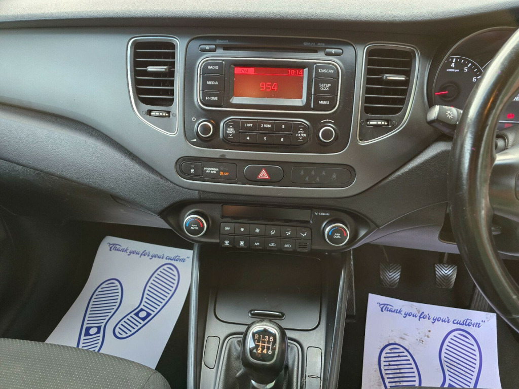 Discover this 2015 Kia Carens GDi SR7, a versatile 7 seater that offers excellent value. This particular model benefits from a low insurance group, making it an economical choice for many drivers. Inside, you will find comfortable seating for up to seven passengers, and a generous boot space that provides ample room for luggage or shopping. The SR7 trim level includes practical features such as rear parking sensors to aid manoeuvring, and automatic headlight control for convenience.This Kia Carens is powered by a 1.6 litre petrol engine, offering a smooth driving experience with an acceleration of 0 to 60 miles per hour in 10.9 seconds. The dual automatic air conditioning with ioniser ensures a pleasant cabin environment for all occupants, while Bluetooth connectivity with voice recognition and music streaming keeps you connected and entertained on the go. These features, combined with its practicality and efficiency, position this Carens as a compelling option when compared to other vehicles in its class. v power socket - 2nd row, 12v power socket - front centre console x2, 12v power socket - luggage compartment, 16in alloy wheels, 2nd row seatback cupholders, 2nd row underfloor storage, 3 x passenger assist grips, 3rd row cupholders, 6-speaker system, abs - anti lock braking system, airbags - driver, airbags - front side, airbags - passenger, airbags - twin curtain, alarm system, all-round height adjustable headrests, armrest - door - artificial leather trim, automatic defog system, automatic headlight control, aux connectivity, bas - brake assist system, bluetooth with music streaming, bluetooth with voice recognition, body coloured bumpers, body coloured door mirrors, body coloured exterior door handles, centre cabin light, centre console cupholders, centre console storage, child safety rear door locks, chrome front grille surround, coat hooks - rear, conversation mirror, cornering lights, cruise control, dash illumination dimmer switch - rheostat, deadlocks, drivers seat height adjuster, dual automatic air conditioning with ioniser, ebd - electronic brakeforce distribution, esc - electronic stability control, ecodynamics badge, electric windows - front and rear, electrically adjustable and heated door mirrors, emergency stop signalling - ess, engine immobiliser, external temperature display, flex steer, front cabin map light, front centre console armrest, front fog lights, front passenger airbag cut off switch, front seatback fold up trays, front seatback pockets, gear shift indicator, glovebox - cooled, headlight levelling system, headlights - follow me home function, heated rear window, hill-start assist control - hac, isofix child seat top tethers and anchor fixings, ignition keyhole illumination, impact sensing auto door unlocking, interior door lock-unlock function, kick down resistance - fuel efficiency feature, led daytime running lights, led high mounted brake light, leather trimmed gear shift, leather trimmed steering wheel, locking wheel nuts, low level washer fluid warning, luggage area light, luggage compartment - hooks, luggage compartment - load cover, metallic finish interior door handles, motor driven power steering - mdps, privacy glass, projection headlights, rds radio with cd and mp3, rain sensing front wipers, rear air ventilation, rear parking sensors, rear spoiler, remote central locking with folding key, roof rails, seatbelt reminder warning, seats - 2nd row - sliding and reclining, seats - 50/50 split folding 3rd row, seats - folding front passenger, seats - split flat folding 2nd row, speed limiter, speed sensing auto door locking, steering wheel mounted audio controls, storage - front doors, storage - rear doors, sunvisors with vanity mirrors and ticket holder, temporary spare wheel, tilt and telescopic steering wheel adjustment, traction control, trip computer, tyre pressure monitoring system - tpms, usb and aux ports, vsm - vehicle stability management, voice control, wide-view door mirrors