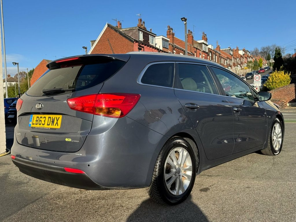Kia Ceed 1.6 Diesel EcoDynamics Estate. Only 2 owners from new, low miles and FULL SERVICE HISTORY - 10 services on record to 51,000 miles. Only £35 year road tax and over 70 miles per gallon fuel efficiency. Spec includes SAT NAV, Bluetooth, Front + Rear parking sensors, Power folding electric wing mirrors, DAB radio, Climate control with A/C, Power start button, multi-function steering wheel with audio controls, trip computer and cruise control, auto headlights and much much more. Call 0113 2636003 or visit leedsmotorcompany.co.uk. 12V Power Socket - Front Centre Console , 12V Power Socket - Luggage Compartment, 16in Alloy Wheels, 3 x Passenger Assist Grips, 6-Speaker System, 60-40 Split Folding 2nd Row Seats, 7in Touchscreen, 7in Touchscreen Satellite Navigation wit, ABS - Anti Lock Braking System, Airbags - Driver, Airbags - Front Side, Airbags - Passenger, Airbags - Twin Curtain, Alarm System, All-Round Height Adjustable Headrests, Ambient Light - Front Centre Console Tra, Armrest - Rear Centre, Auto Dimming Rear-View Mirror, Automatic Defog System, Automatic Headlight Control, Aux Connectivity, BAS - Brake Assist System, Bluetooth Hands Free Connectivity, Bluetooth with Music Streaming, Body Coloured Bumpers, Body
